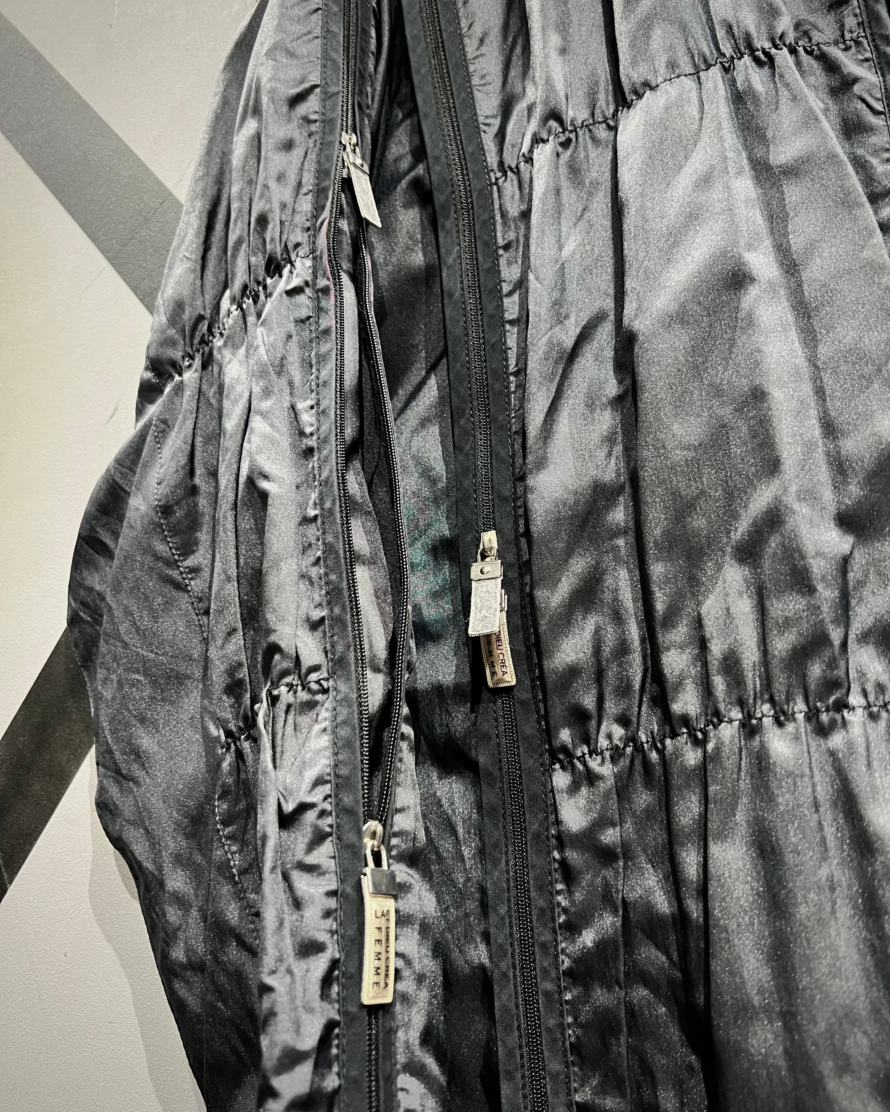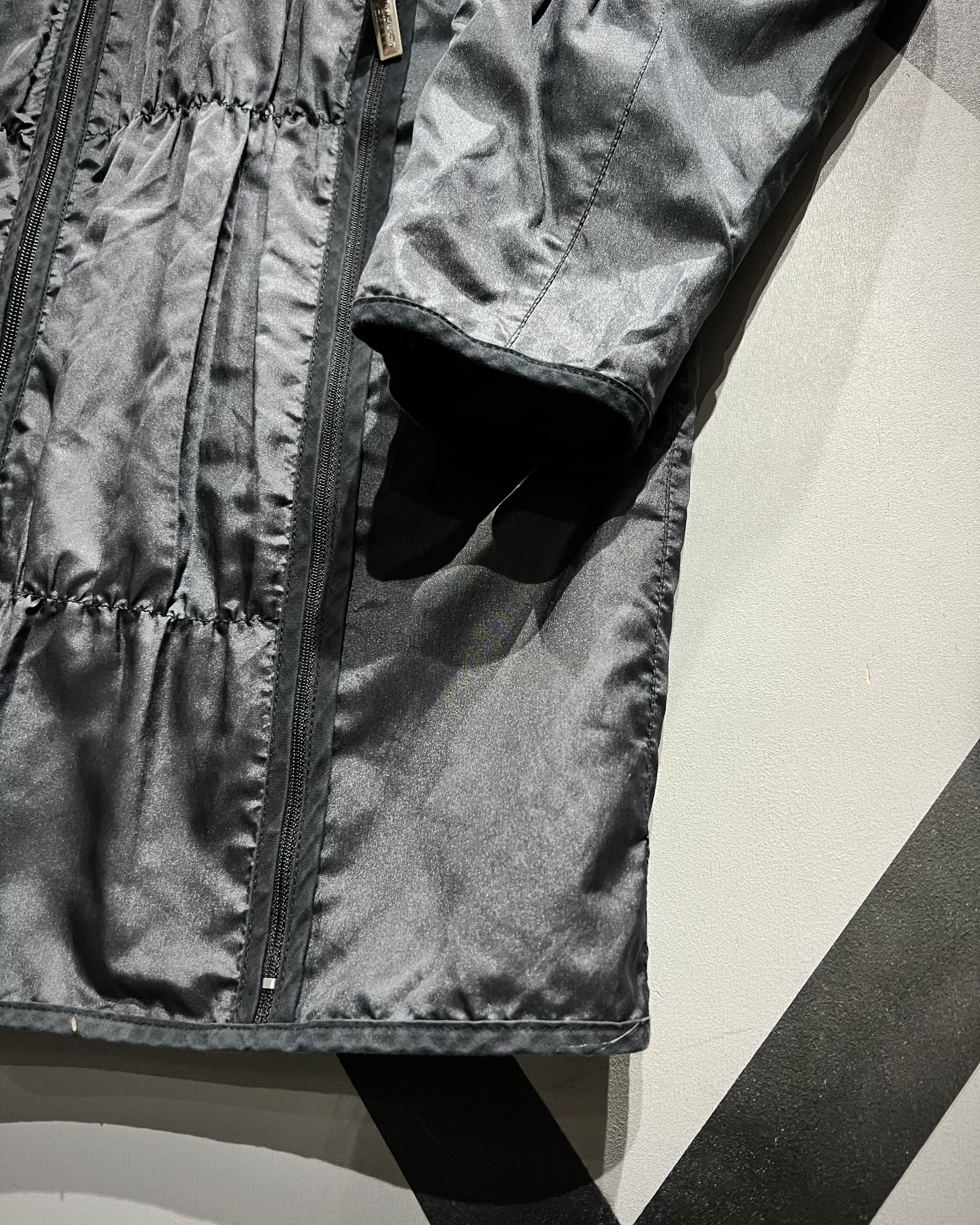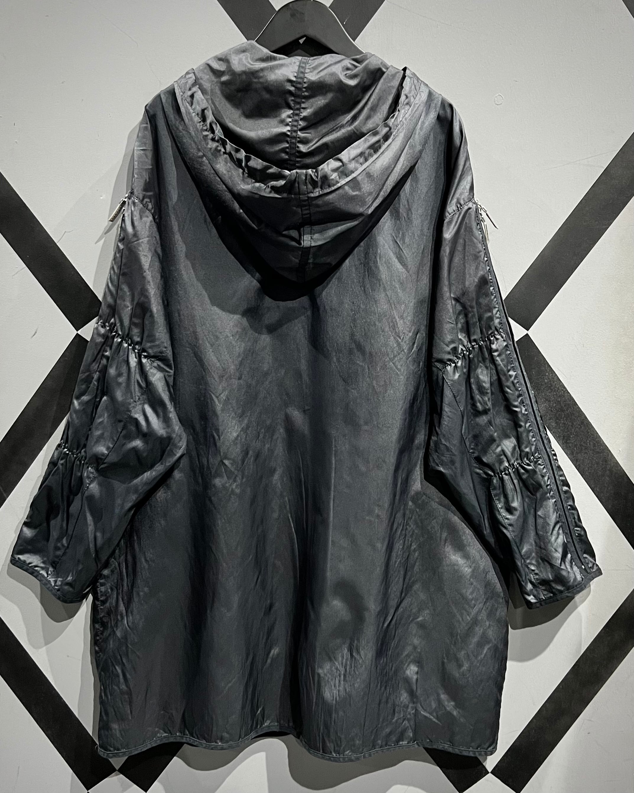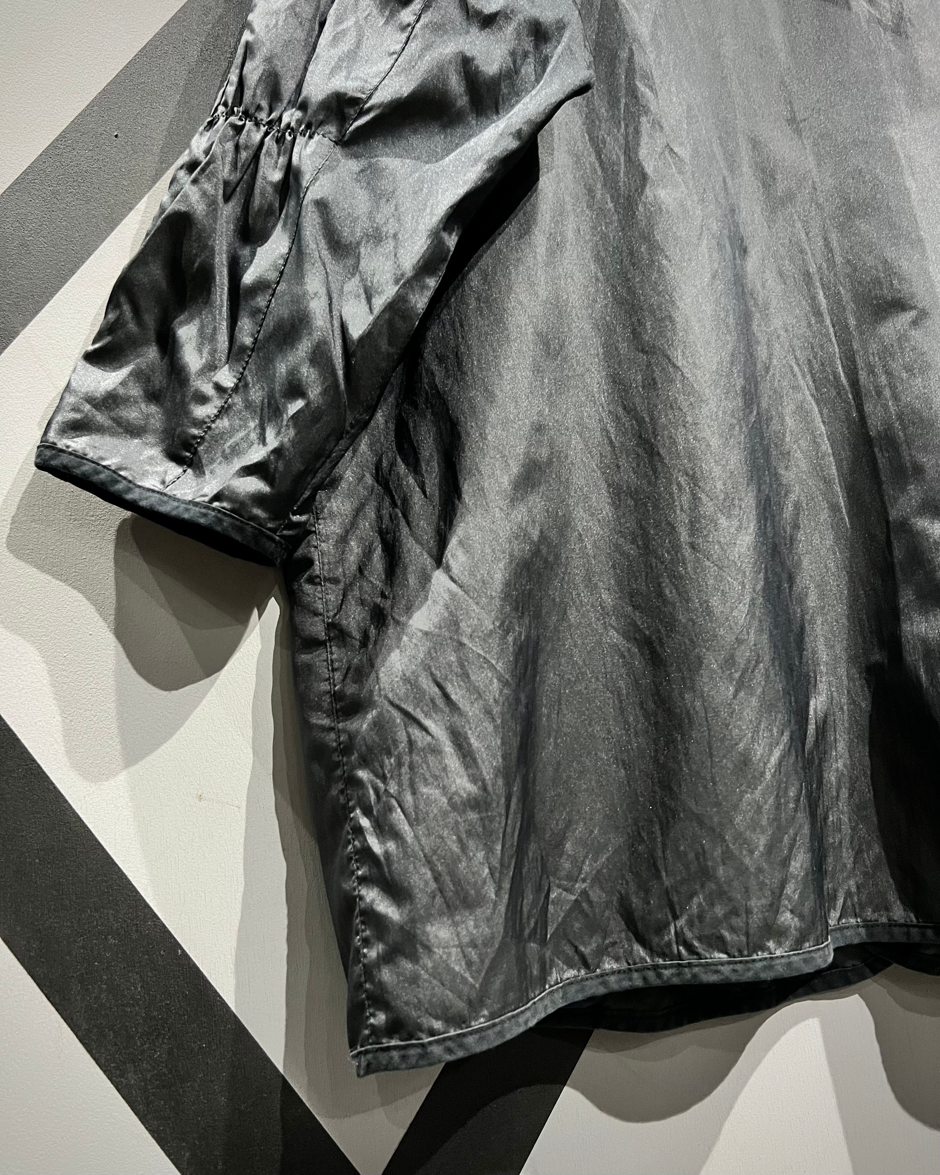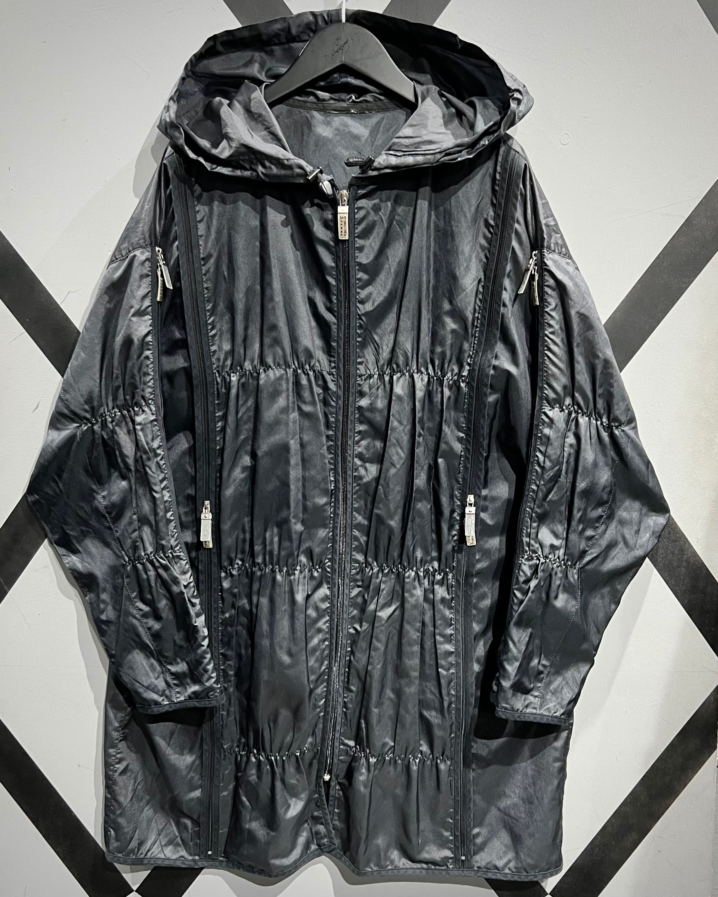 ギャザーを施したことでオールブラックのボディに立体感が生まれ、ジップポケットのディテールとマッチしてテクニカルかつモードな雰囲気を放つ1着に。