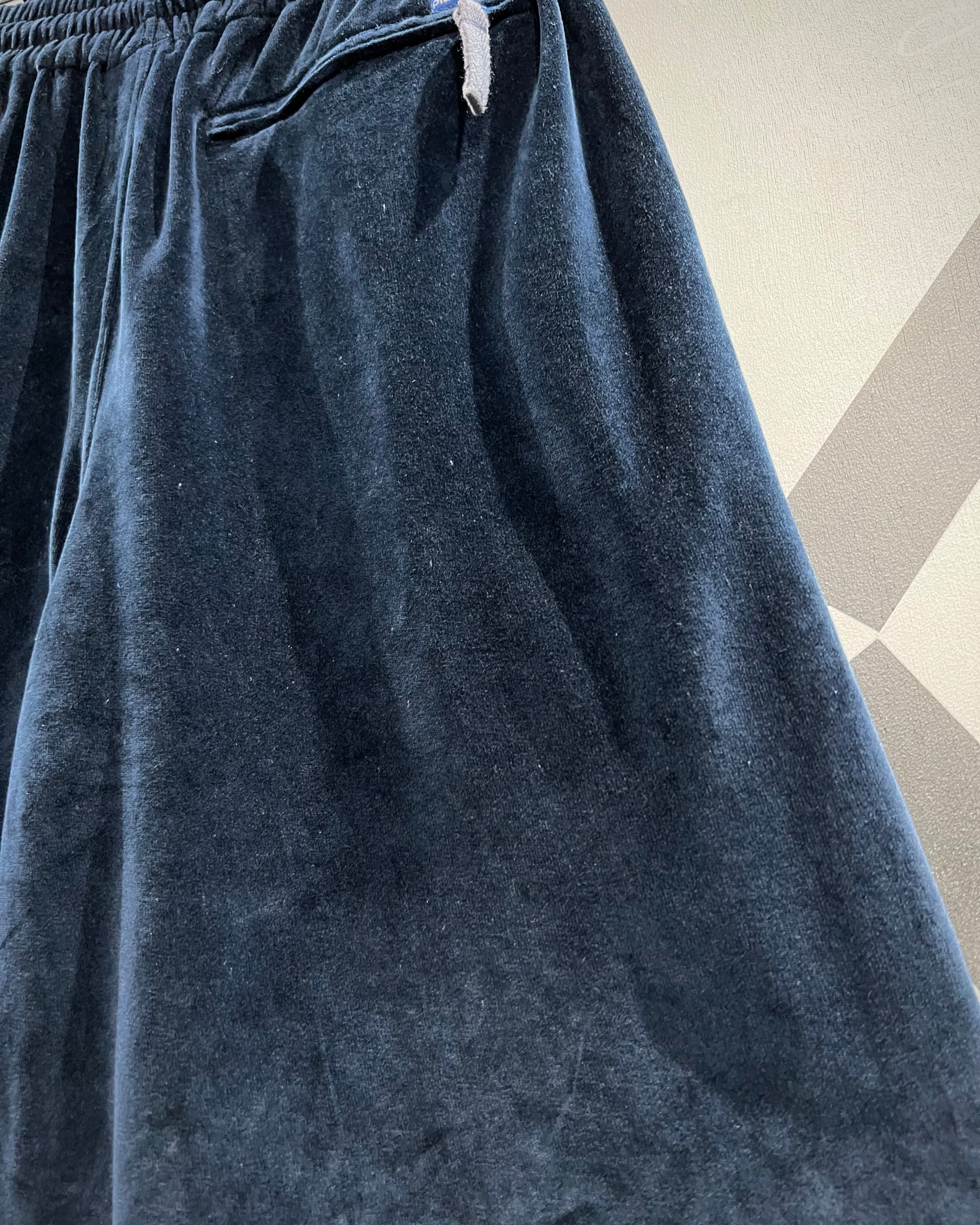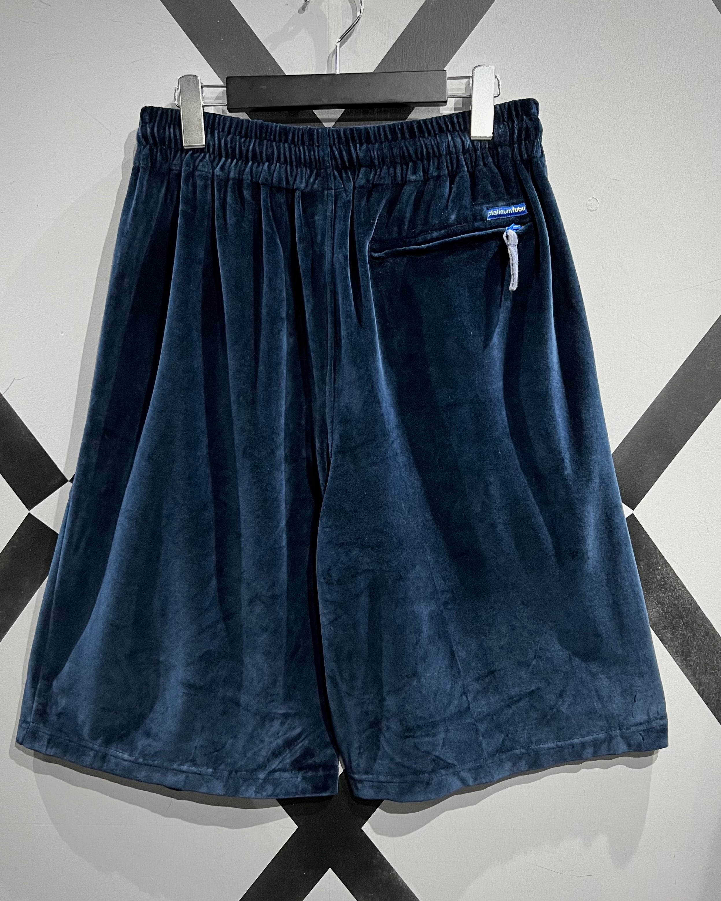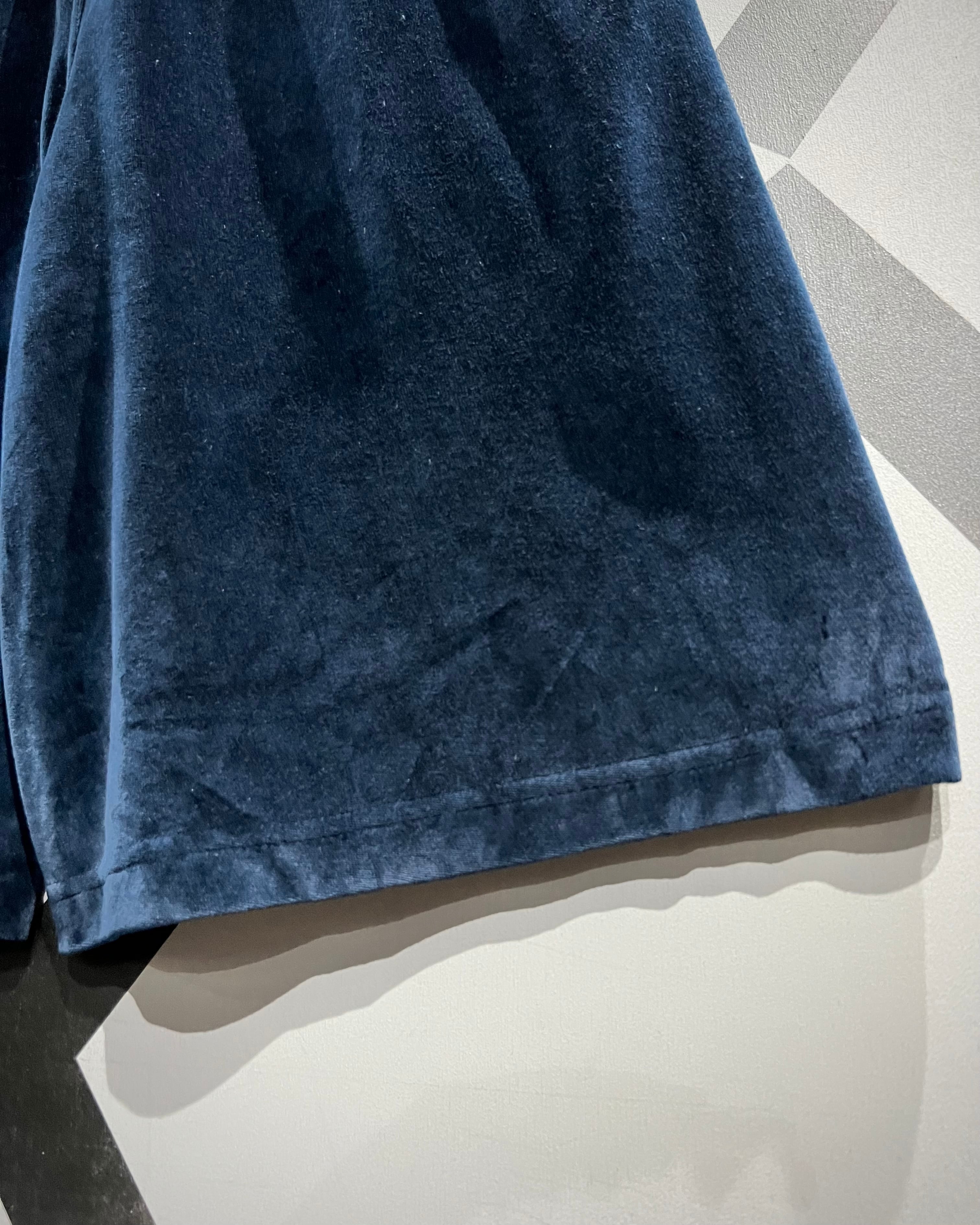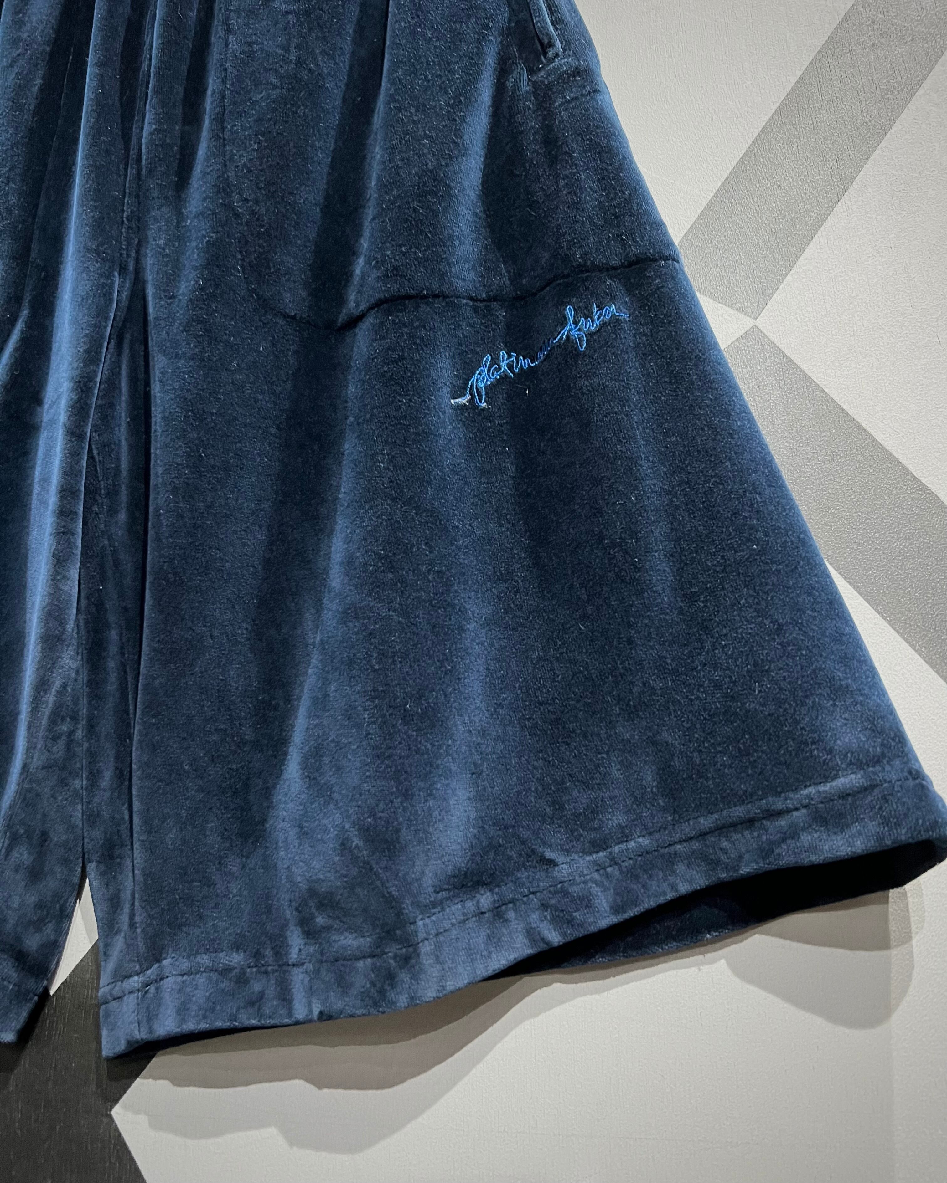 ネイビーのベロアを用いたイージータイプのショーツ。