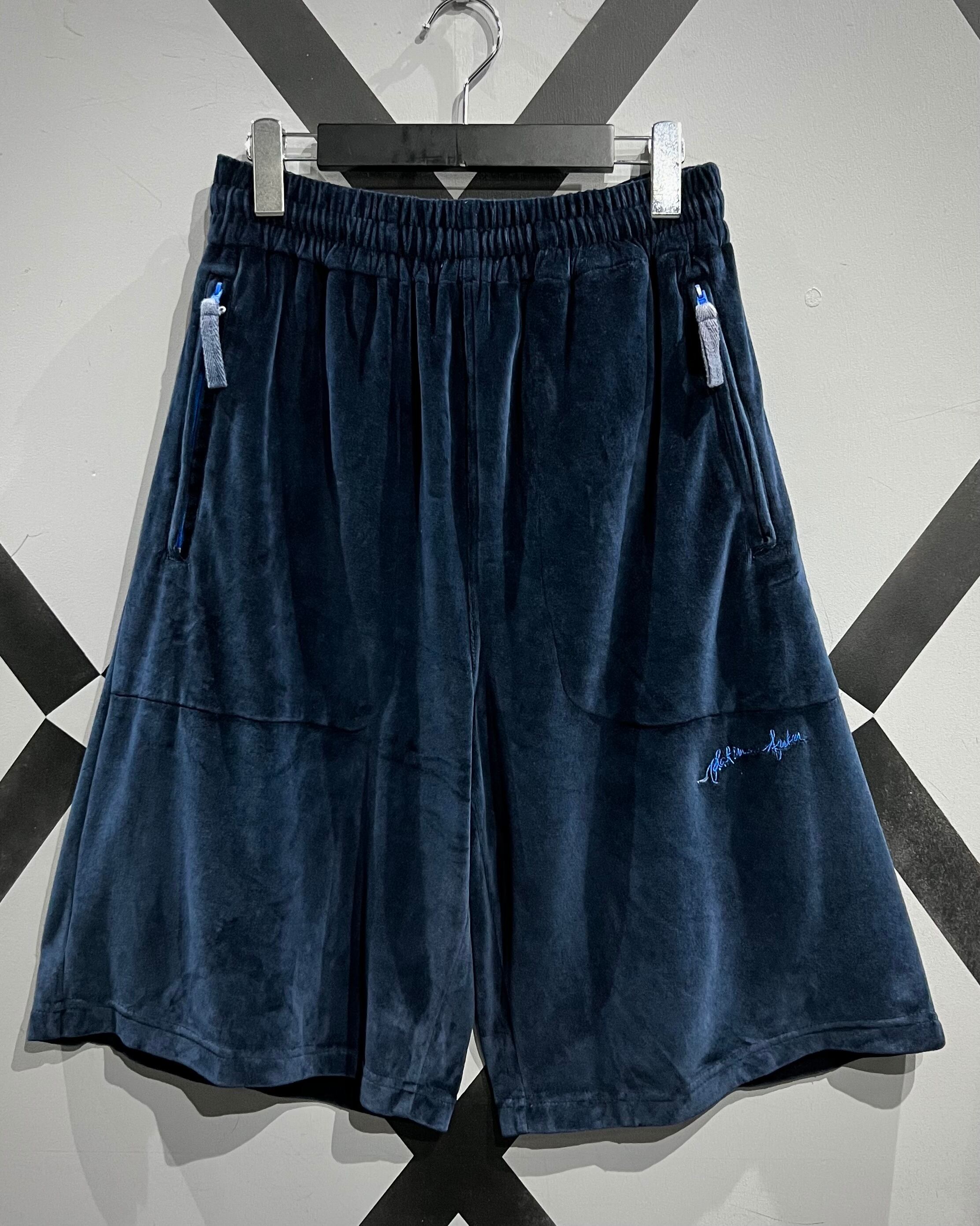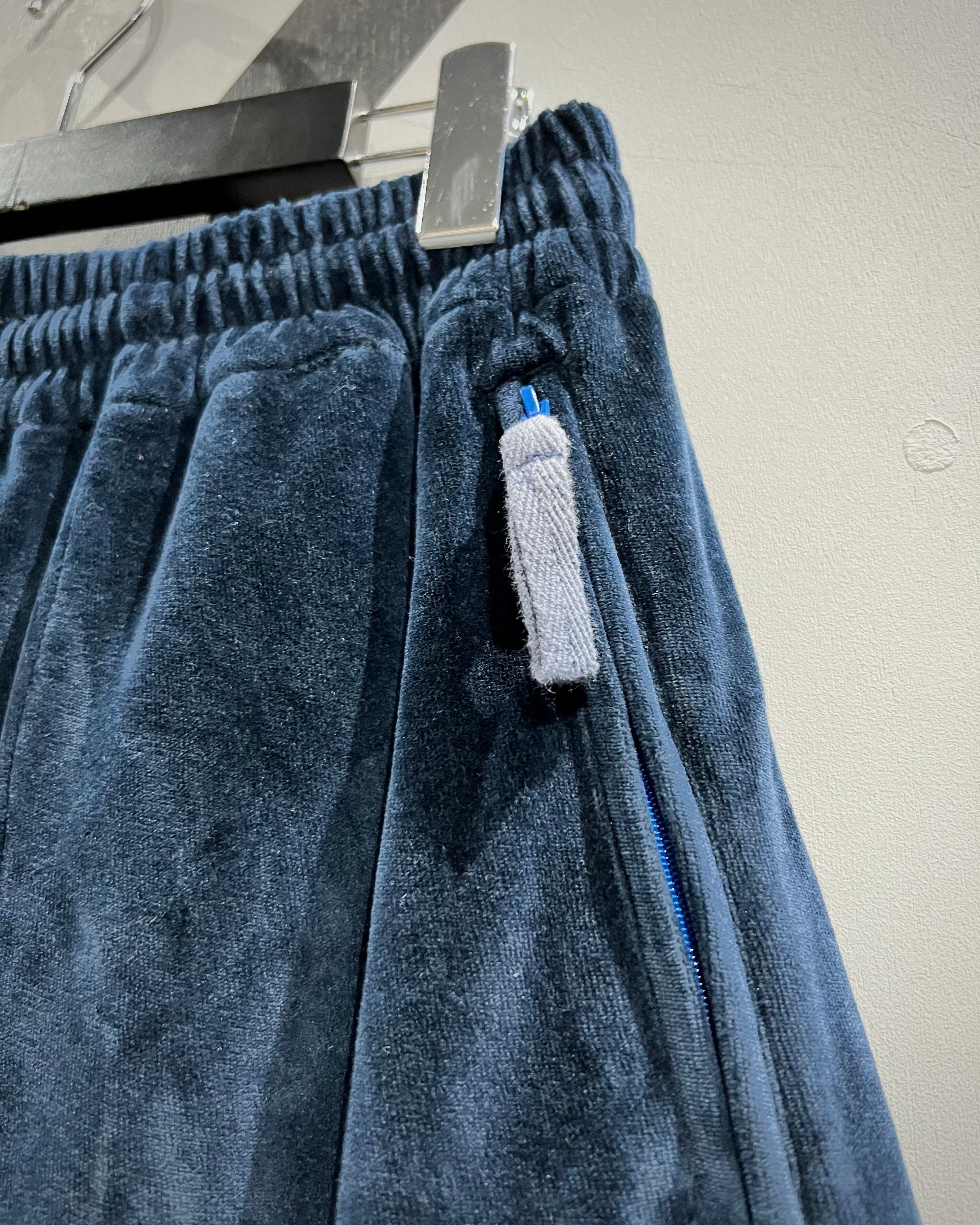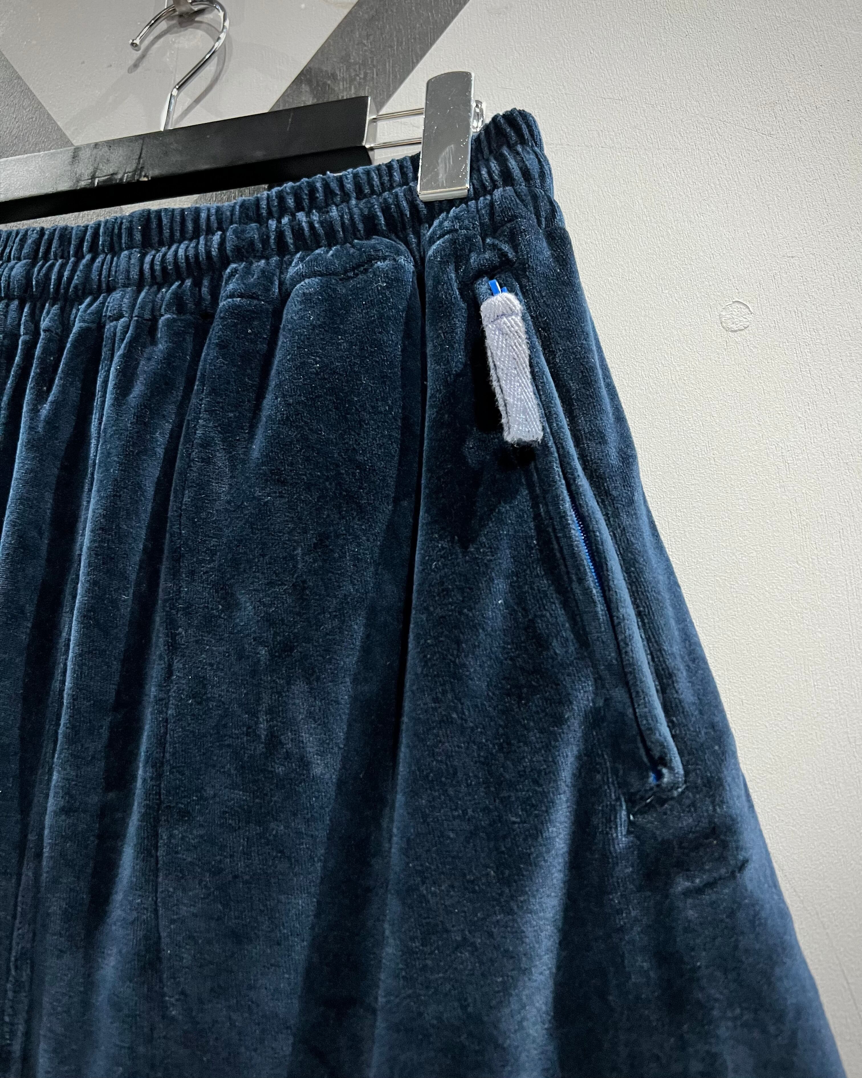 ネイビーのベロアを用いたイージータイプのショーツ。