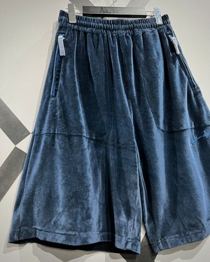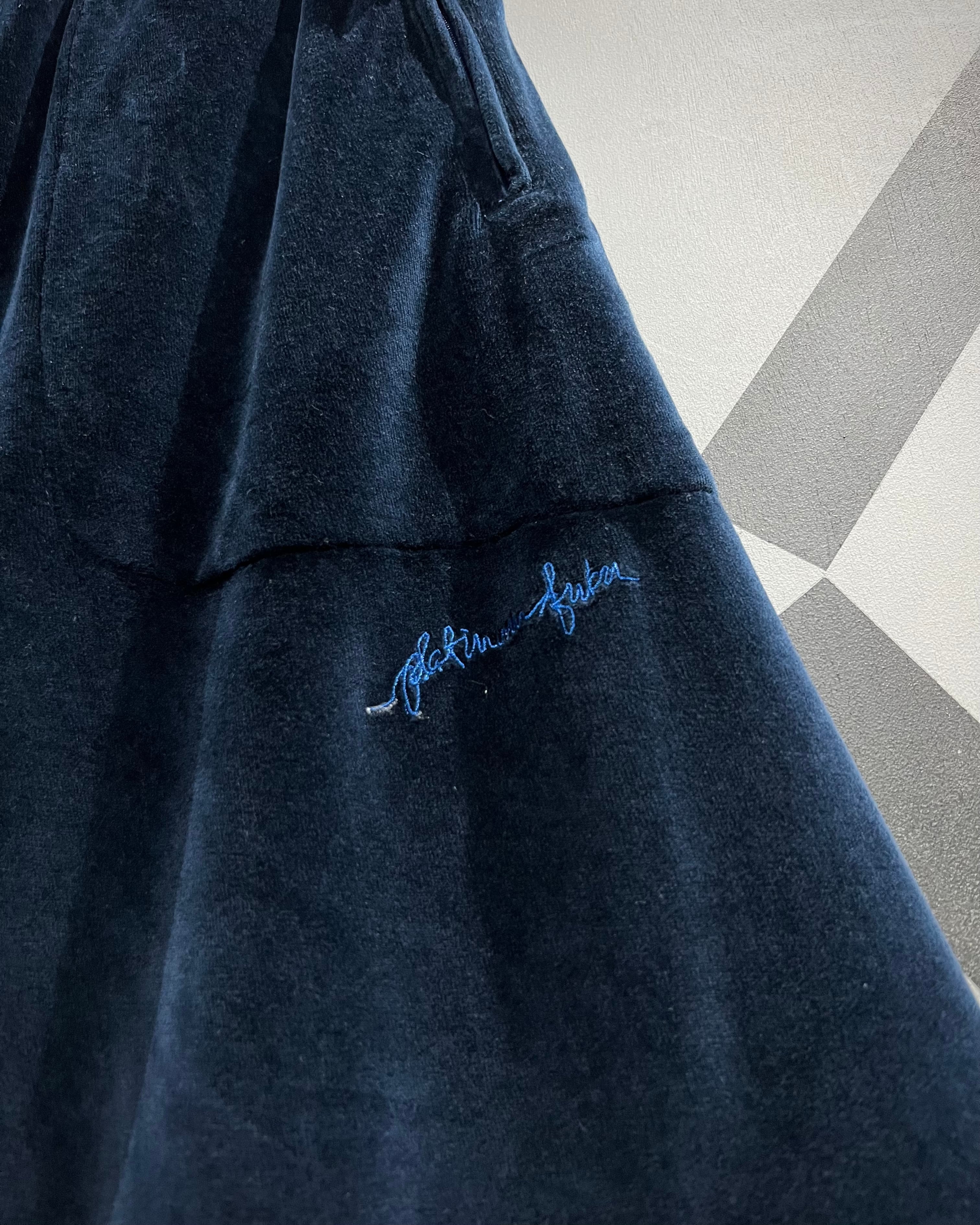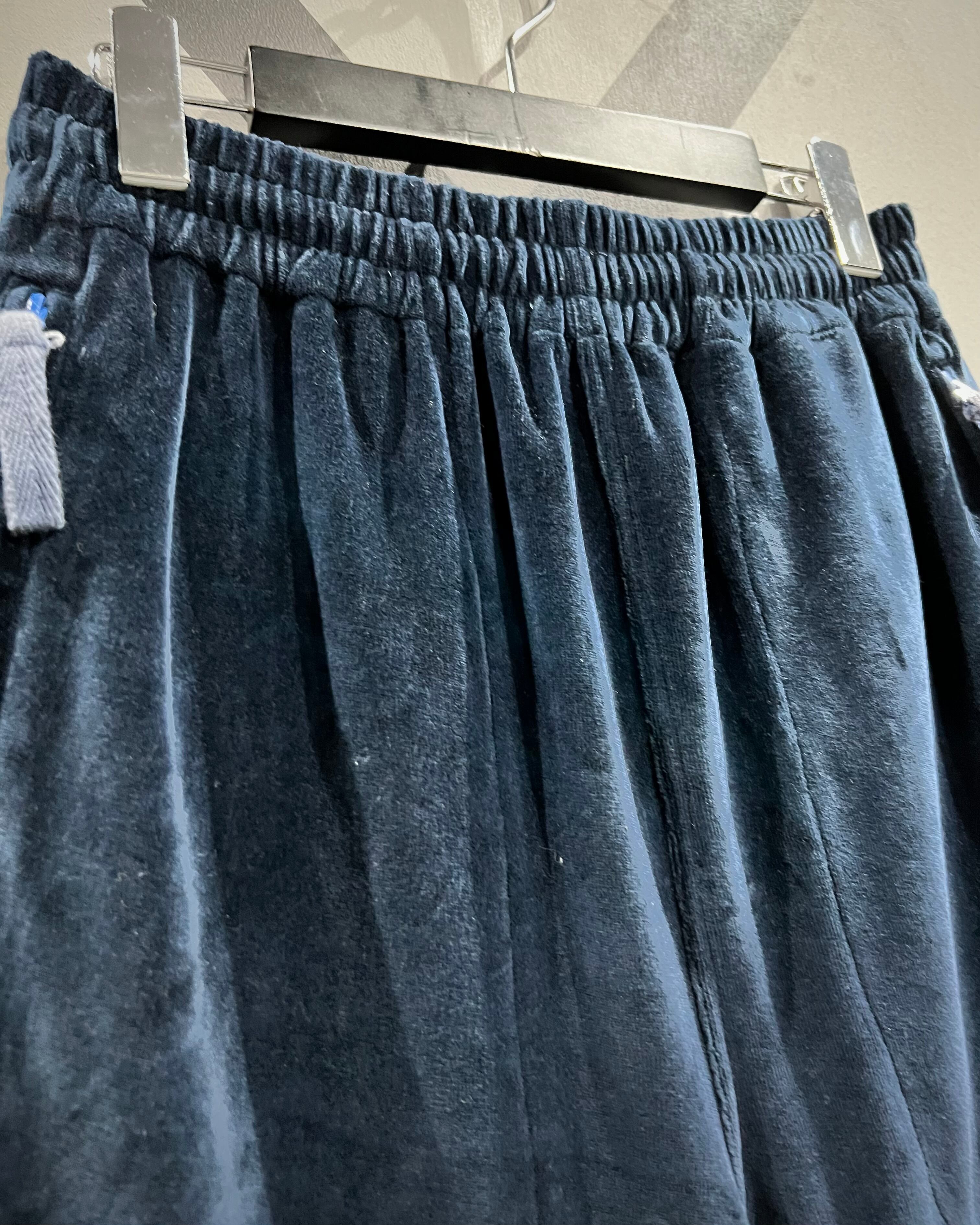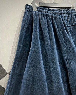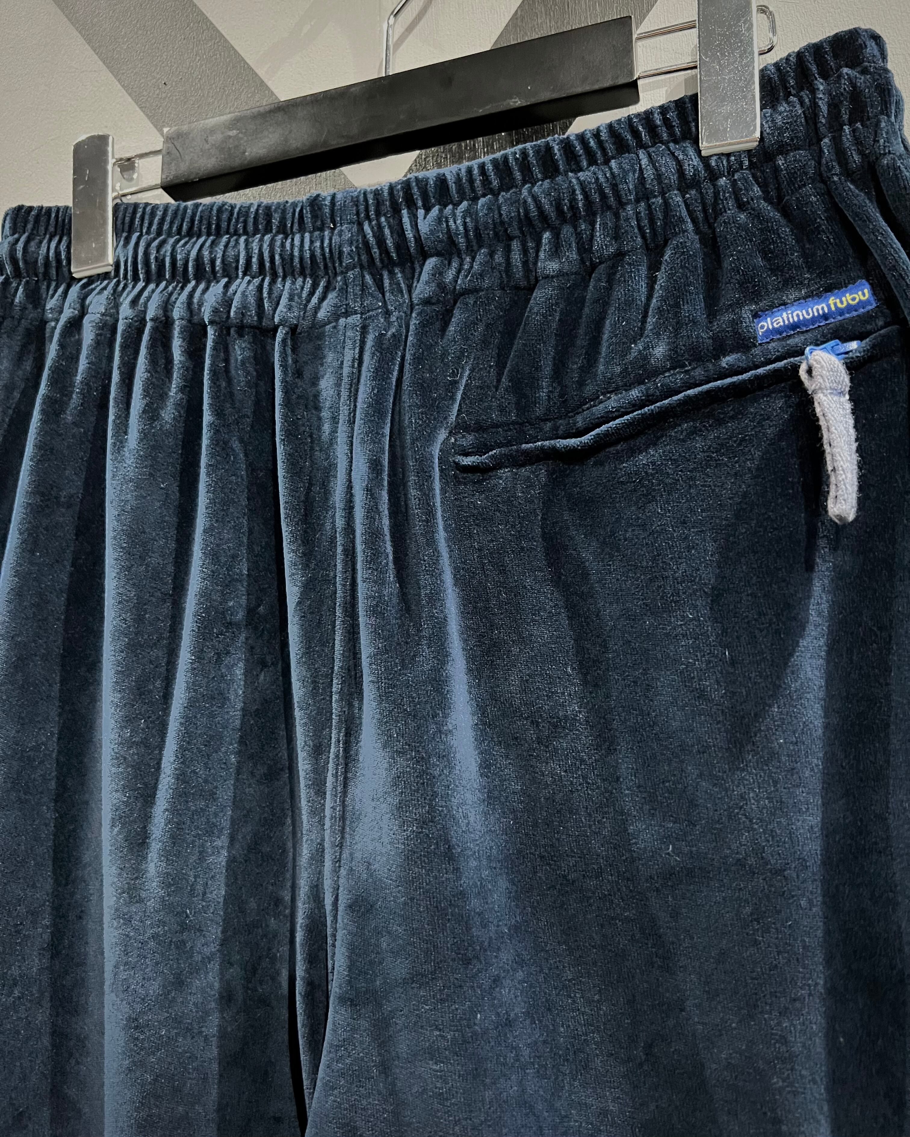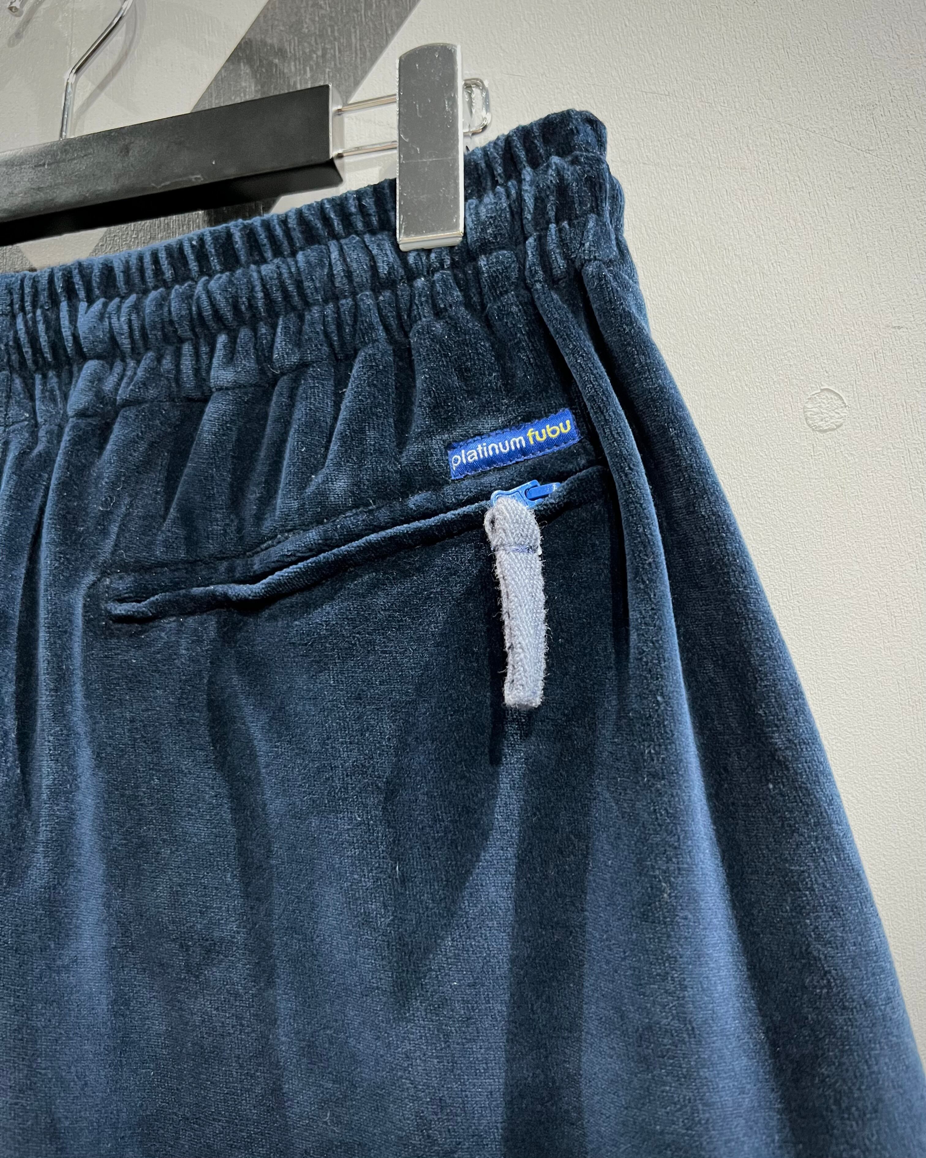 ネイビーのベロアを用いたイージータイプのショーツ。