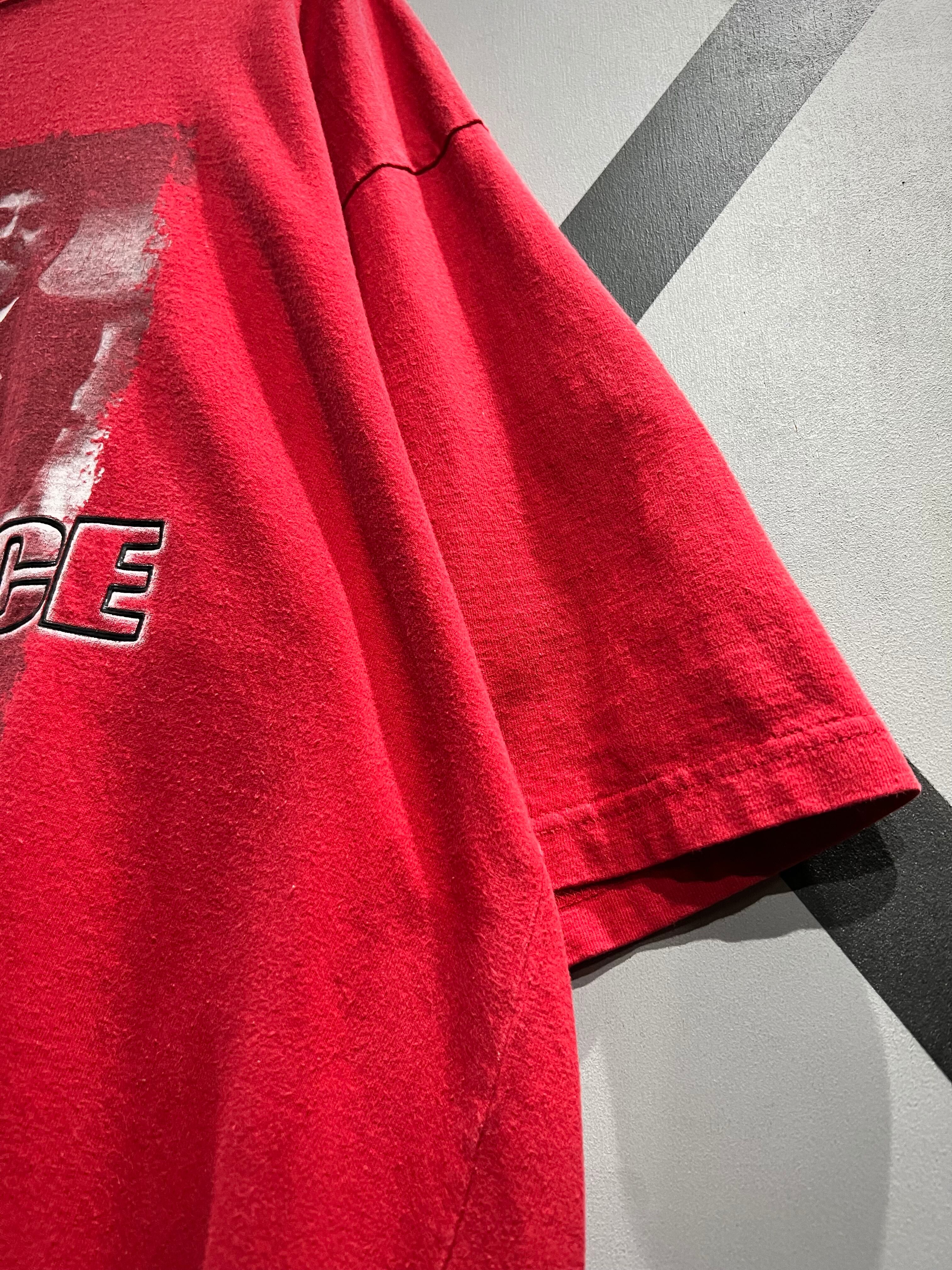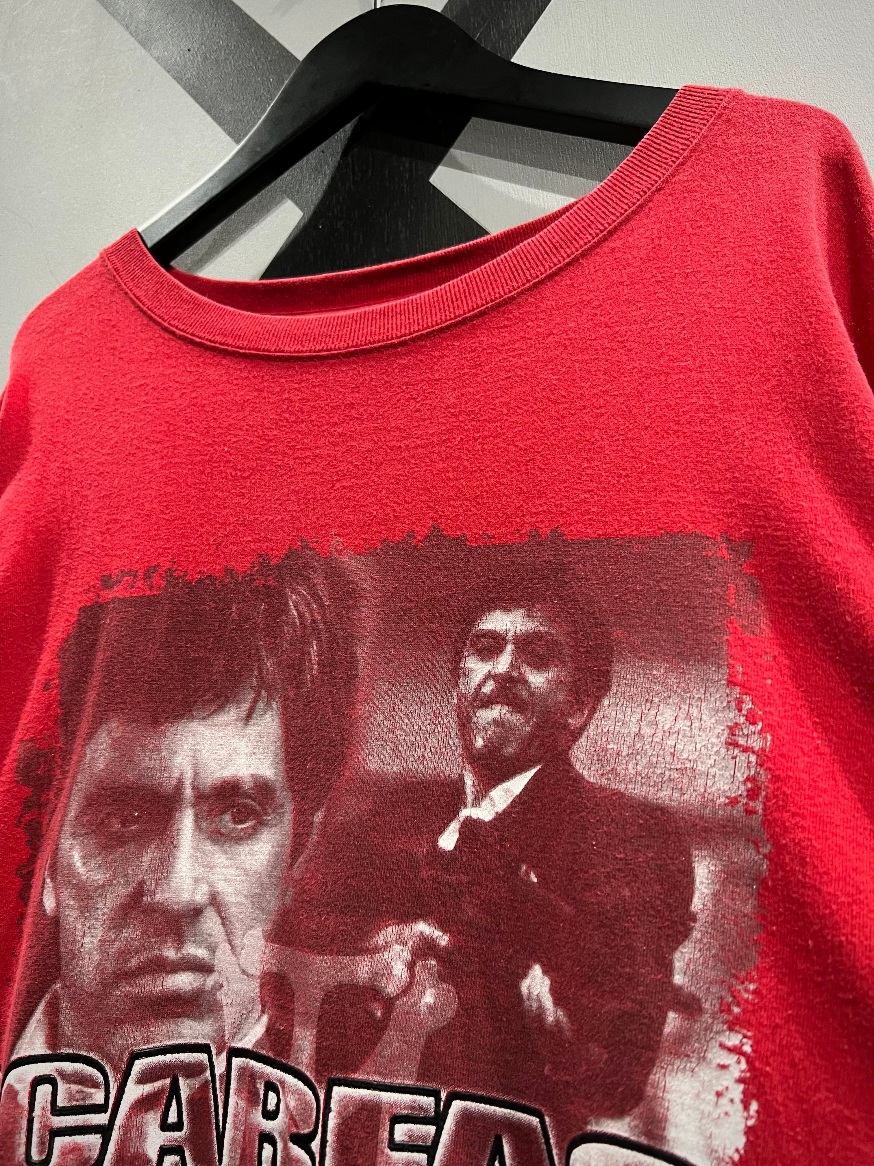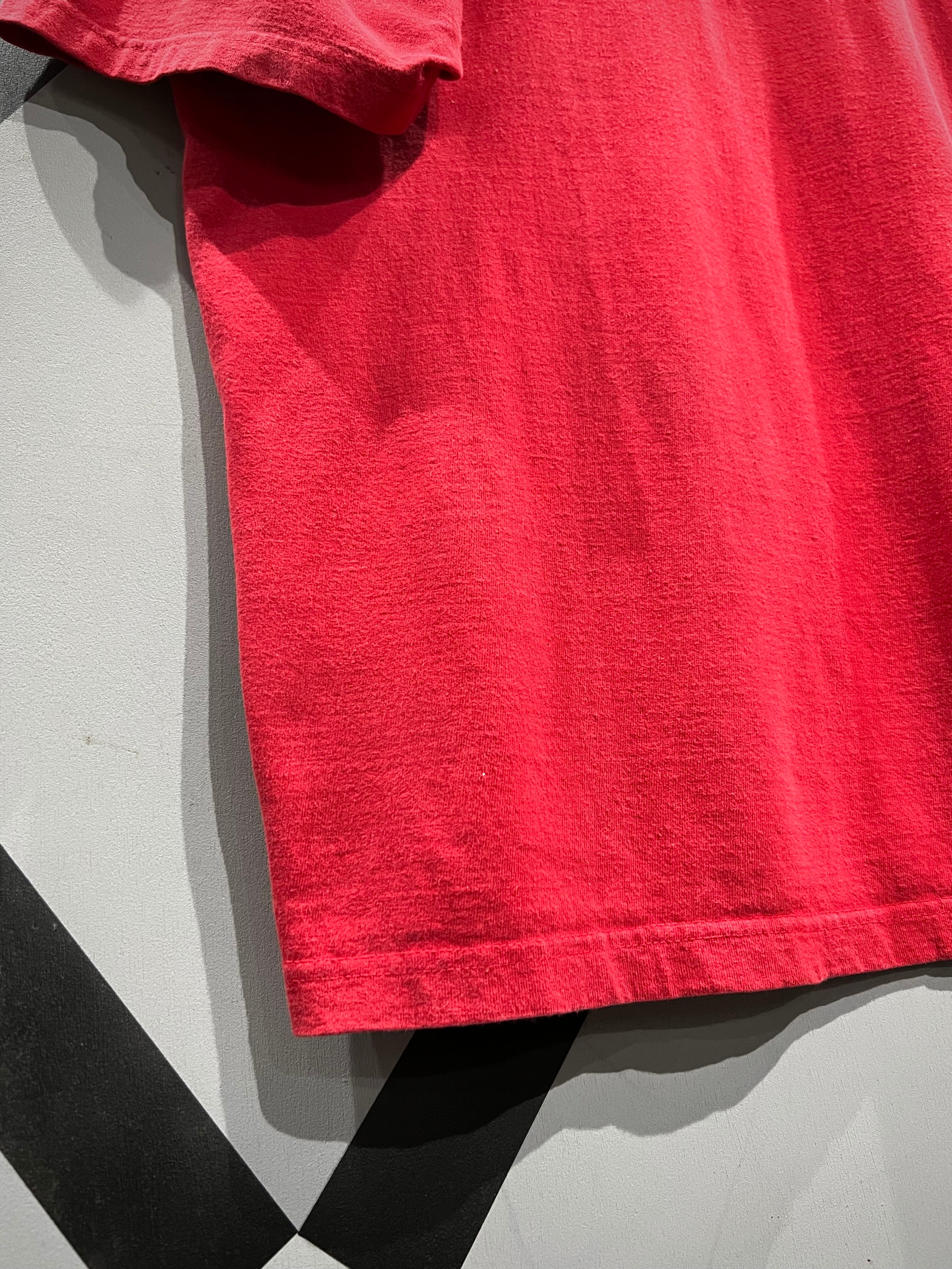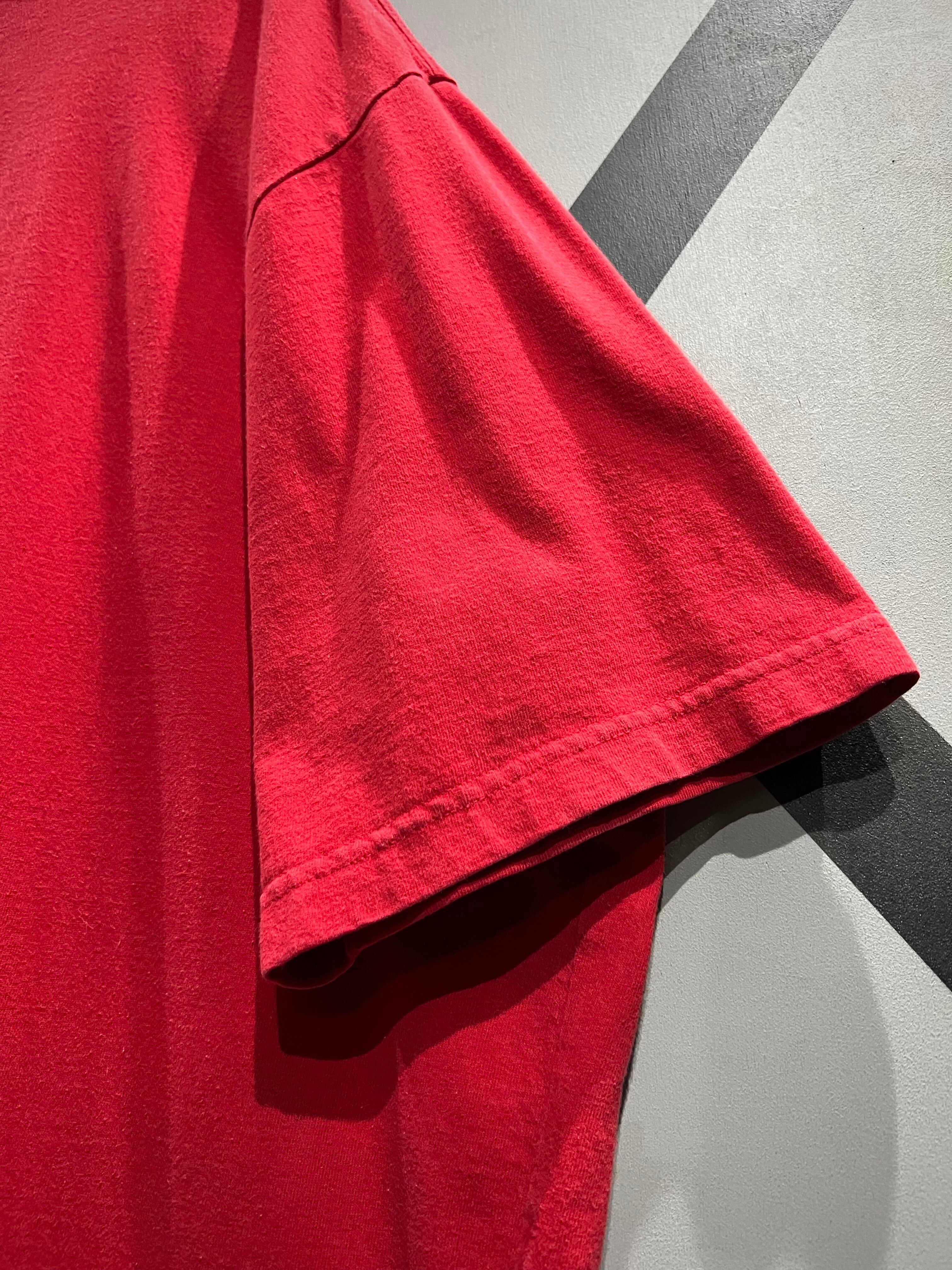 2XL表記のルーズなサイジングの赤ボディに、映画の名シーンプリントでON。経年による絶妙なヒビ割れも良く、その上からはラバープリントで"'SCARFACE"の文字。映画自体の迫力をそのまま一つの洋服に落とし込んだようなデザイン性抜群の仕上がりに。