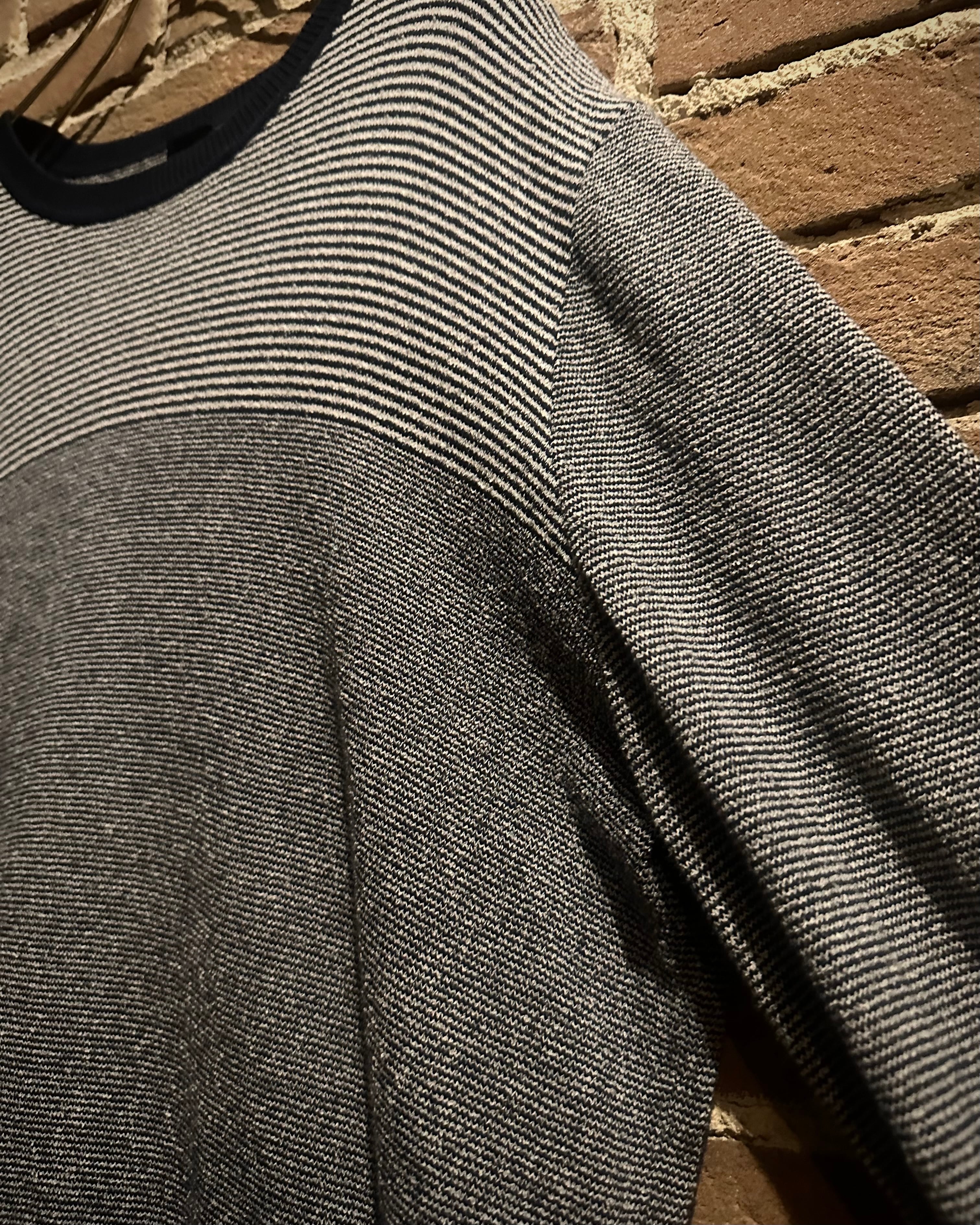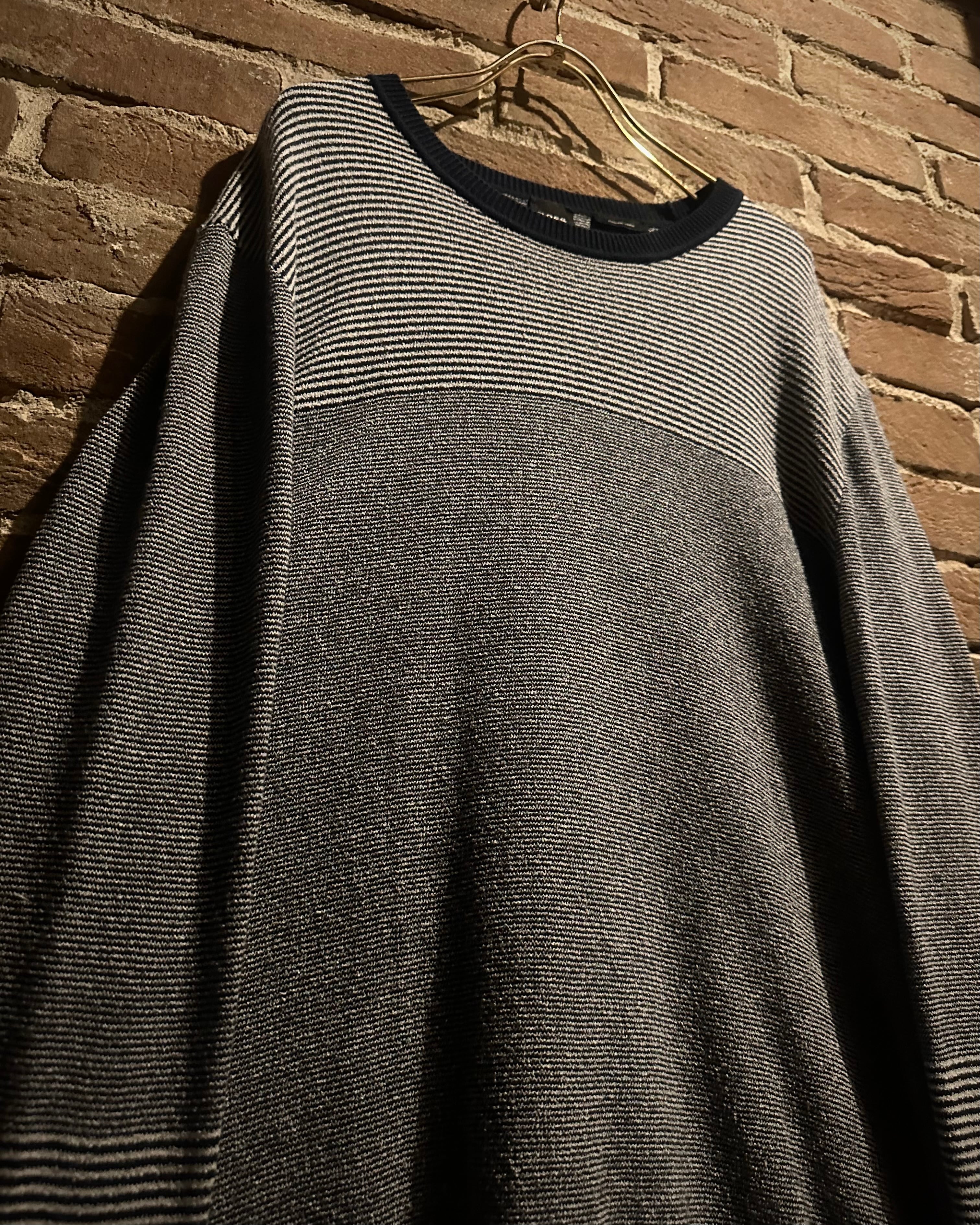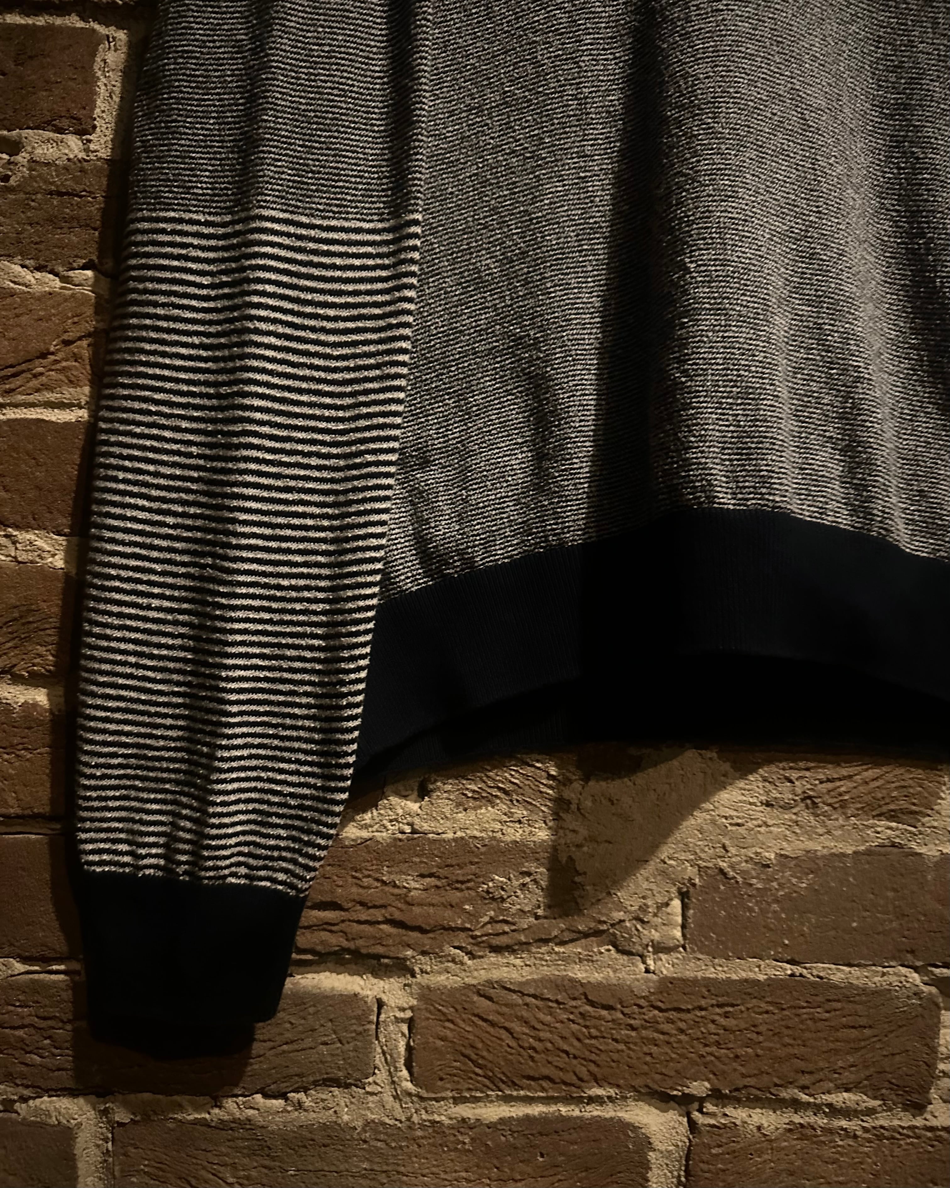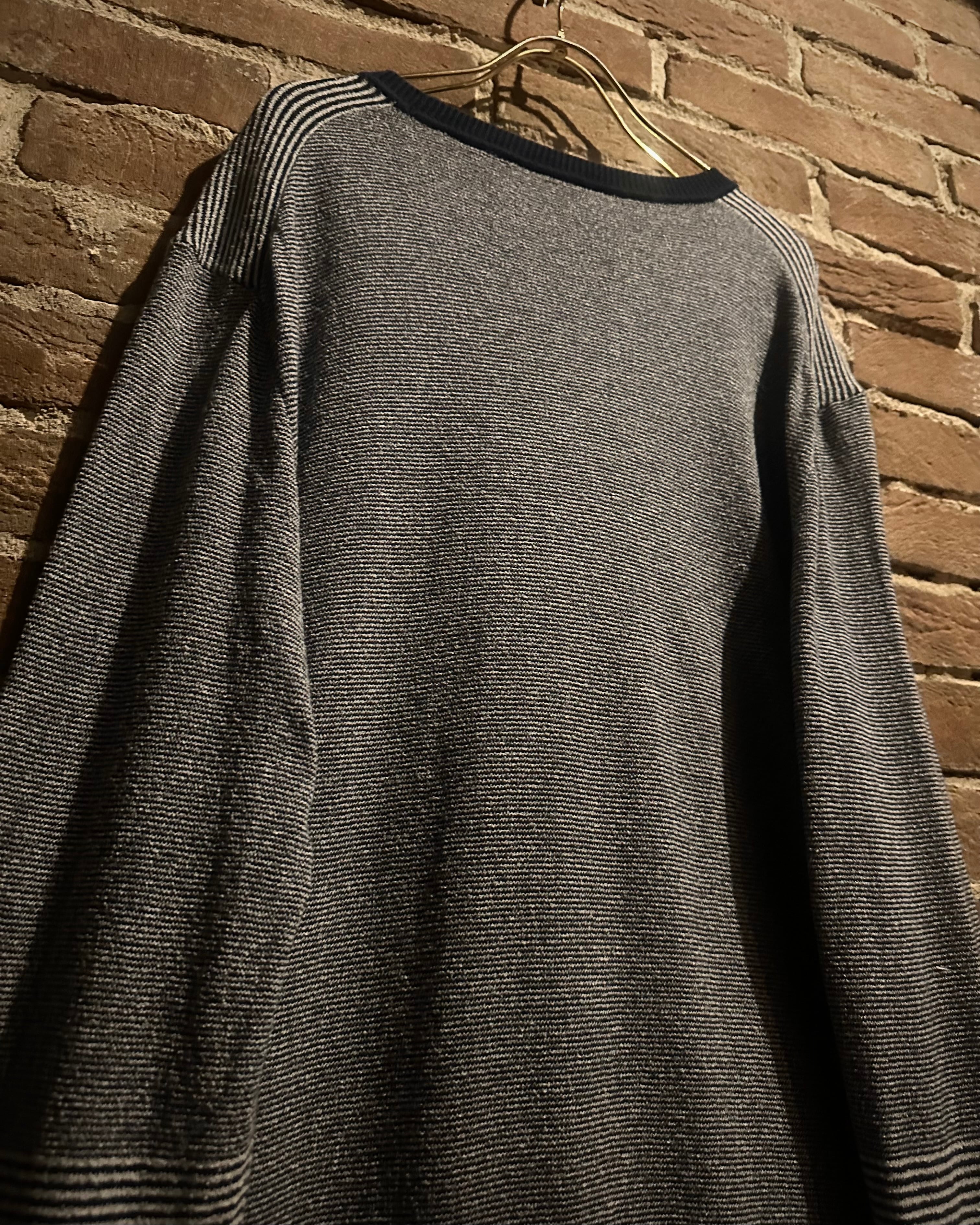 白×黒のモノトーンのカラーリングでボーダーに仕上げた、上質なイタリアンヤーンを用いたプルオーバーニット。