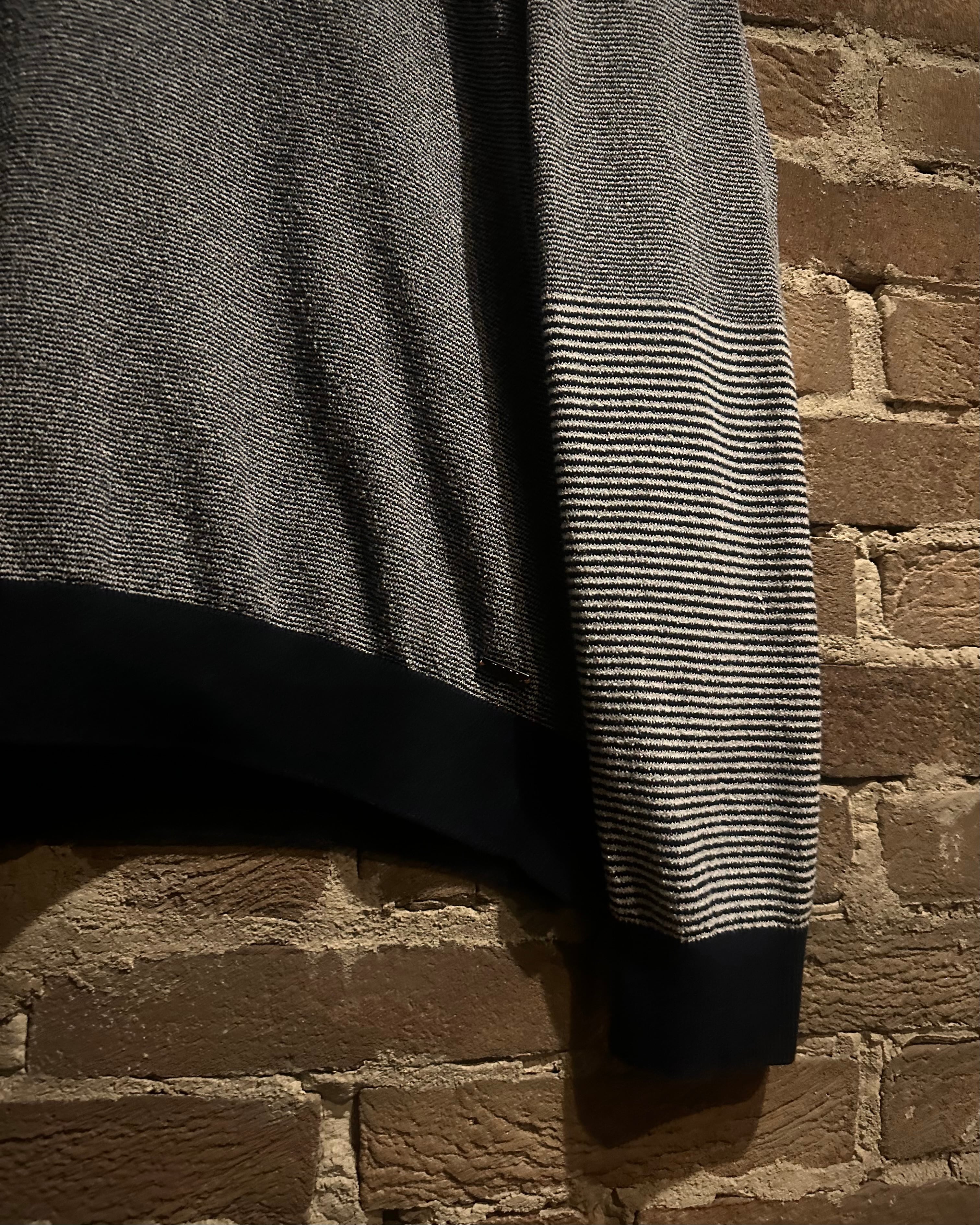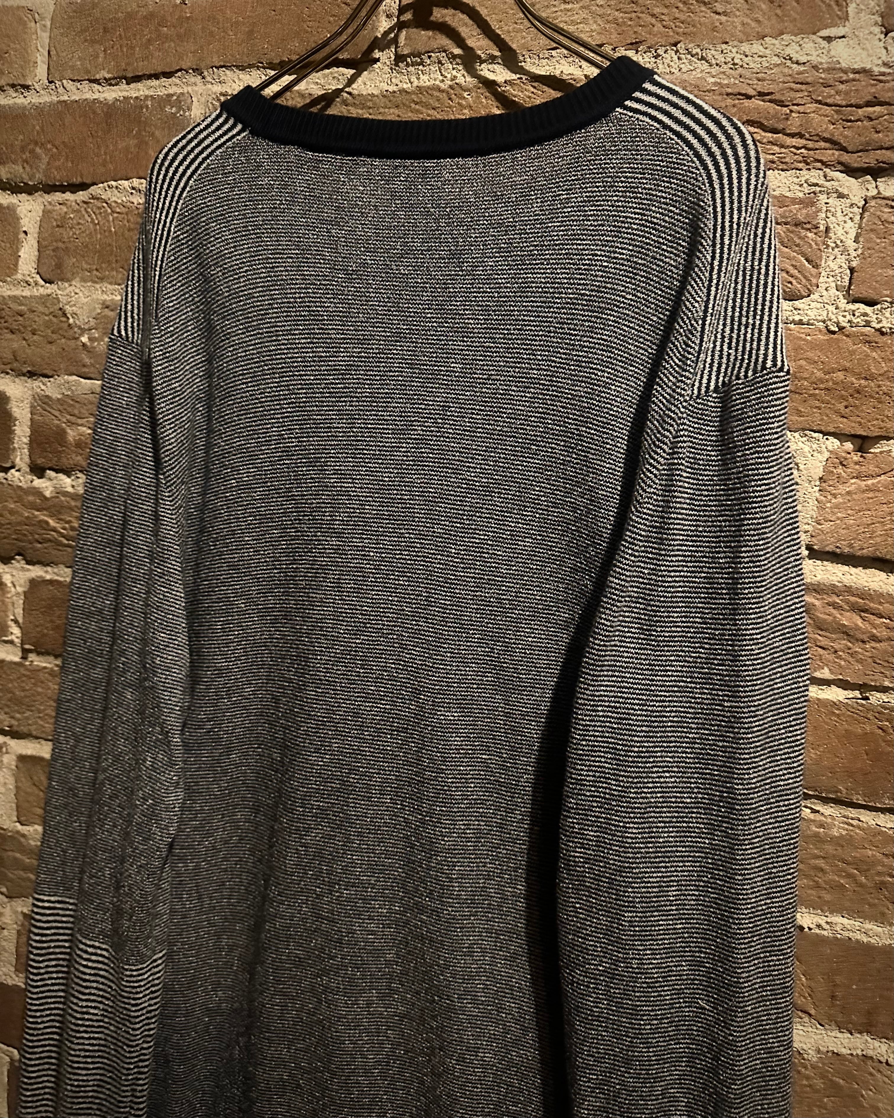 ピッチを変えることで単調なボーダーのデザインに立体感をプラス。ベーシックながら一癖効いたデザインが洒落てます。左裾付近のブランドのプレートも◎