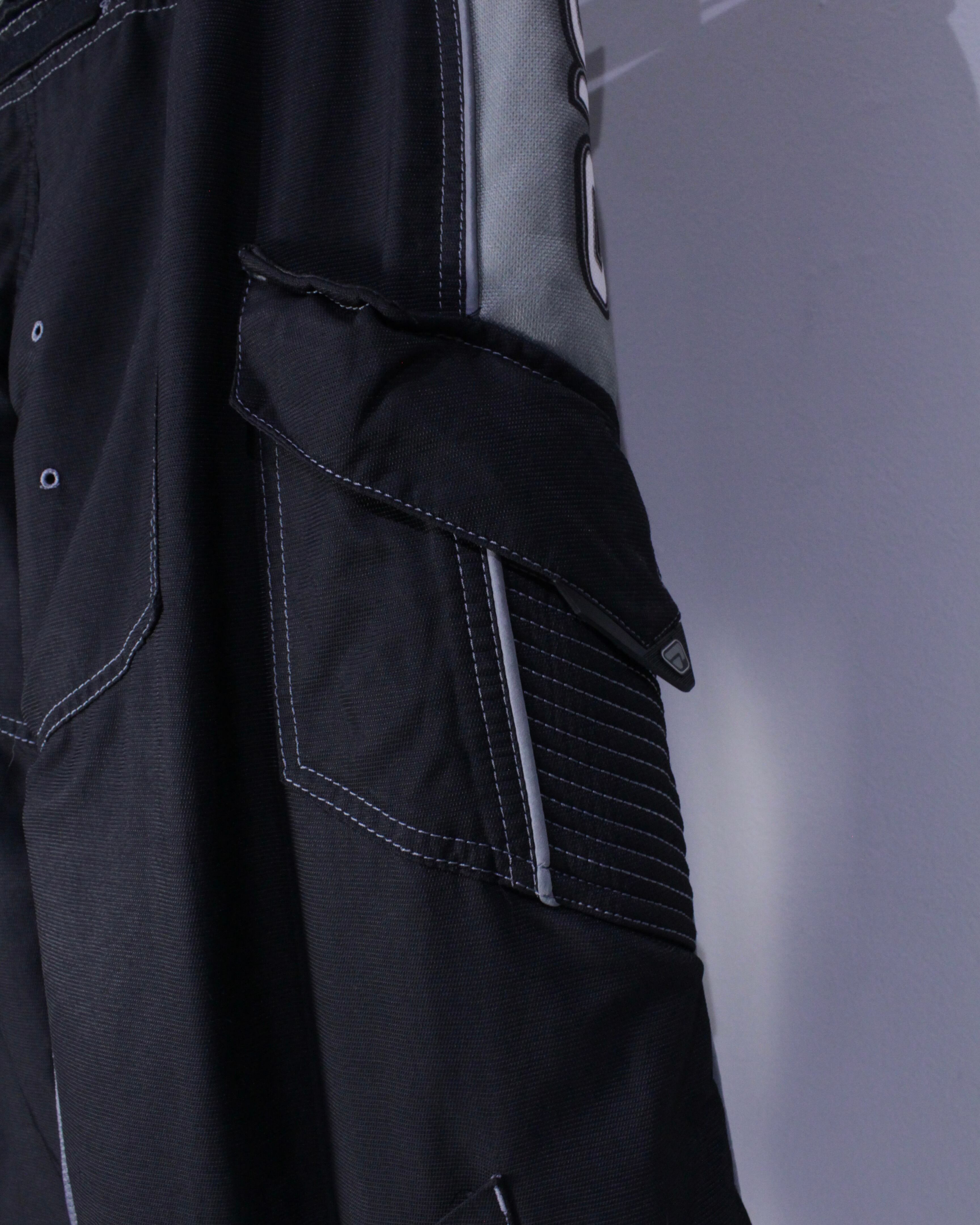 高密度で織られたタフな生地を用いた上にステッチを叩き立体感をプラス。背面にも立体的な切り替えが施されていたり、シリコンパッチでブランドネームが載せられていたりと、レーシングらしい高い機能性にデザイン両立された仕上がりに。