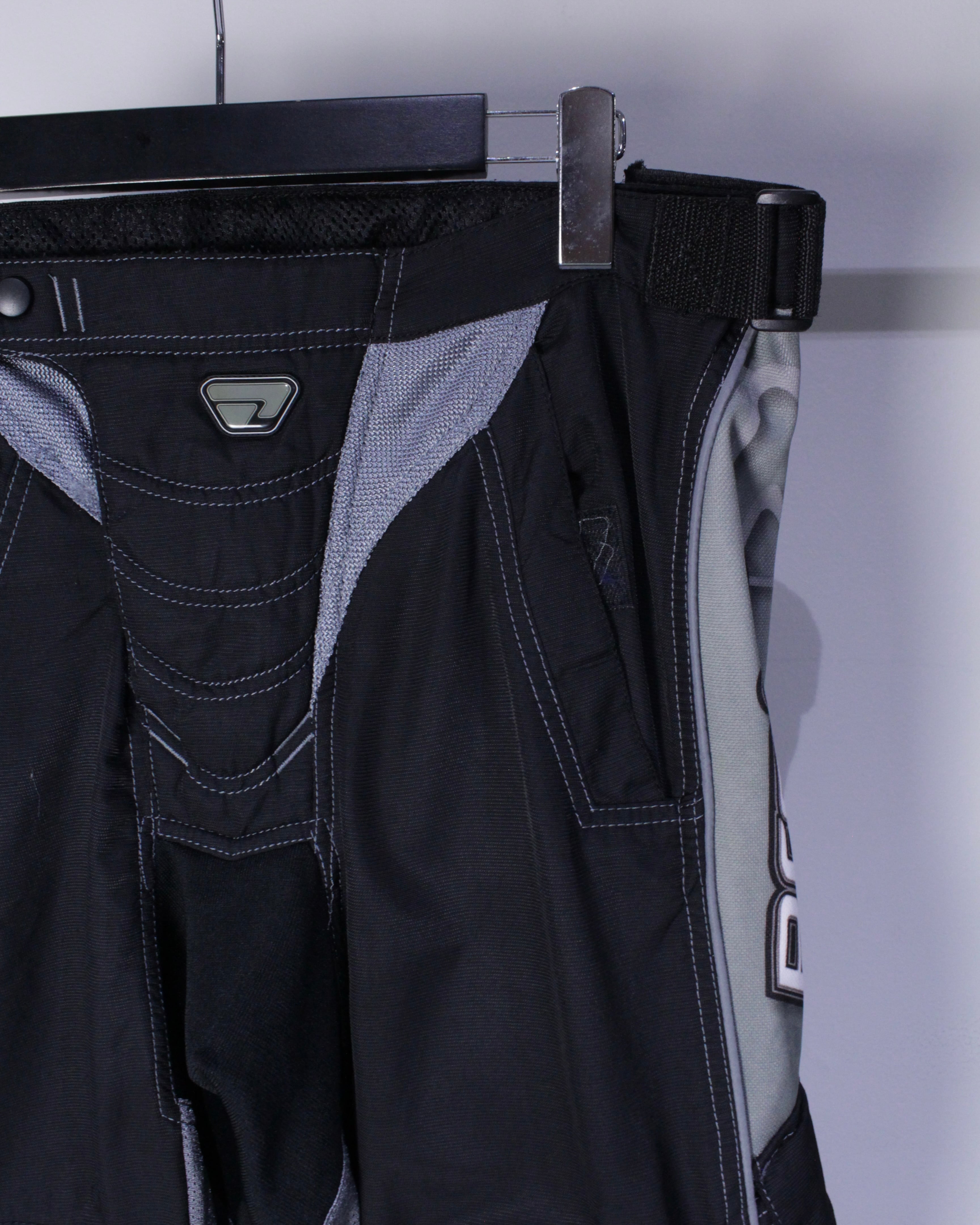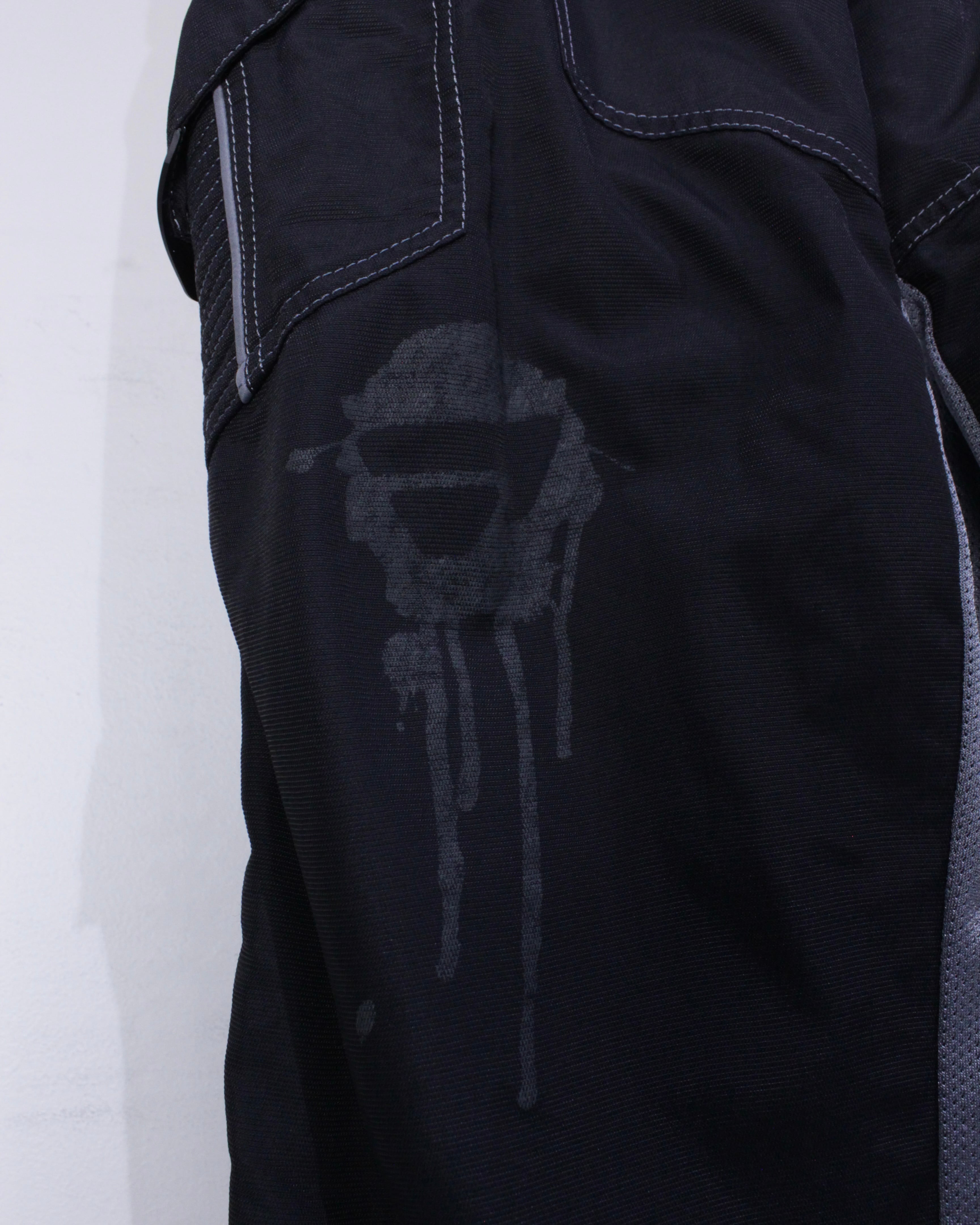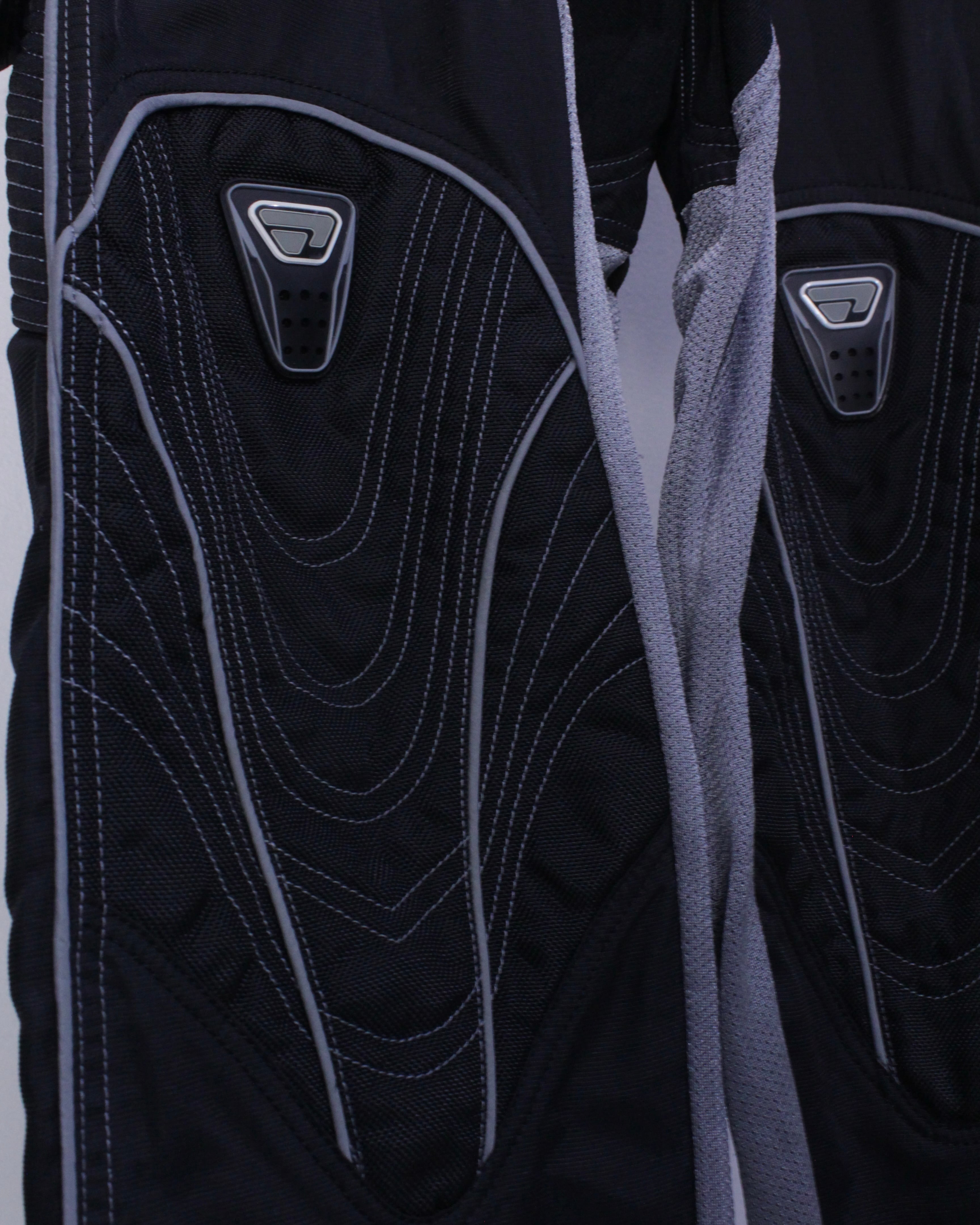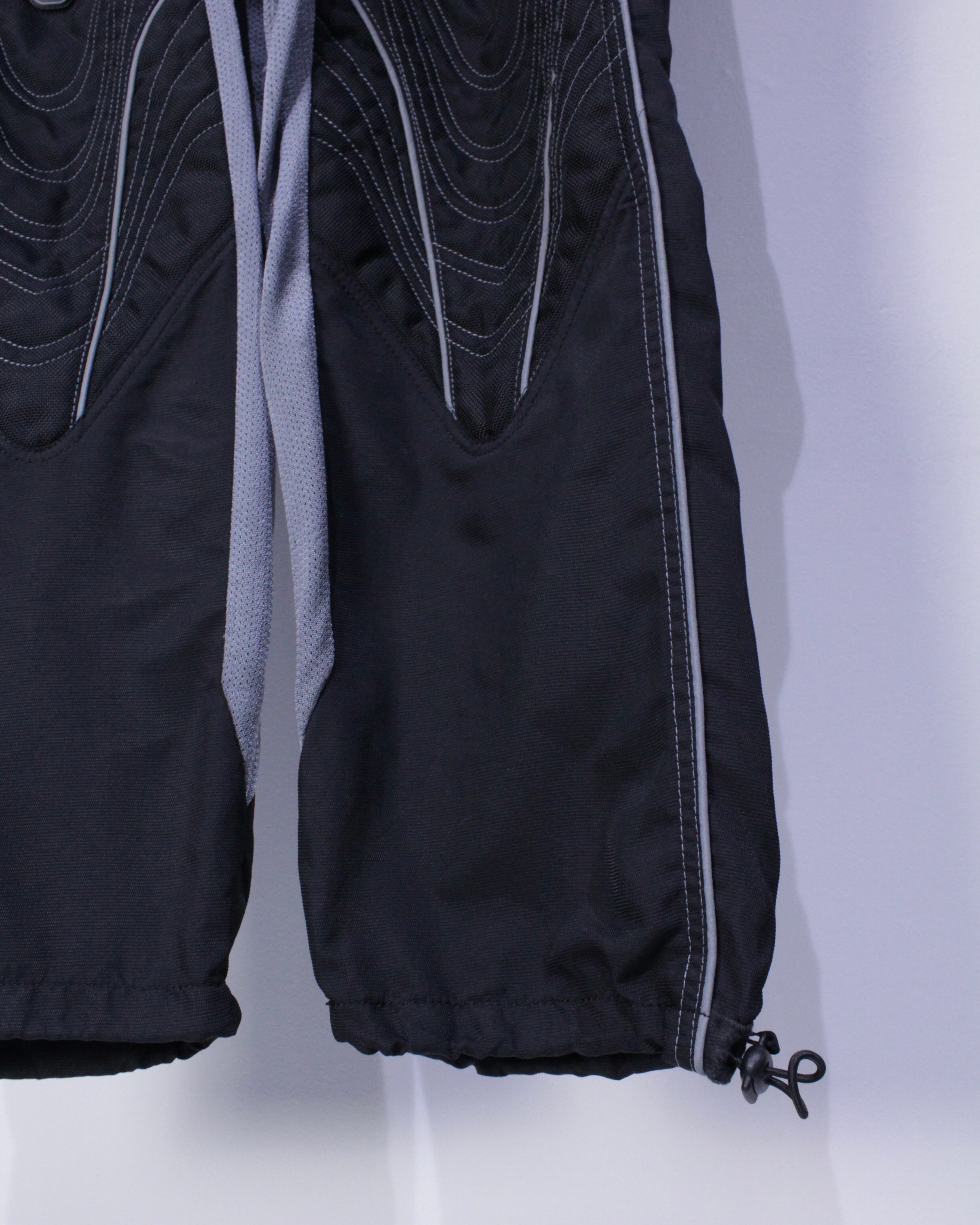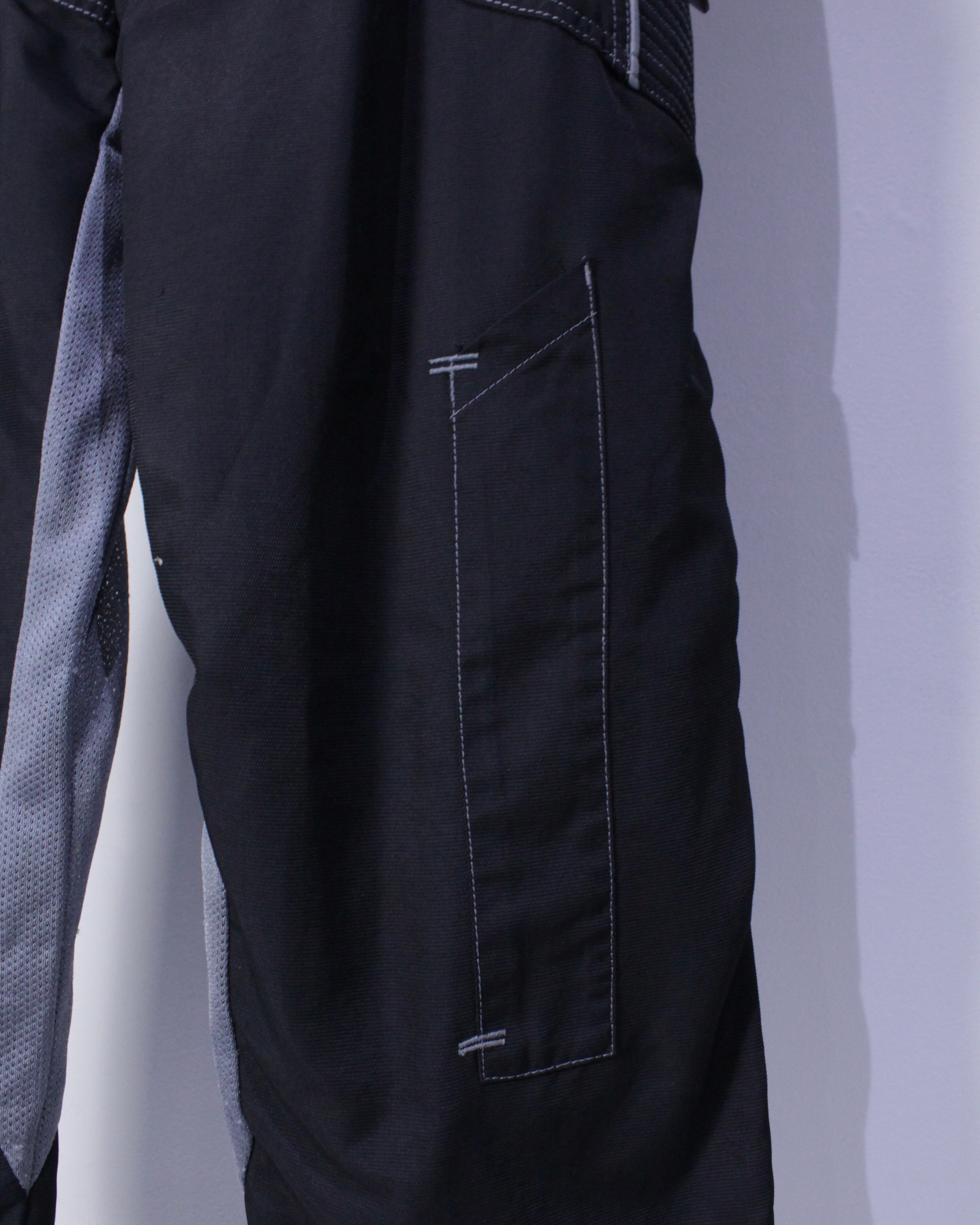 ブラックのボディをベースに、膝部分に立体的な切り替えを施したレーシングパンツ。