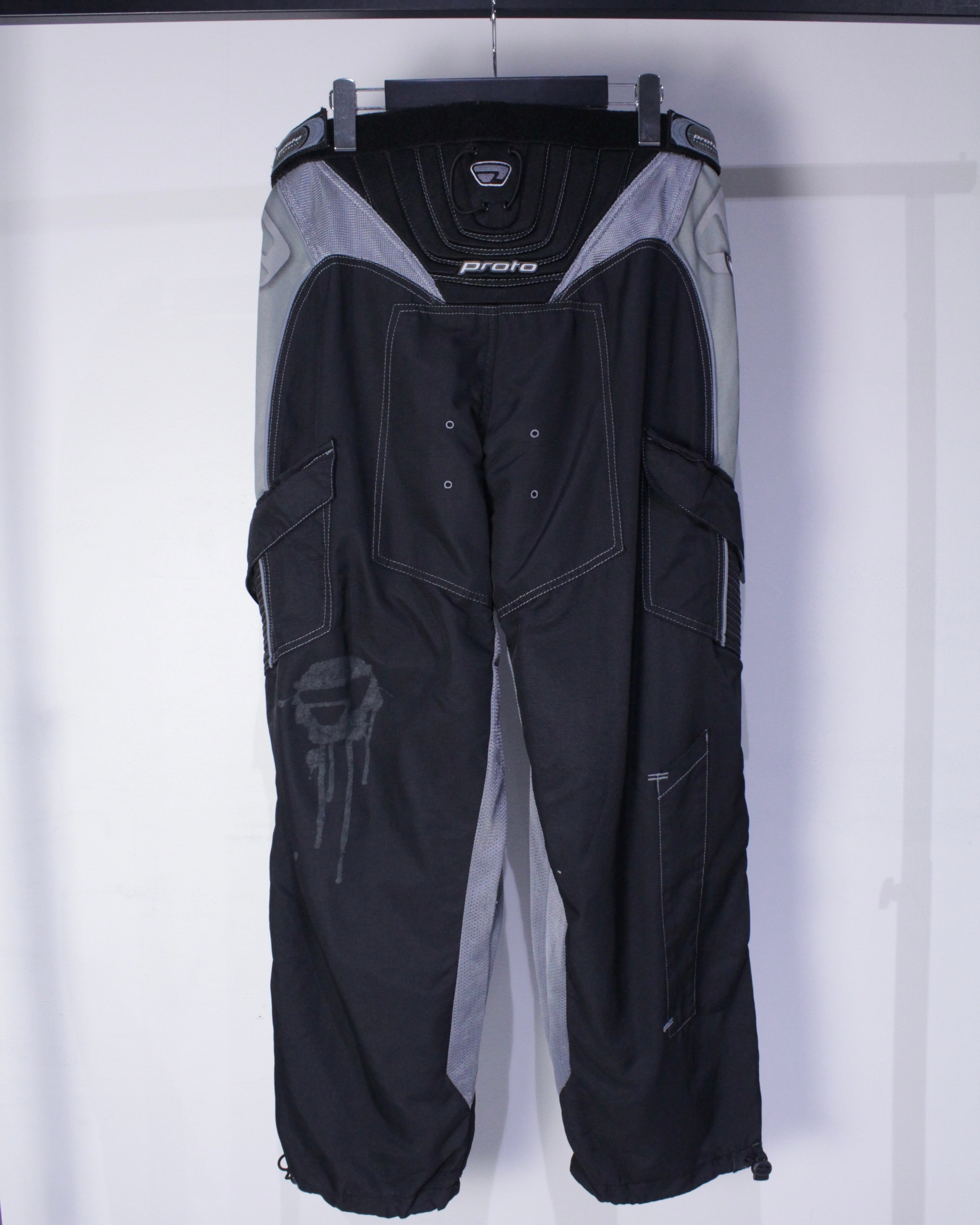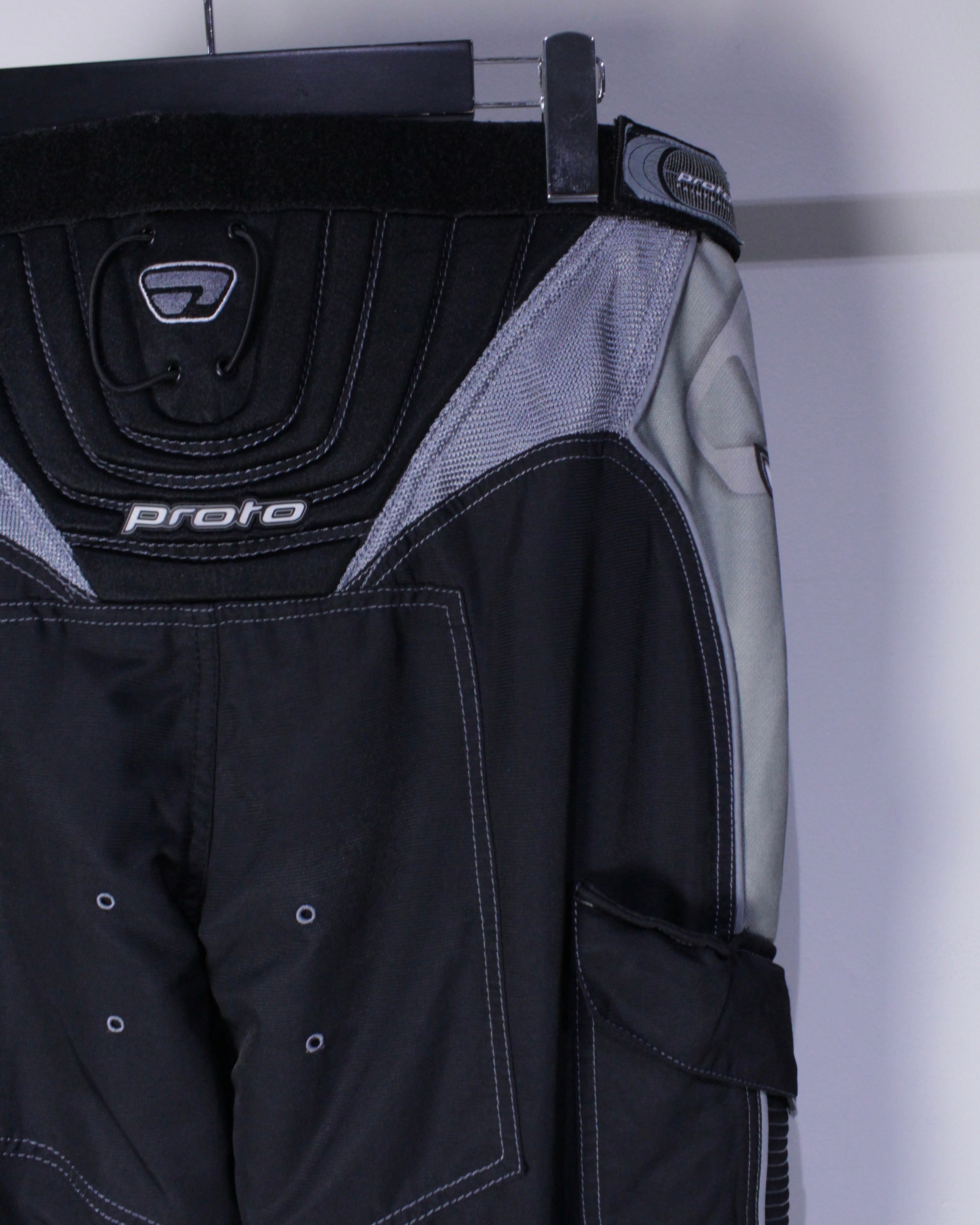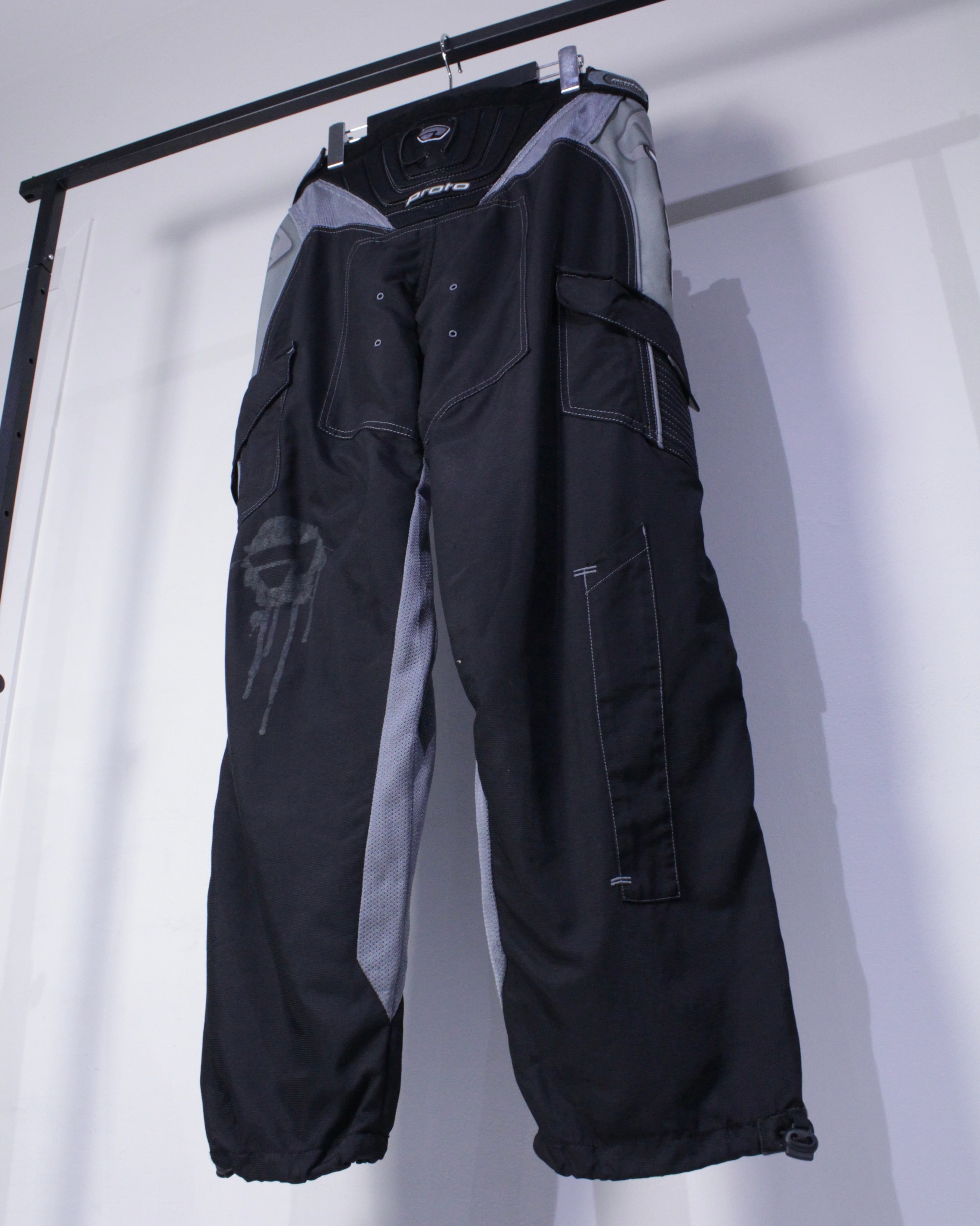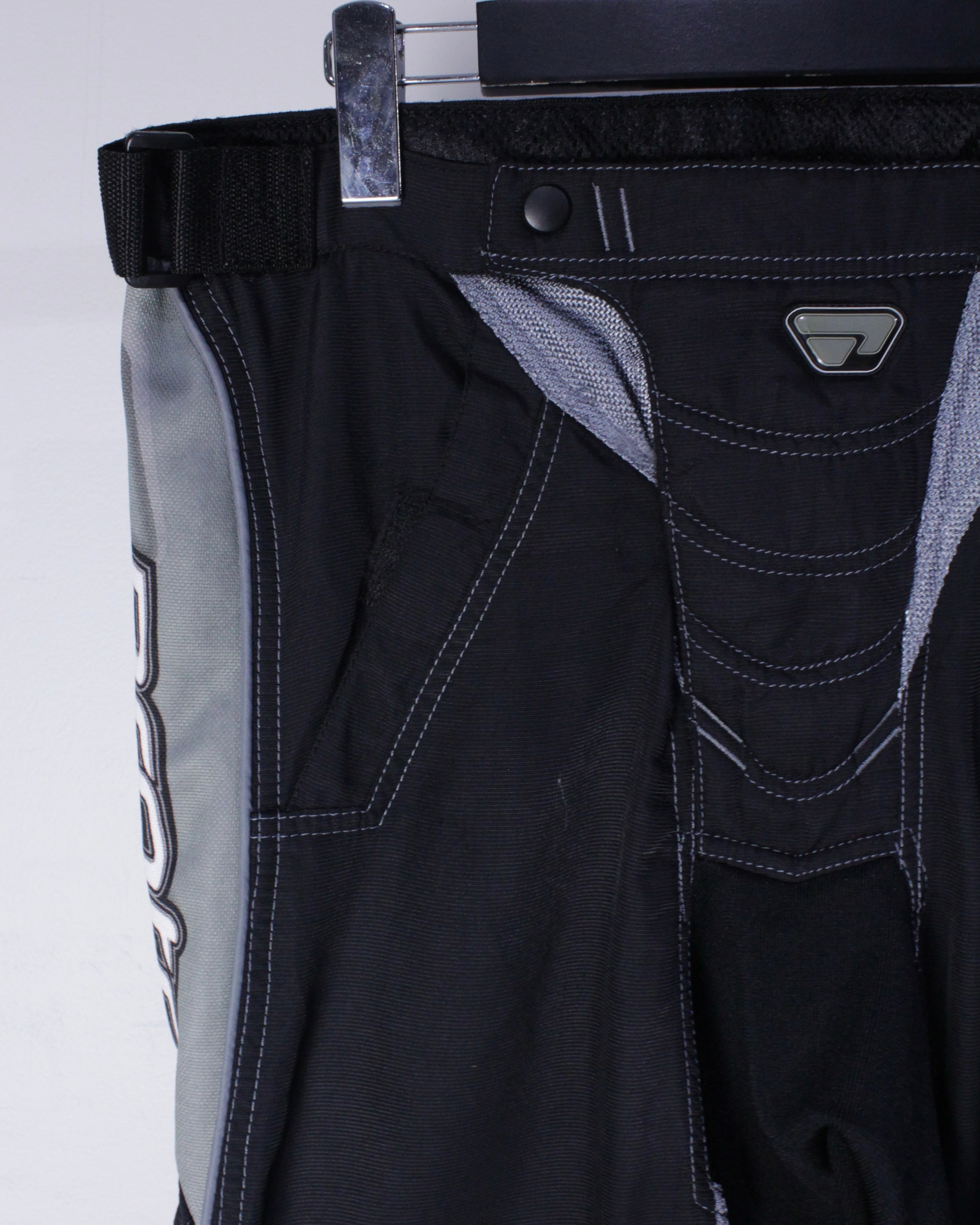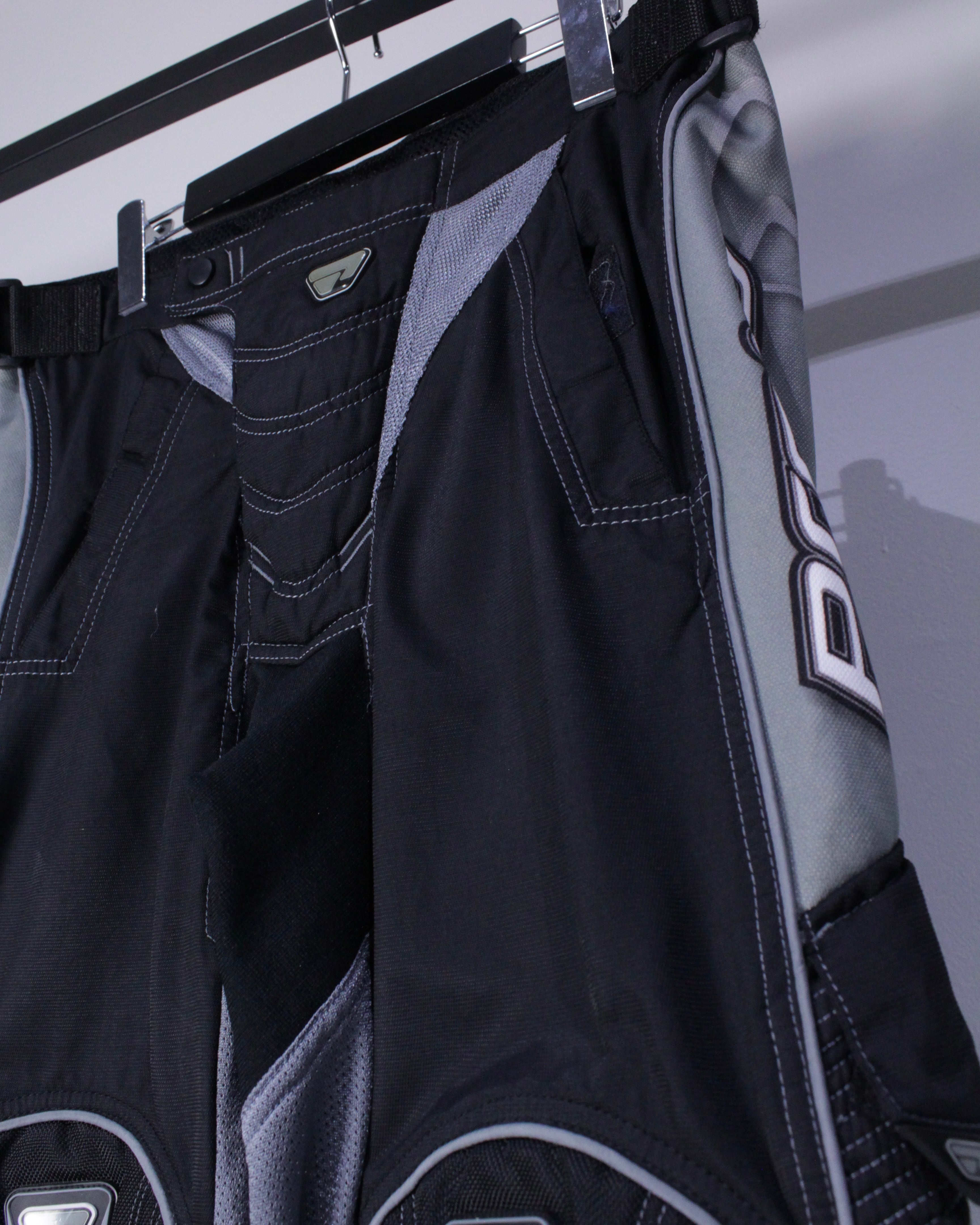 ブラックのボディをベースに、膝部分に立体的な切り替えを施したレーシングパンツ。