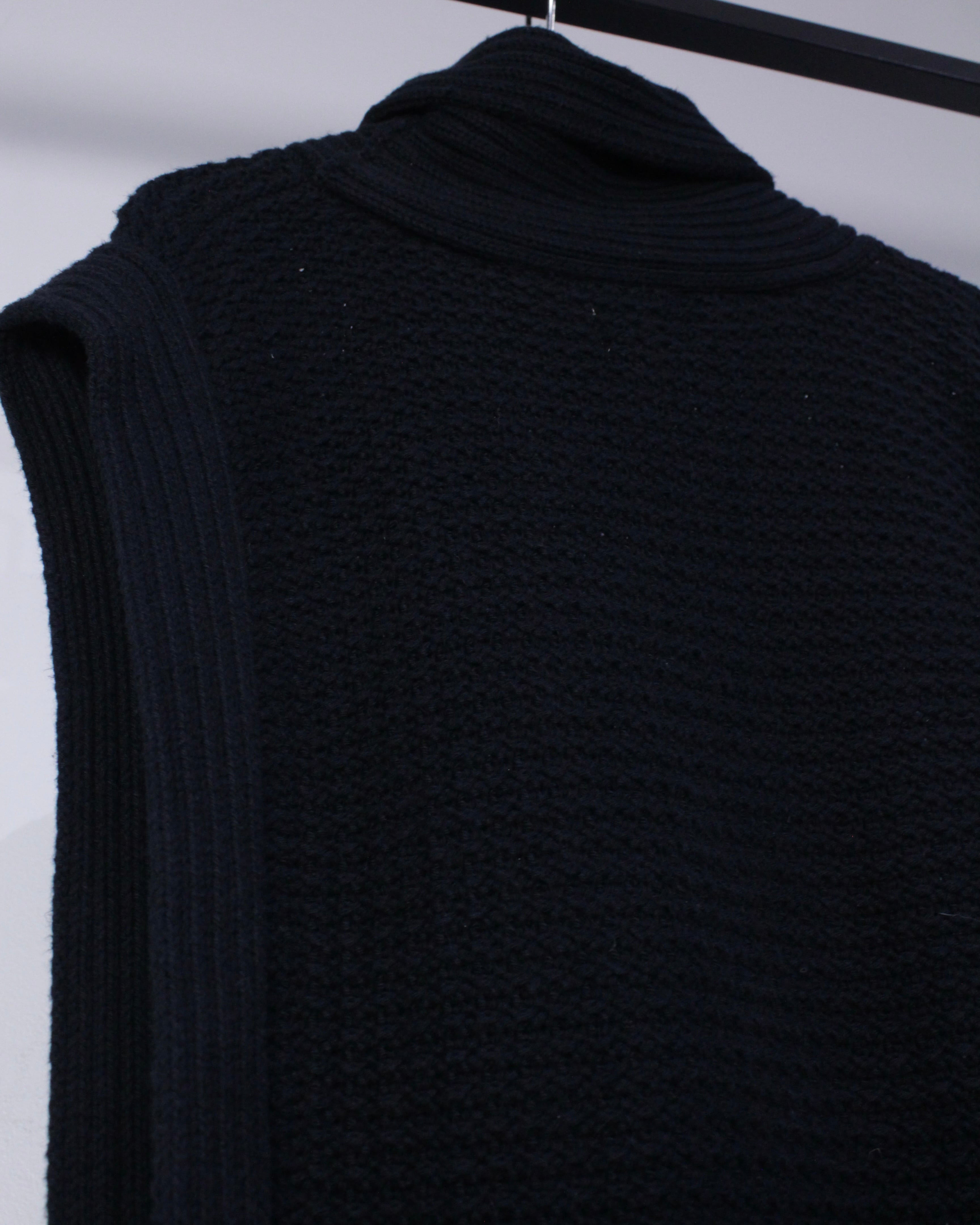 当店らしいモードな雰囲気を纏った、ニットベストのスペシャルな1着です。