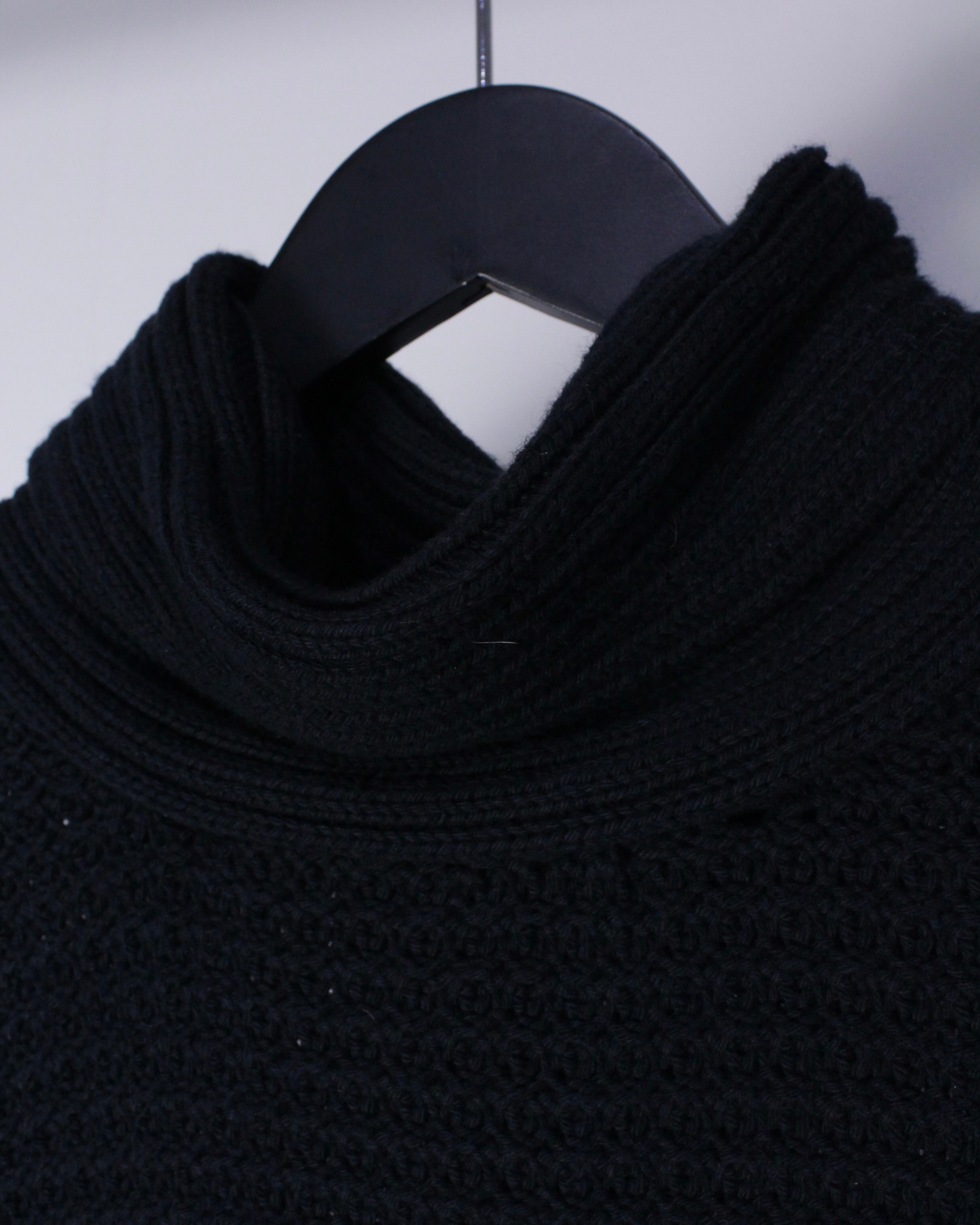 ポンチョ型にすることによってレイヤードの幅をグッと広げることができ、かつ着用時には生地がたなびき、コーディネートにアクセントを加えてくれます。