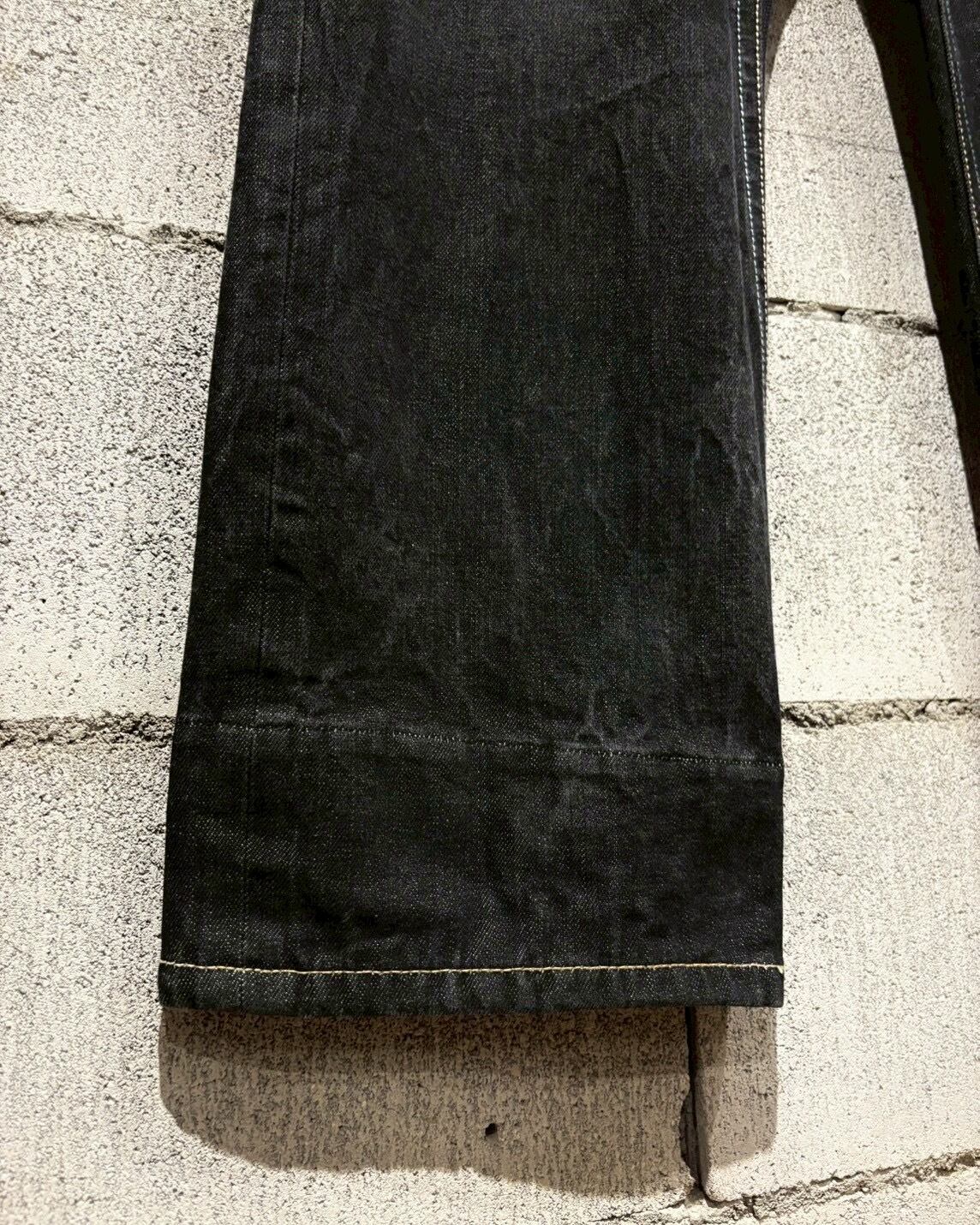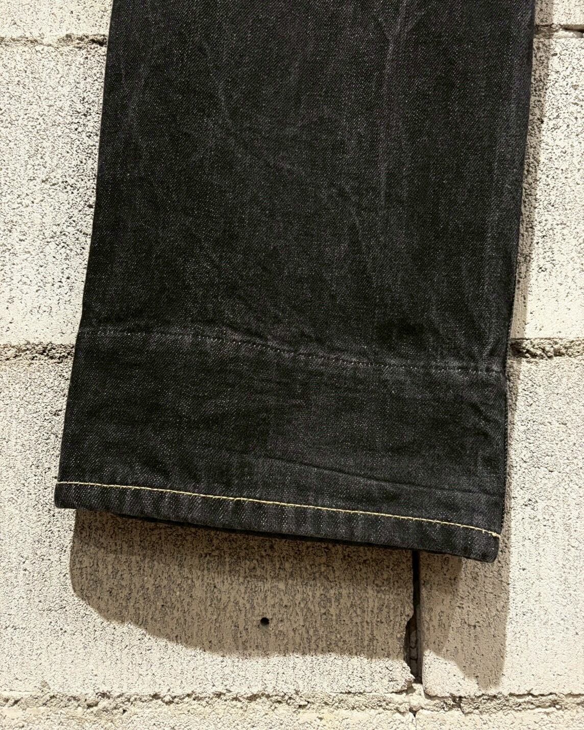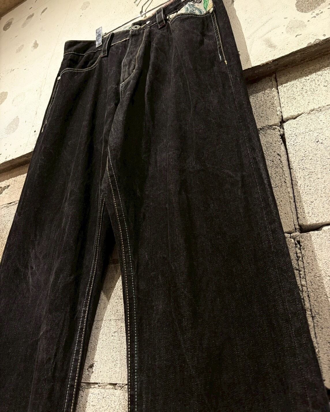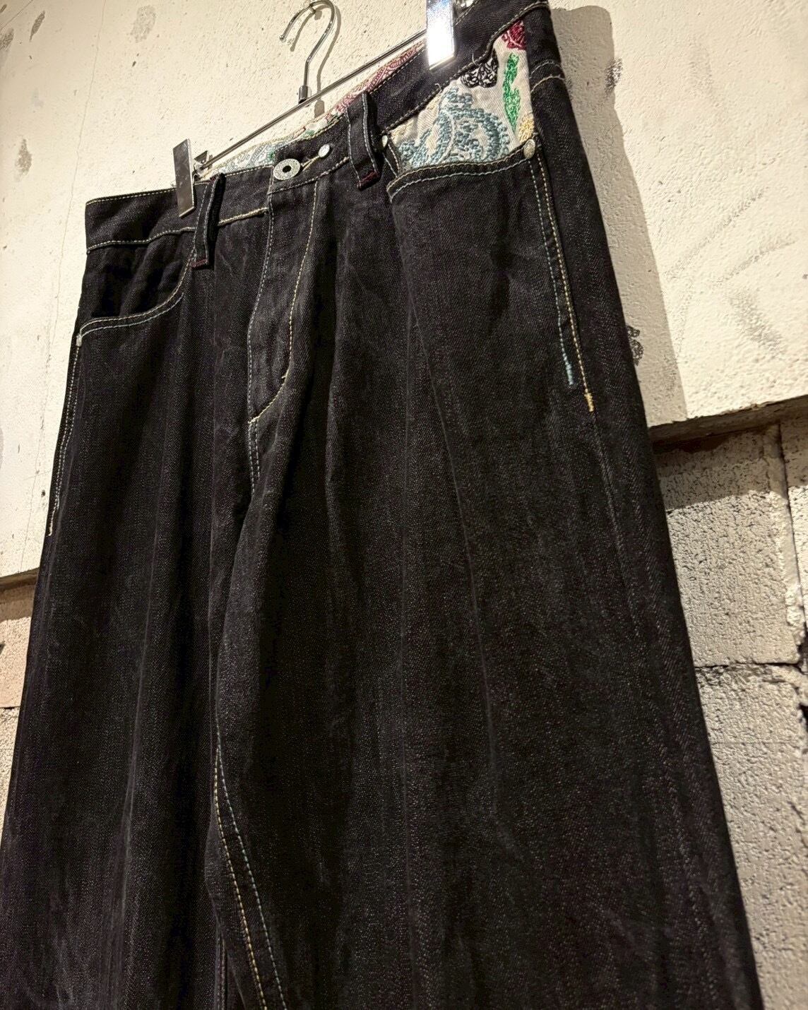 古着業界でも稀少性が高まったブラックデニムのボディに、フロントポケット、バックポケットにホワイトデニムを切り替え、ペイズリー柄の刺繍を刻んだ1着。
