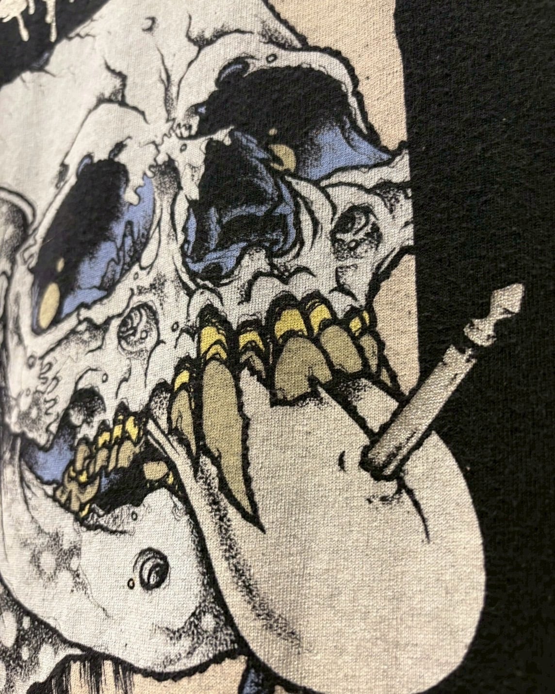 フロントに、MISFITS、エクスプロイテッド、COCOBATなどのメタル、パンク、ハードコアバンドやスケートボードのアートワークを手掛けるイラストレーター"PUSHEAD"が手掛けたスカルのイラスト。パスヘッドが描くスカルはやはりめちゃくちゃイケてますね、