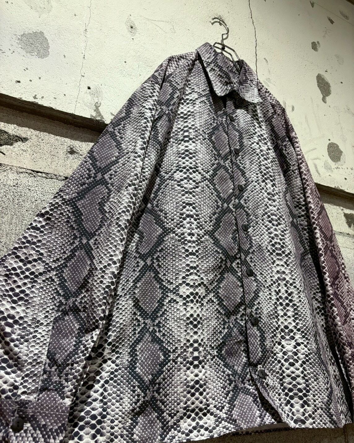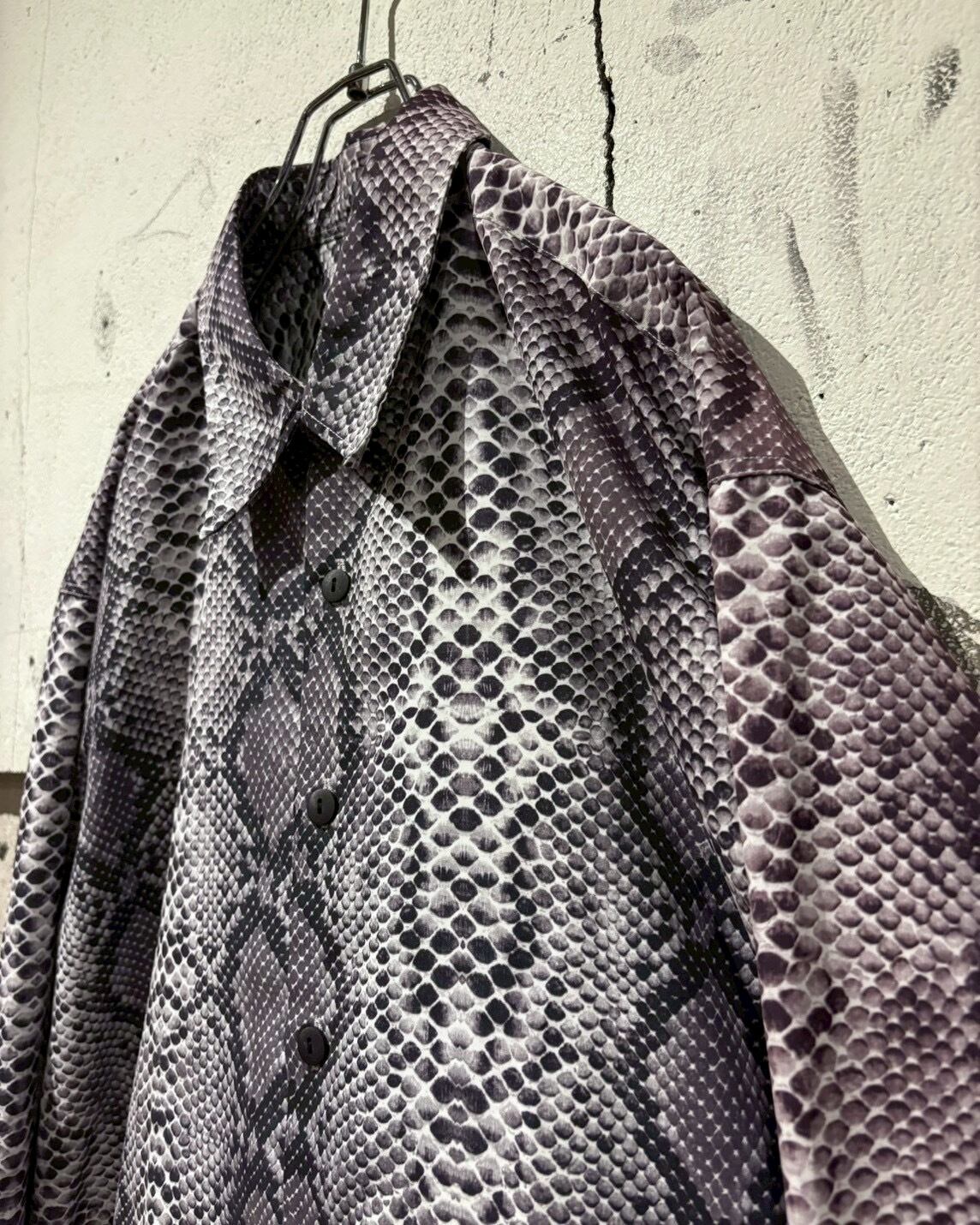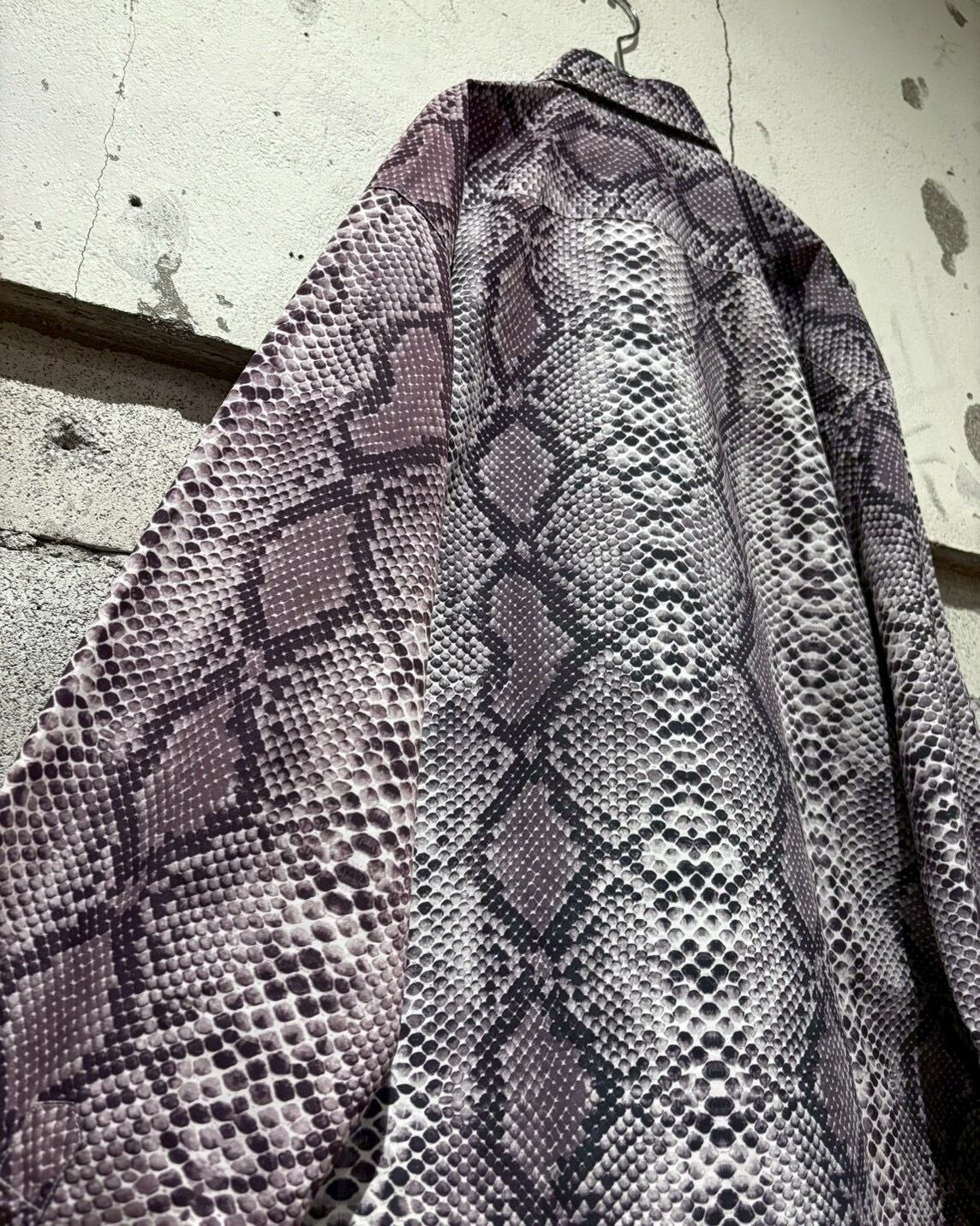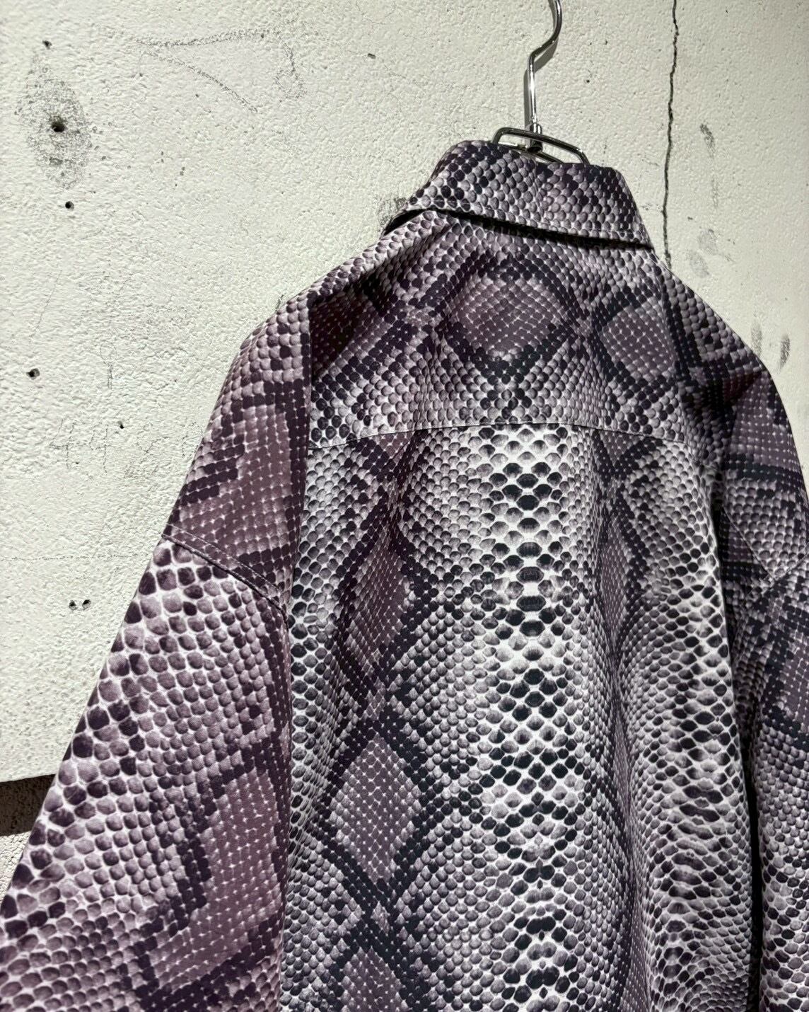 ハリとコシのあるポリのボディに、パイソン柄を乗せた長袖シャツ。