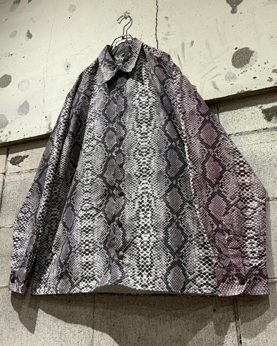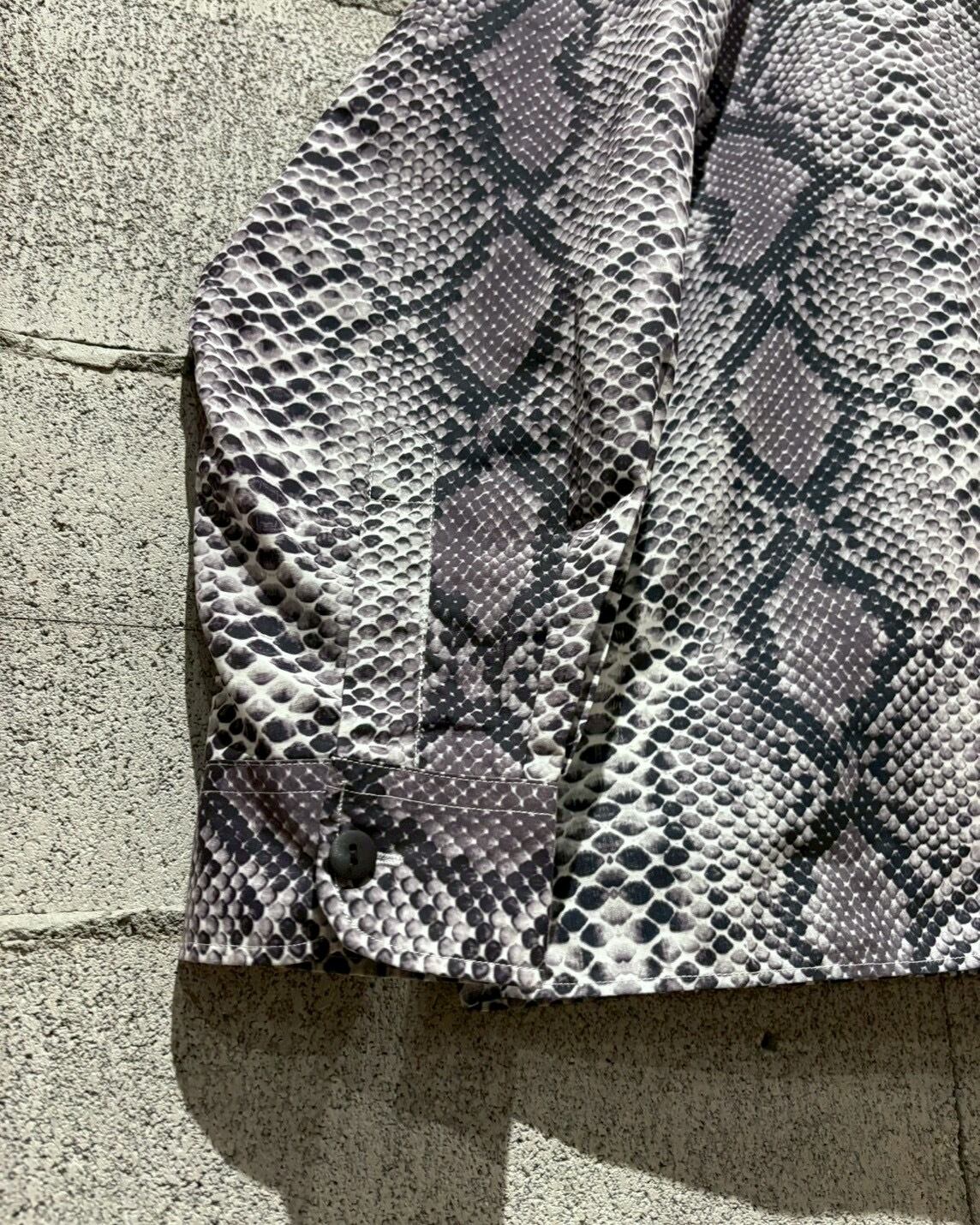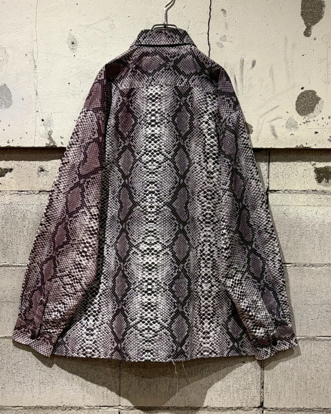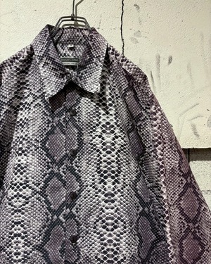 ハリとコシのあるポリのボディに、パイソン柄を乗せた長袖シャツ。