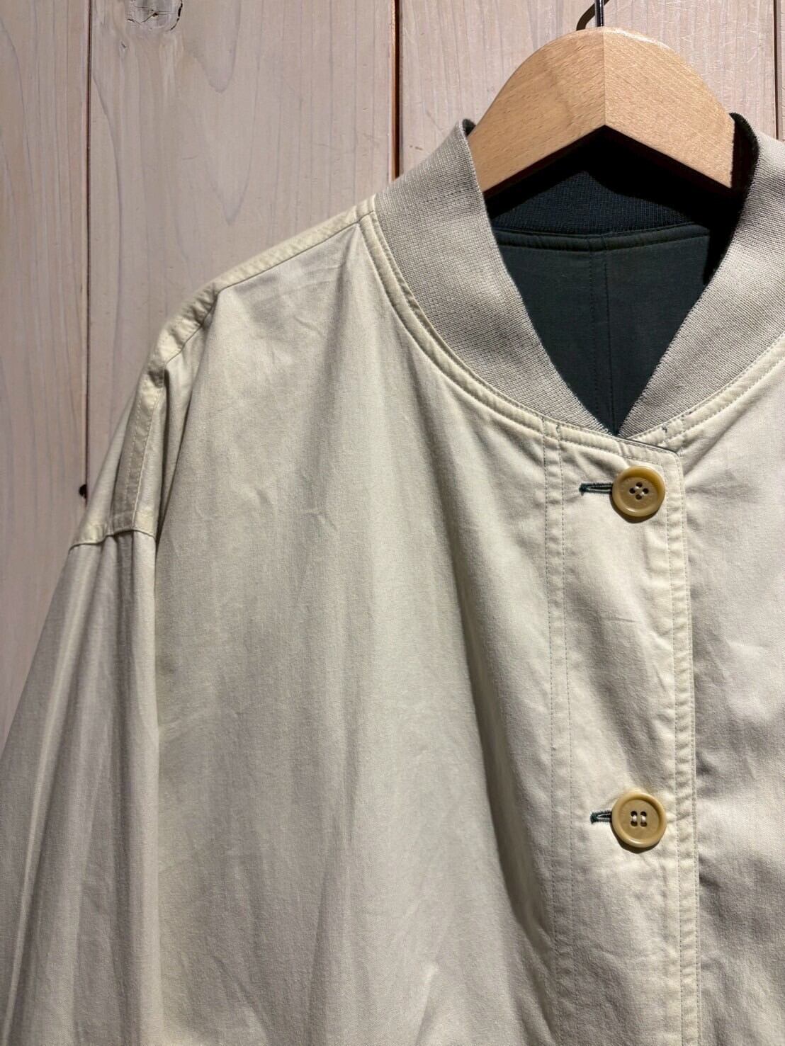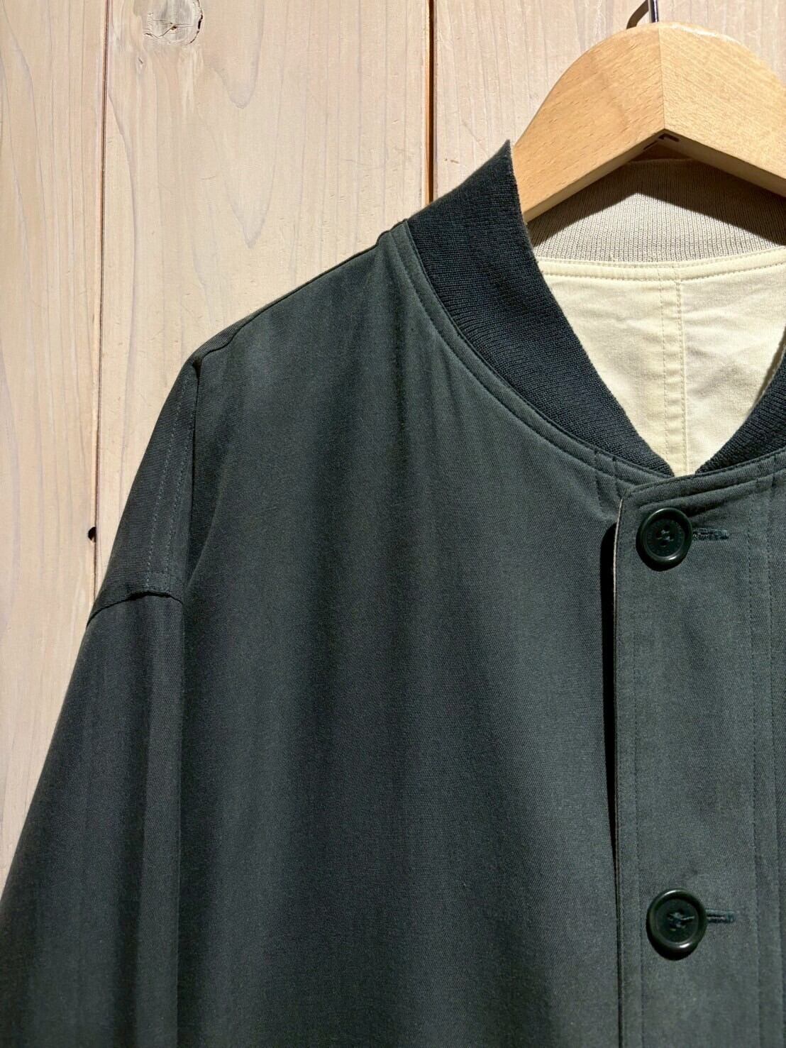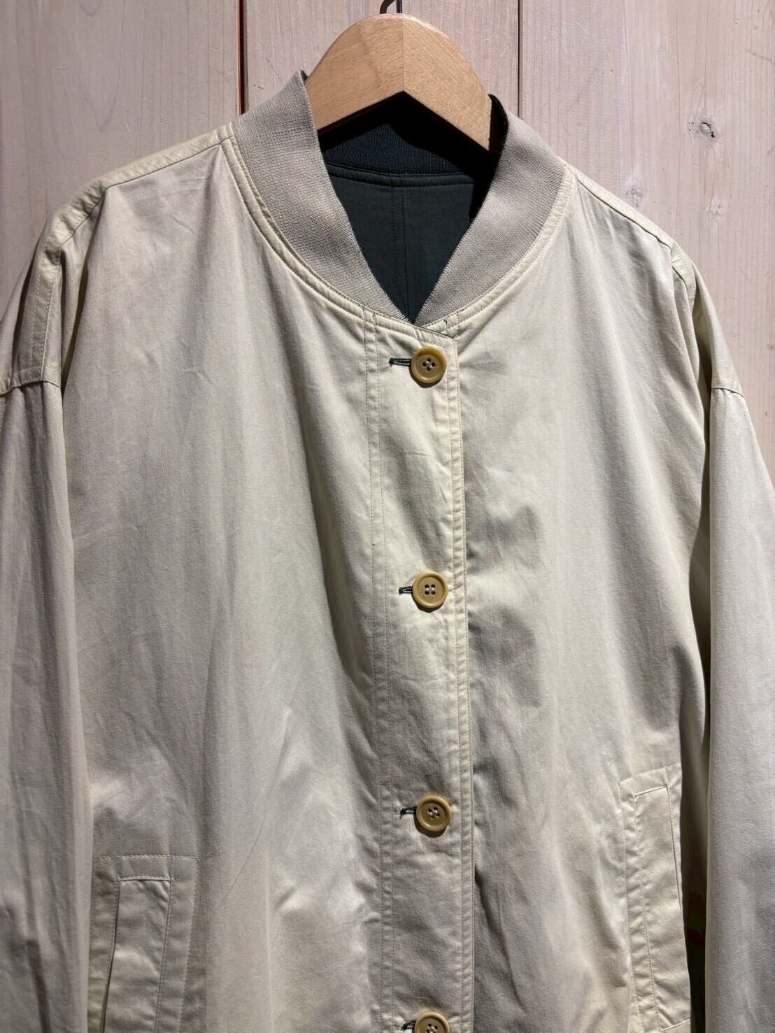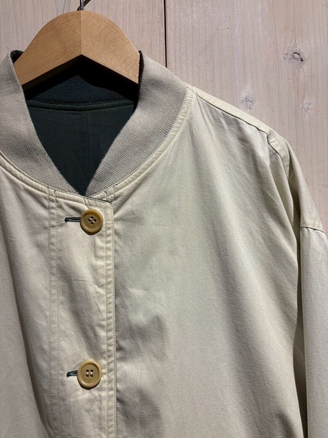 上質なテキスタイルを用いて、青緑、アイボリーの2色でリバーシブルに仕上げたブルゾンジャケット。