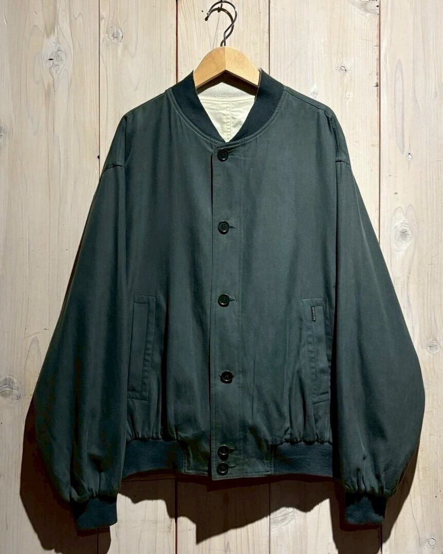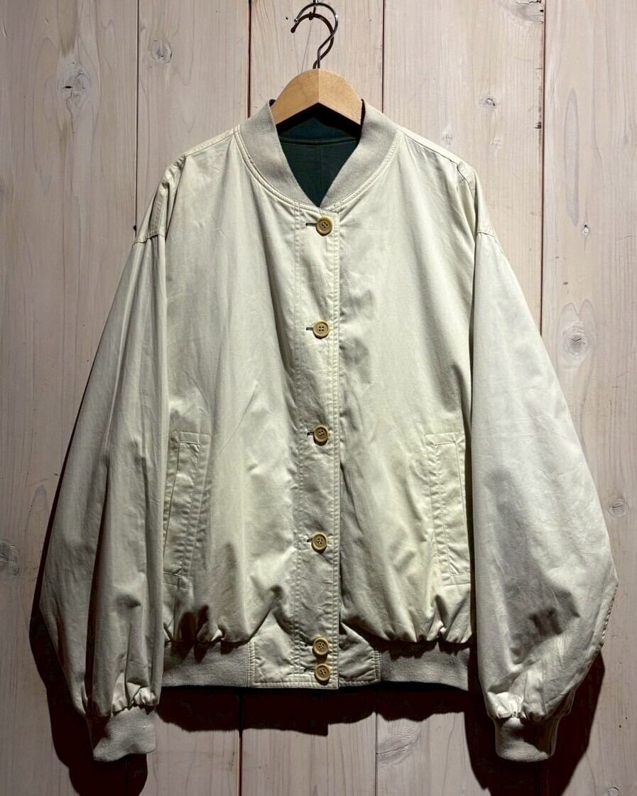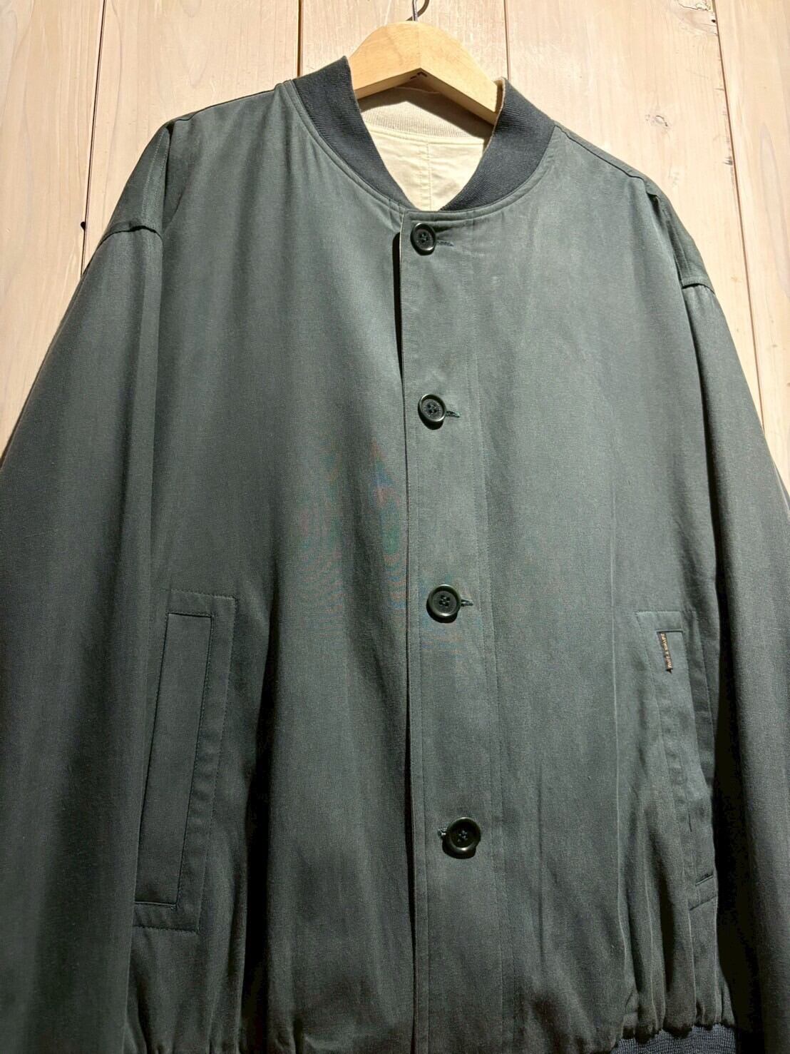 上質なテキスタイルを用いて、青緑、アイボリーの2色でリバーシブルに仕上げたブルゾンジャケット。
