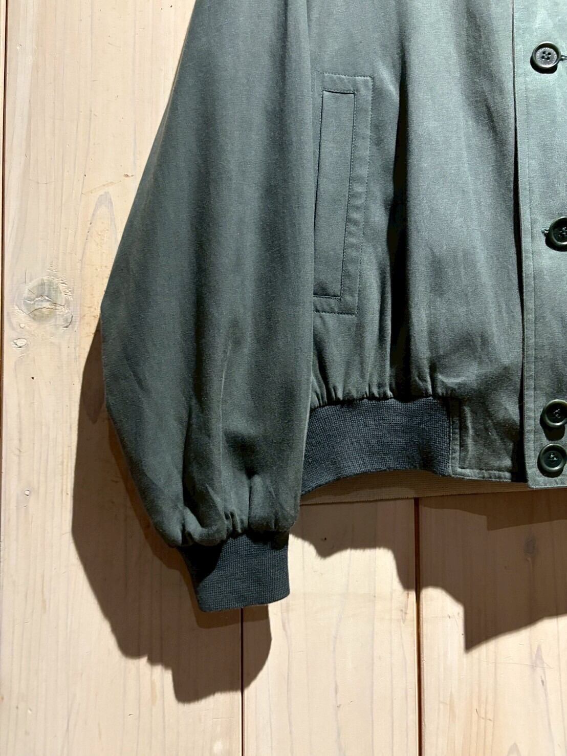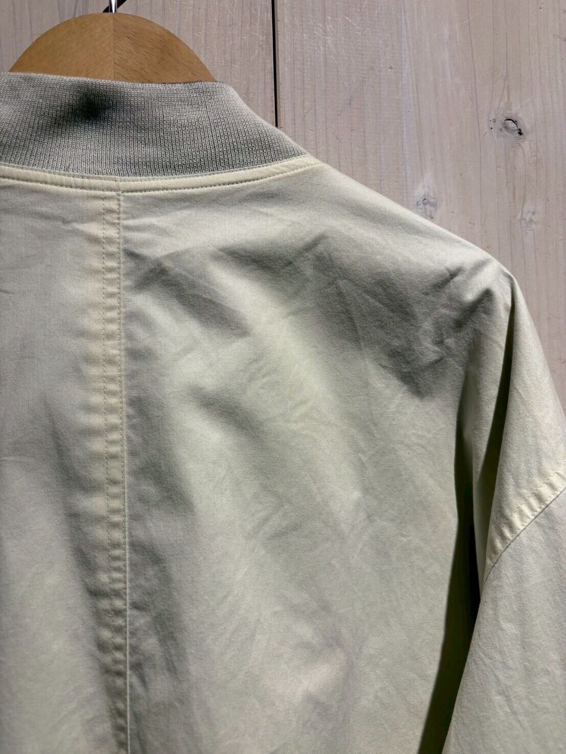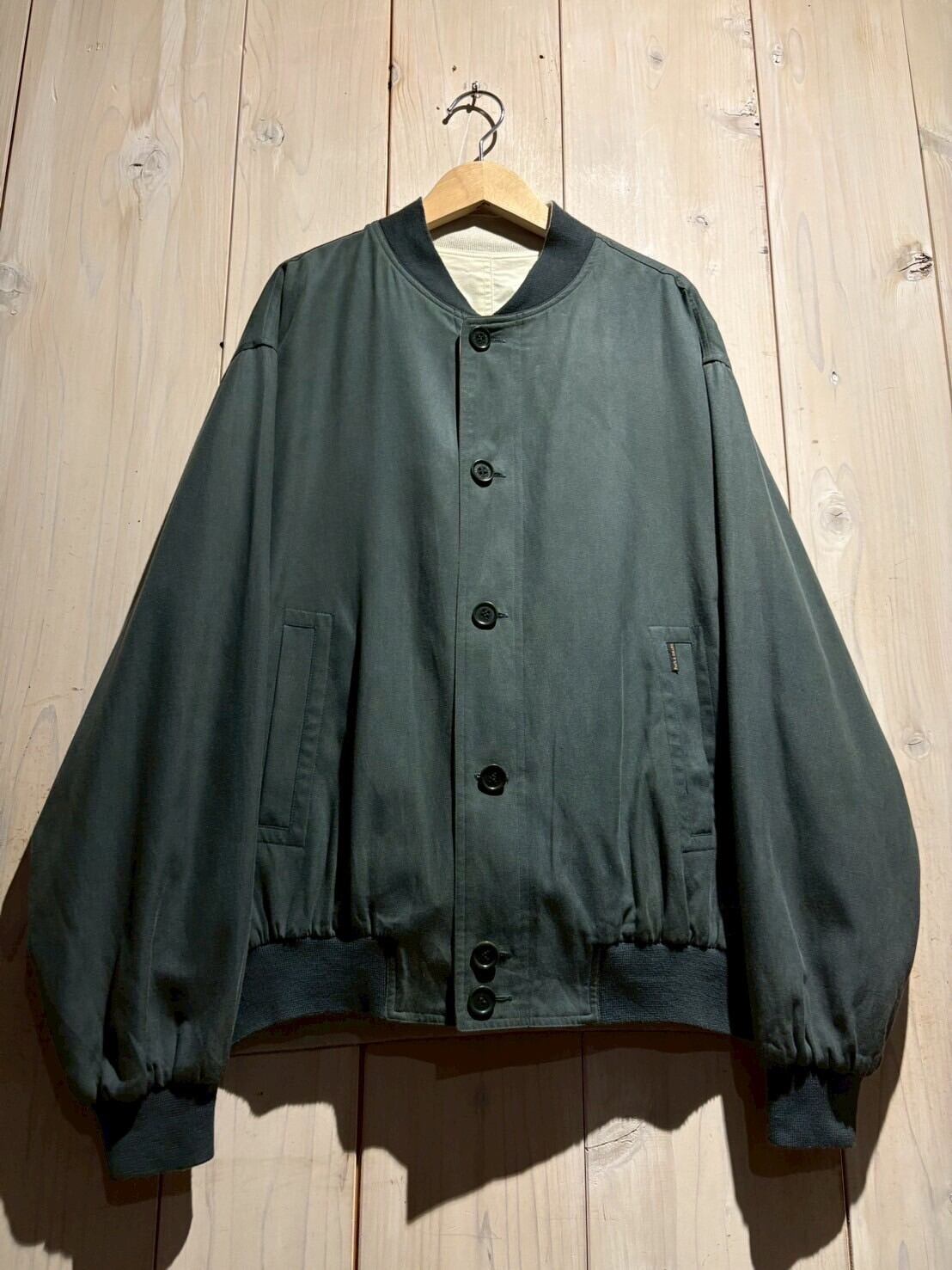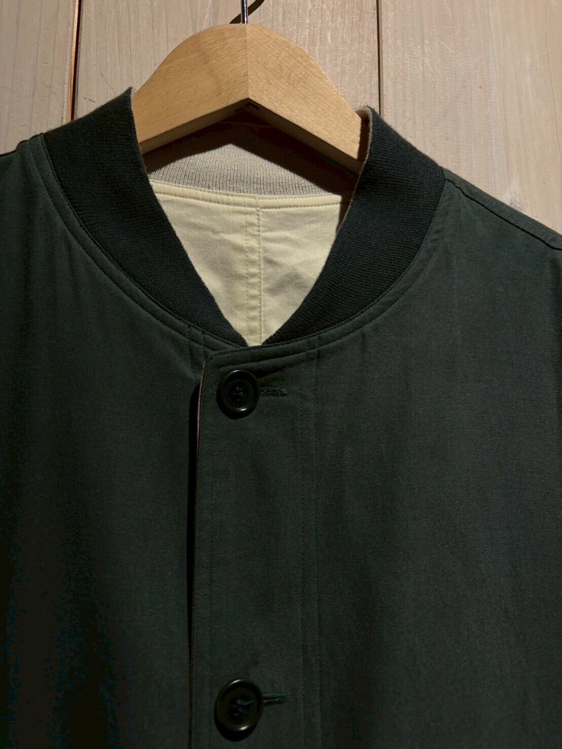 上質なテキスタイルを用いて、青緑、アイボリーの2色でリバーシブルに仕上げたブルゾンジャケット。