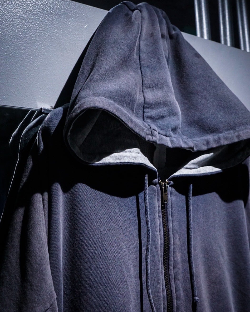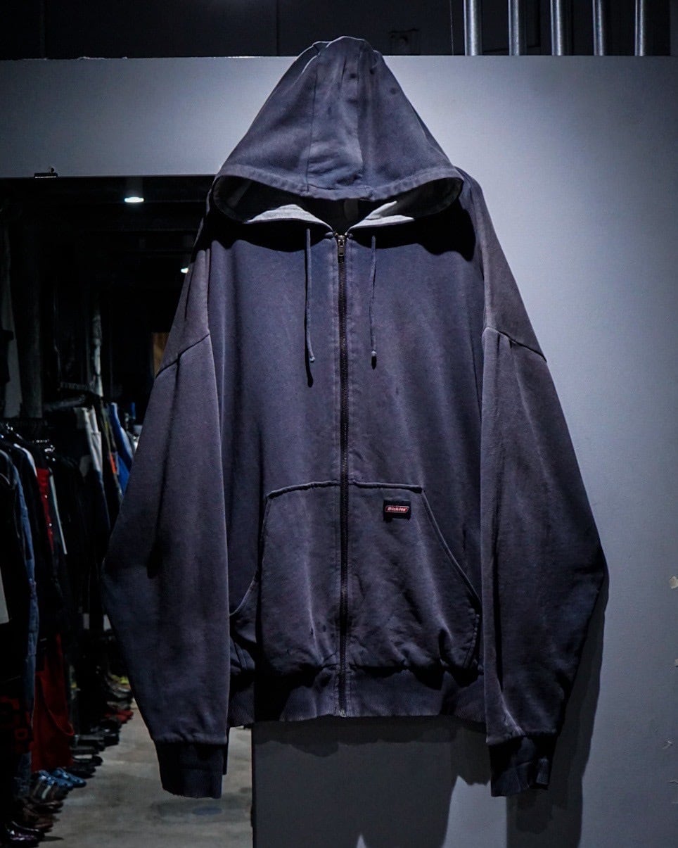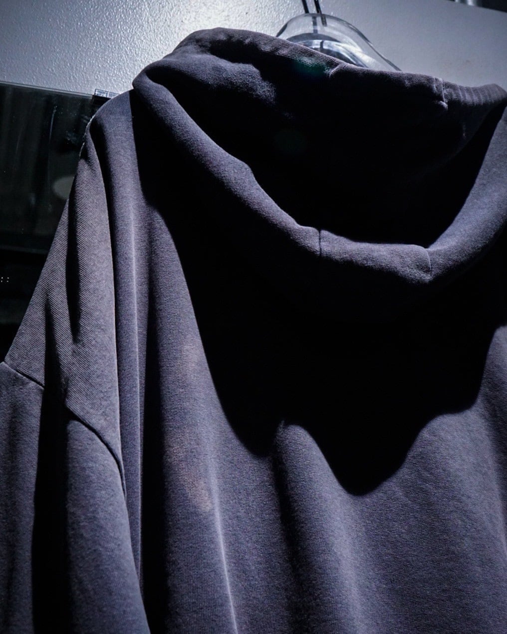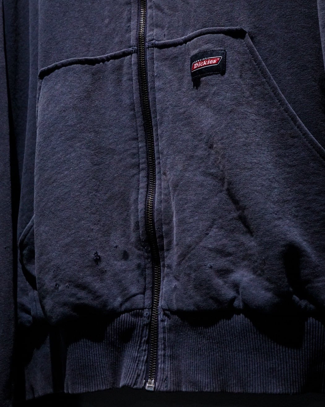 フェード感の素晴らしいネイビーのスウェット地のボディに、ボロ、エイジングの渋さが載せられたジップアップフーディ。