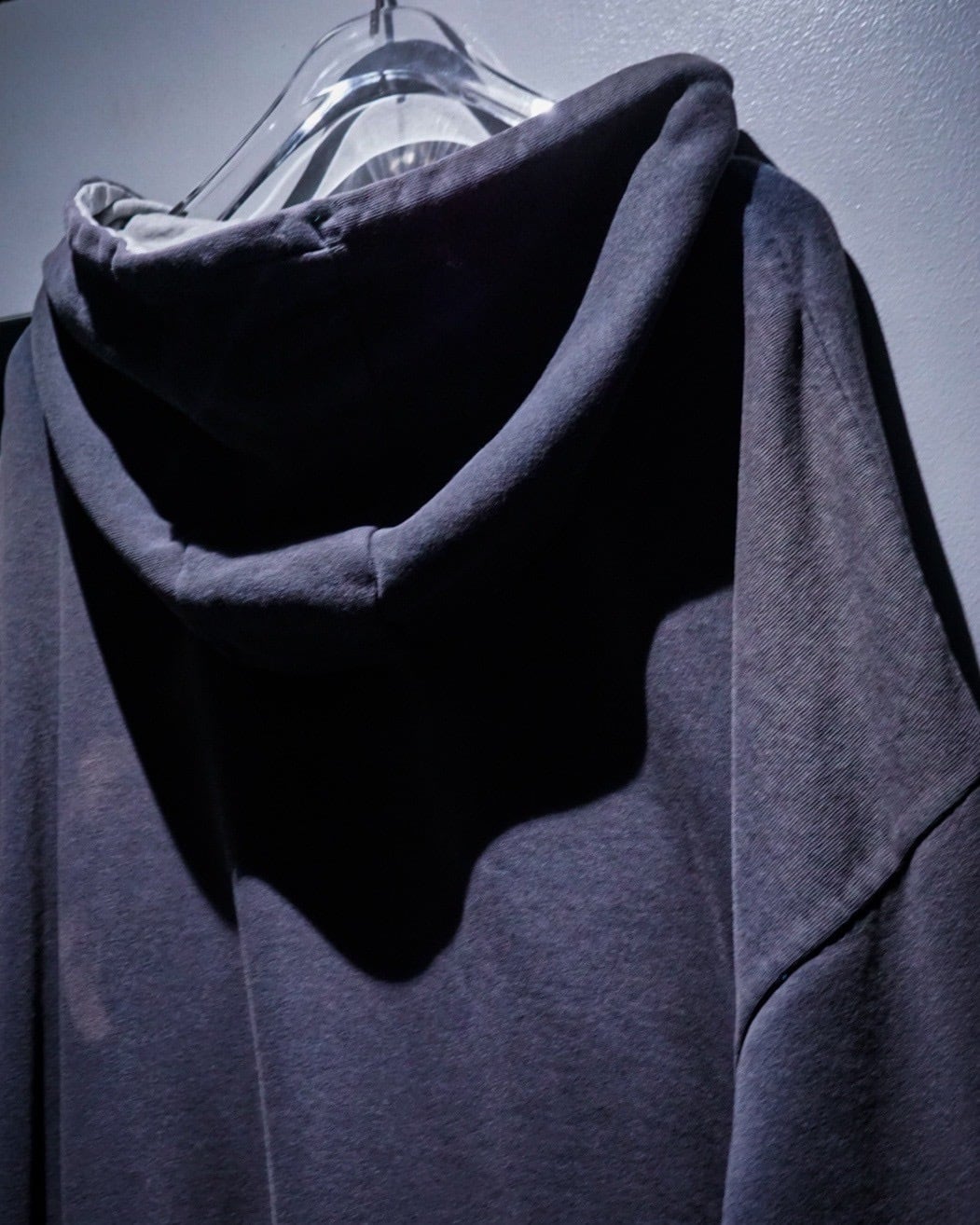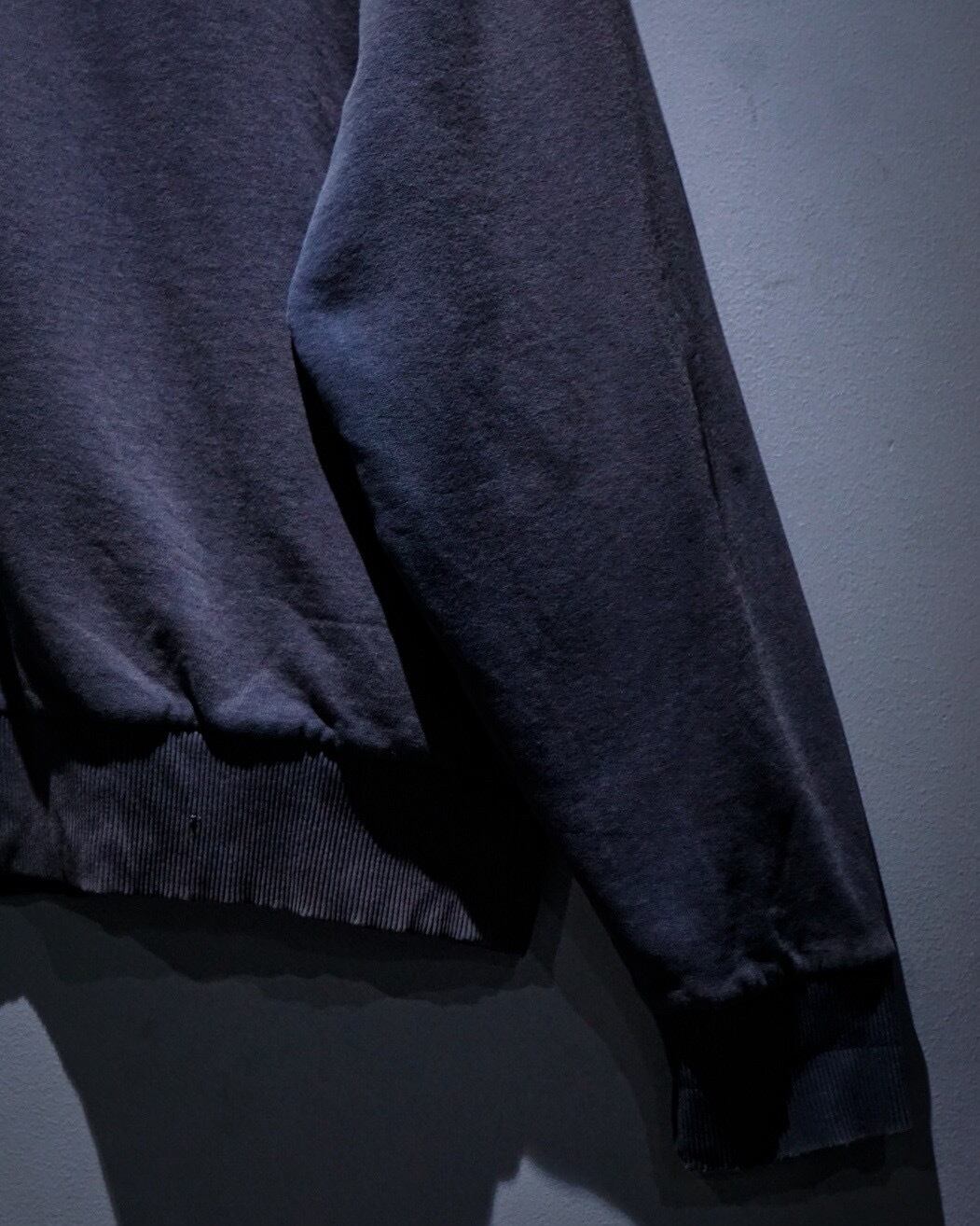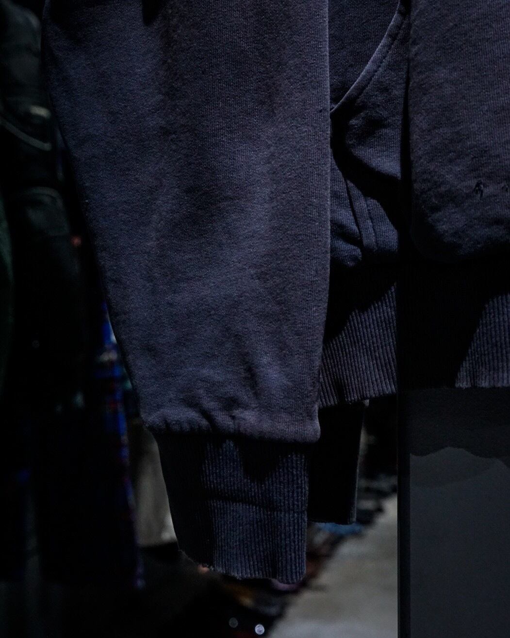 ネイビーのボディがフェードしたカラーリングに加え、ボロ具合が本当に格好良い…唯一無二の抜群の存在感を放つデザインに仕上げられたスペシャルな1着。スウェット生地なのでクタッとしたヤレ感も◎