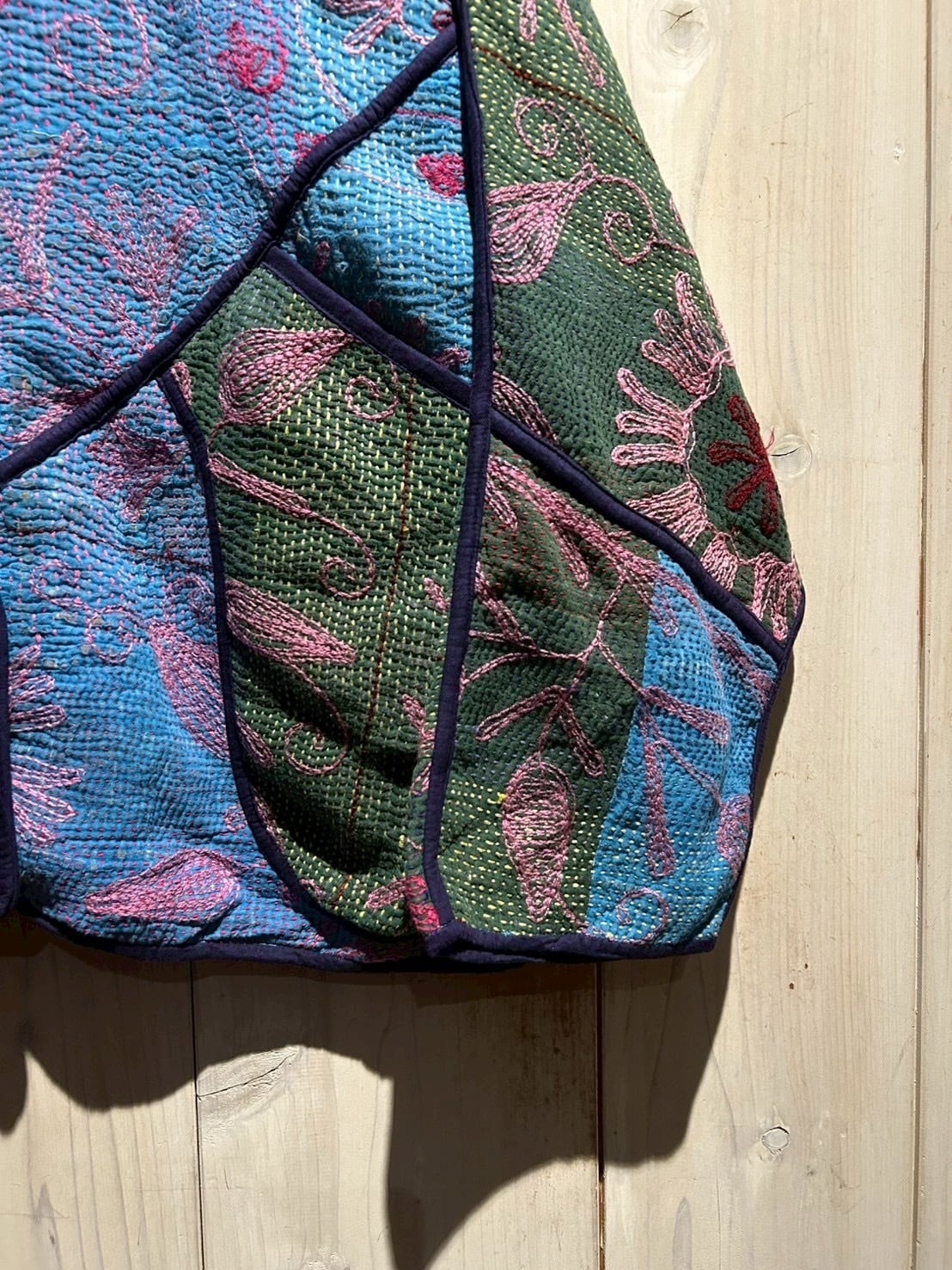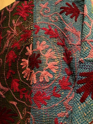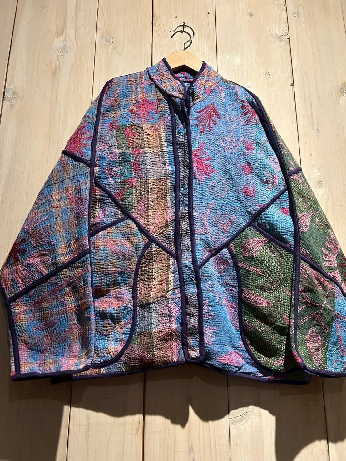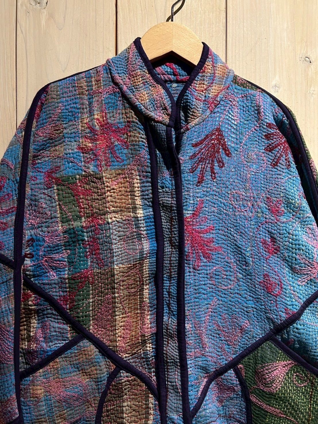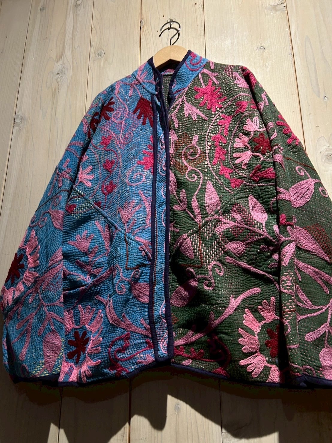 このブランドの最大の特徴でもある、インドのアンティークテキスタイルを用いたボディに、ボタニカルな刺繍を刻んだジャケット。