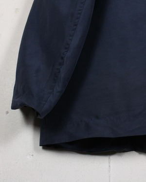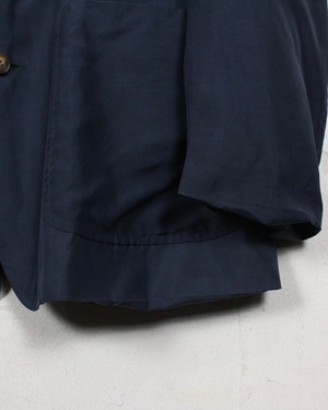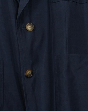 気品漂わせるネイビーのボディに、べっ甲風のボタンがデザインのアクセントに。上質なシルク特有の光沢と相待って高級感をムンムンに漂わせています。