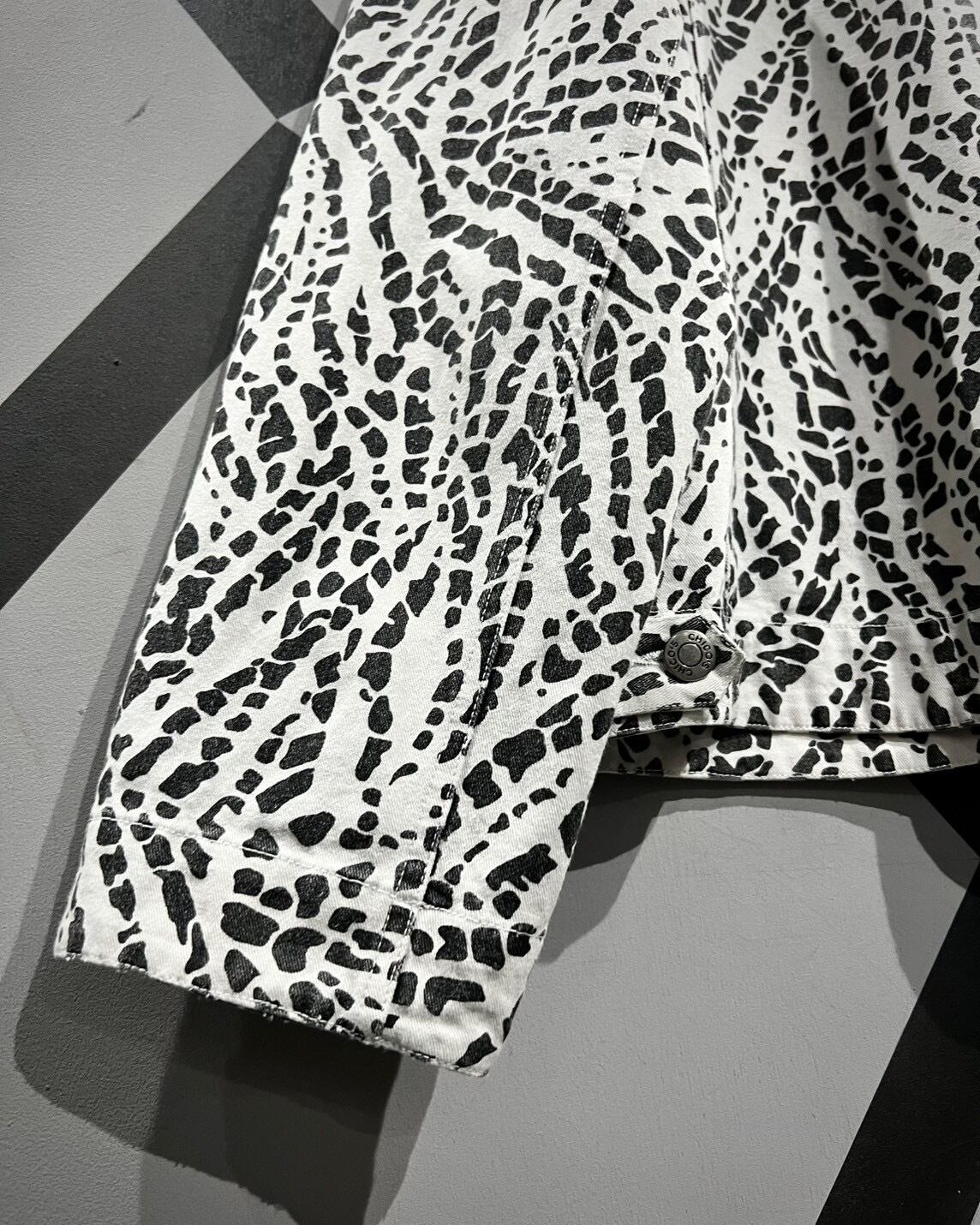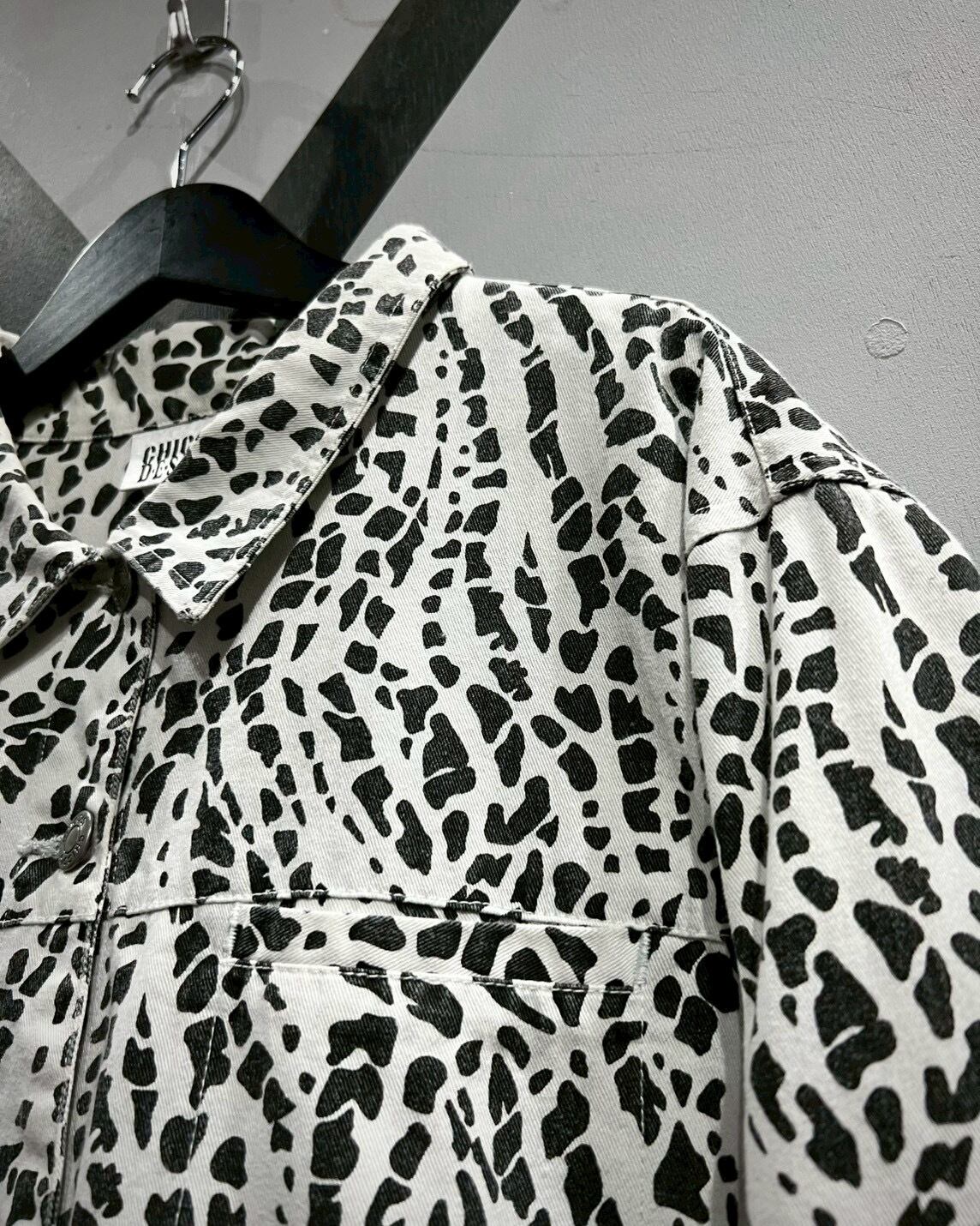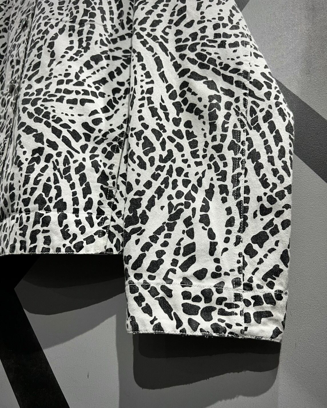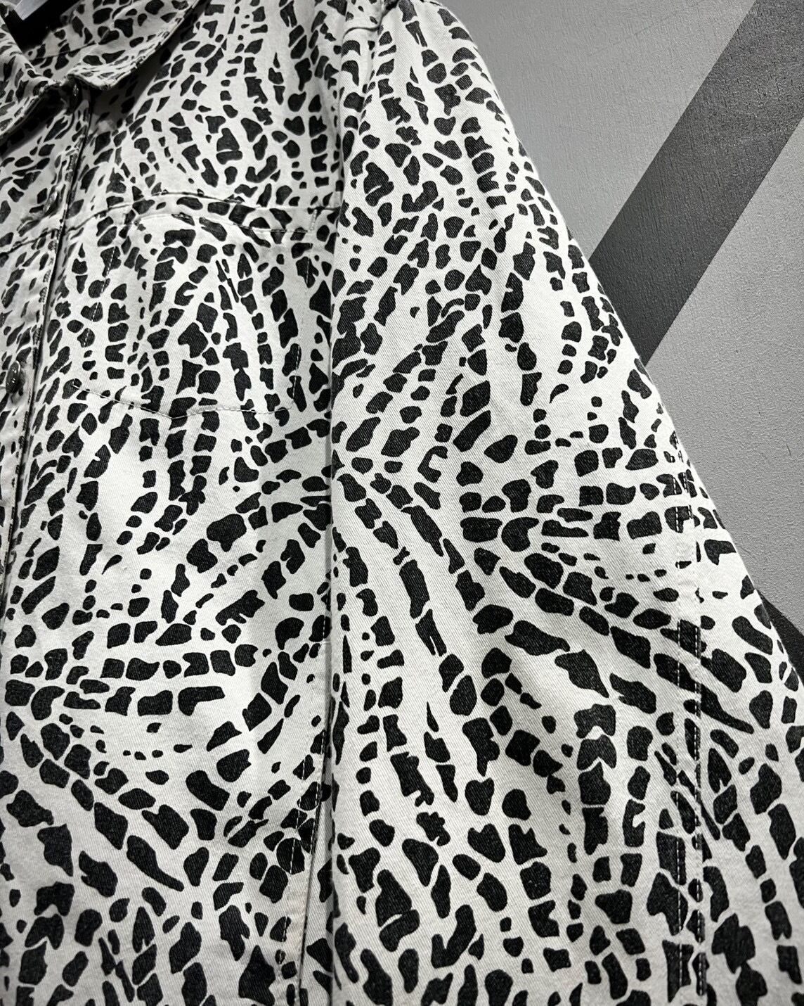 柔らかくコシのあるインド綿を用いたボディに、モノトーンのアート柄を載せたトラッカージャケット。