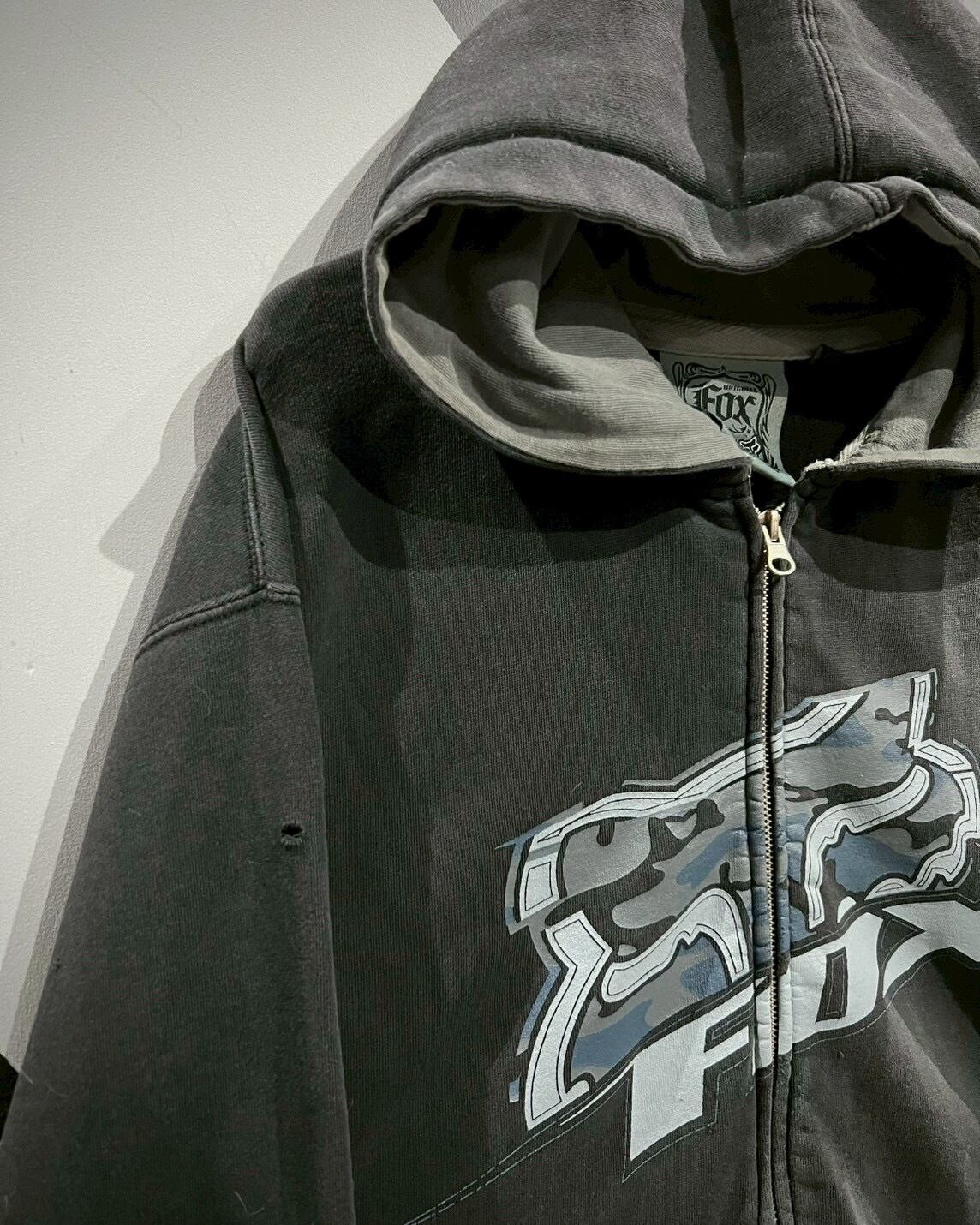 ファッション業界でも注目されている"FOX RACING"のオフィシャルモノのジップアップフー。古着でしか出会えない、スペシャルな1着です。