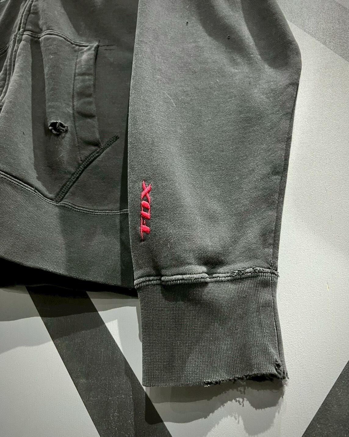 ロゴのFoxはカモフラ柄、左袖口付近にはブランドネームの刺繍が刻まれていたりと、ブランドのモノ作りの細やかさが伝わってきます。ボロ具合も絶妙ですね、、、