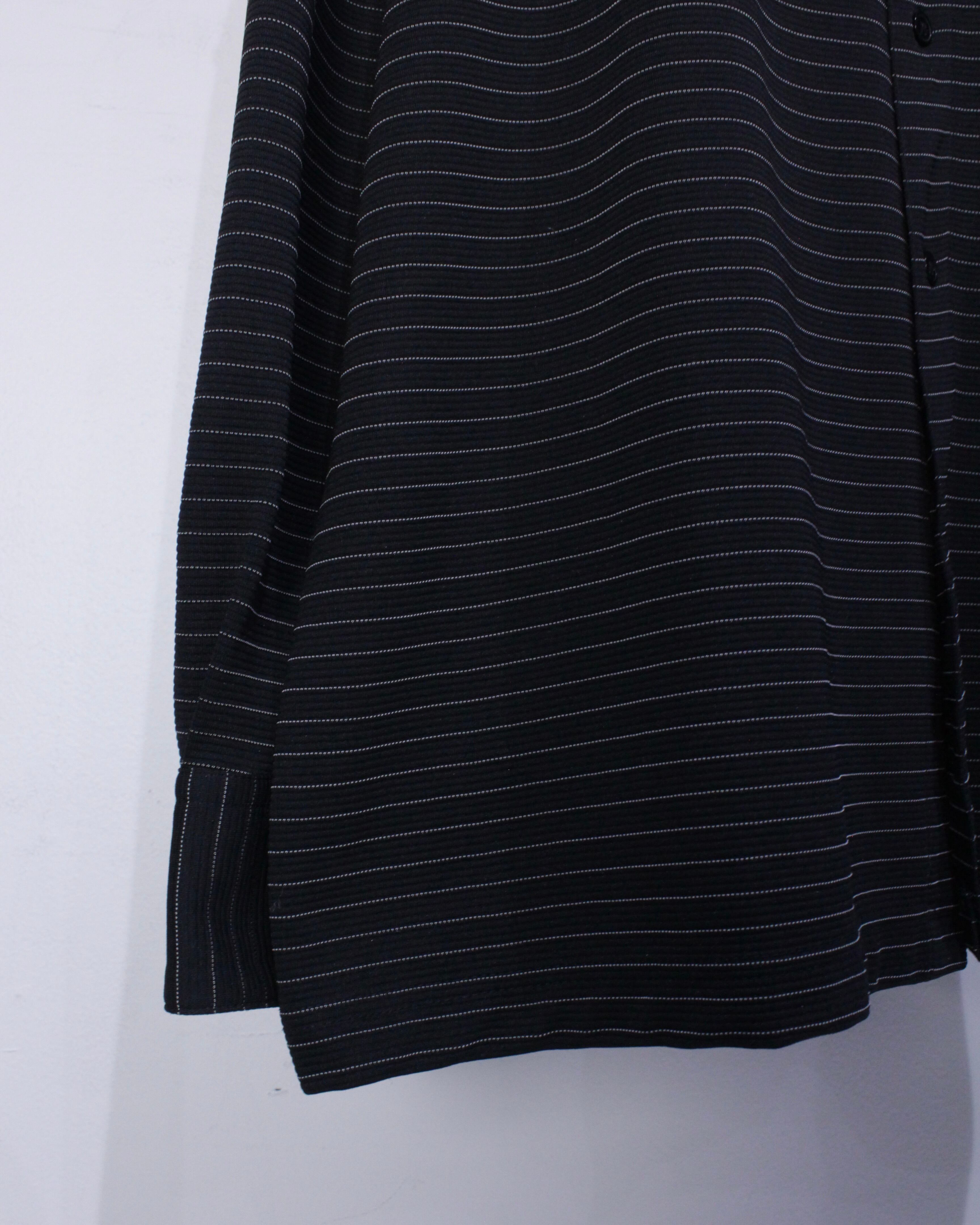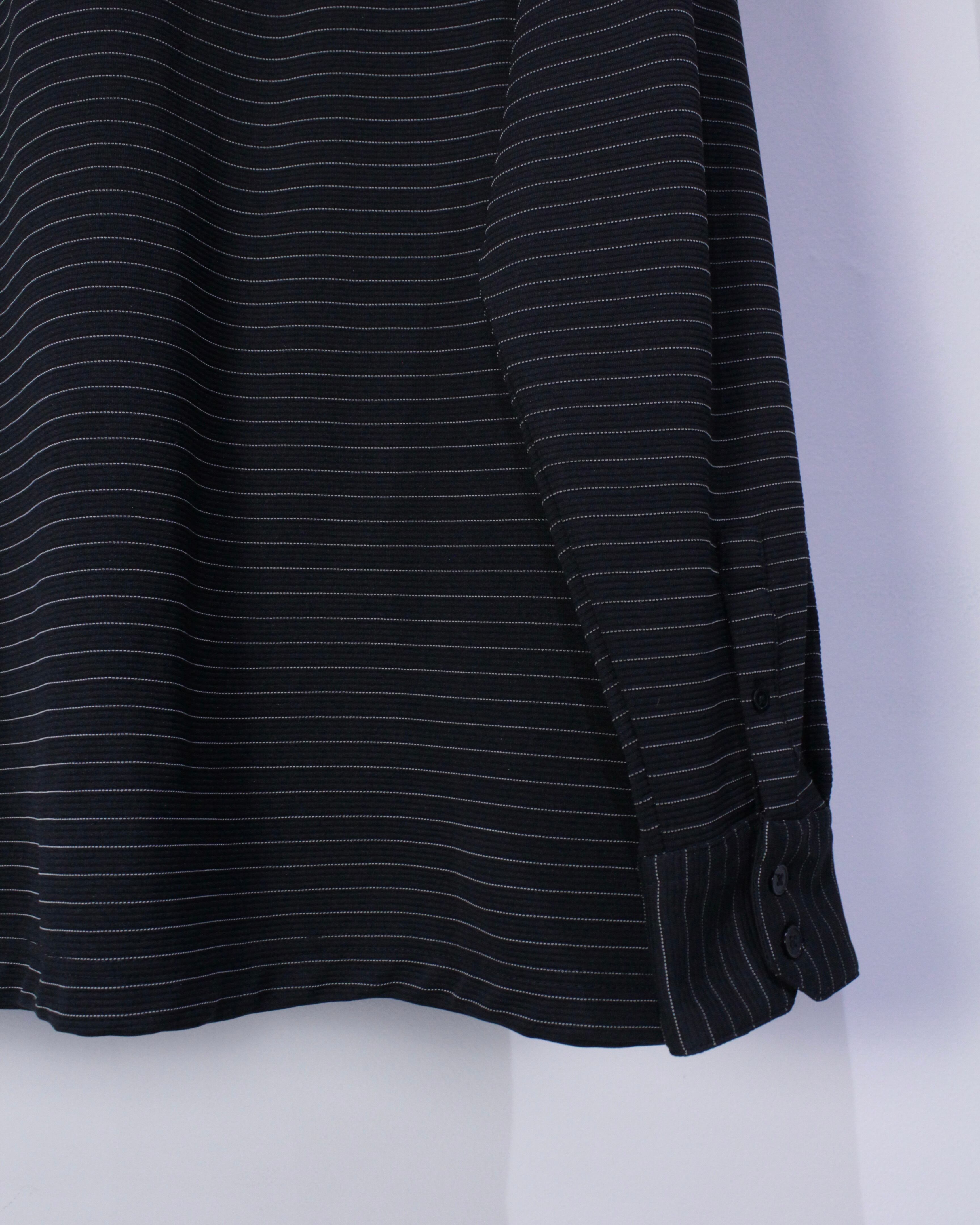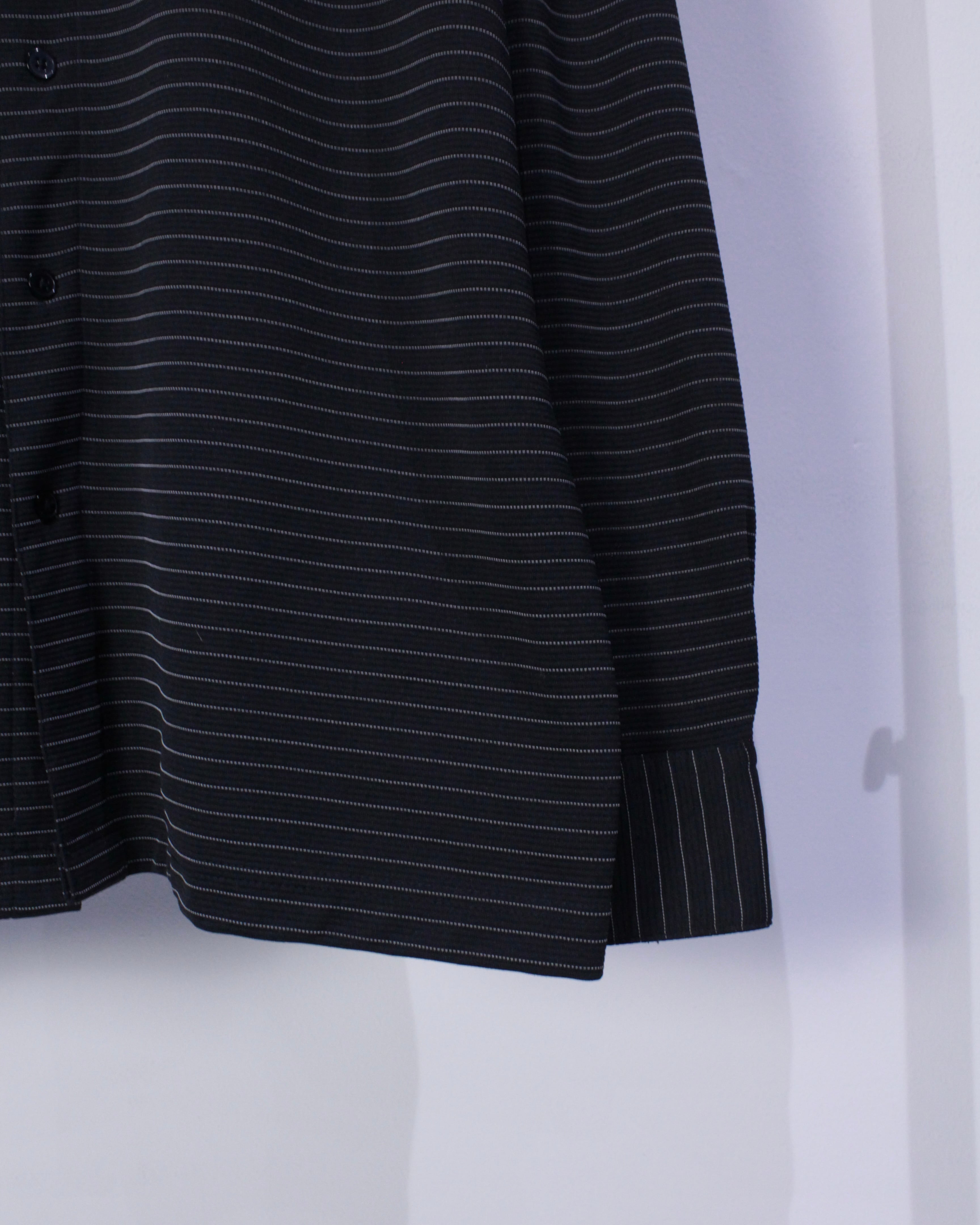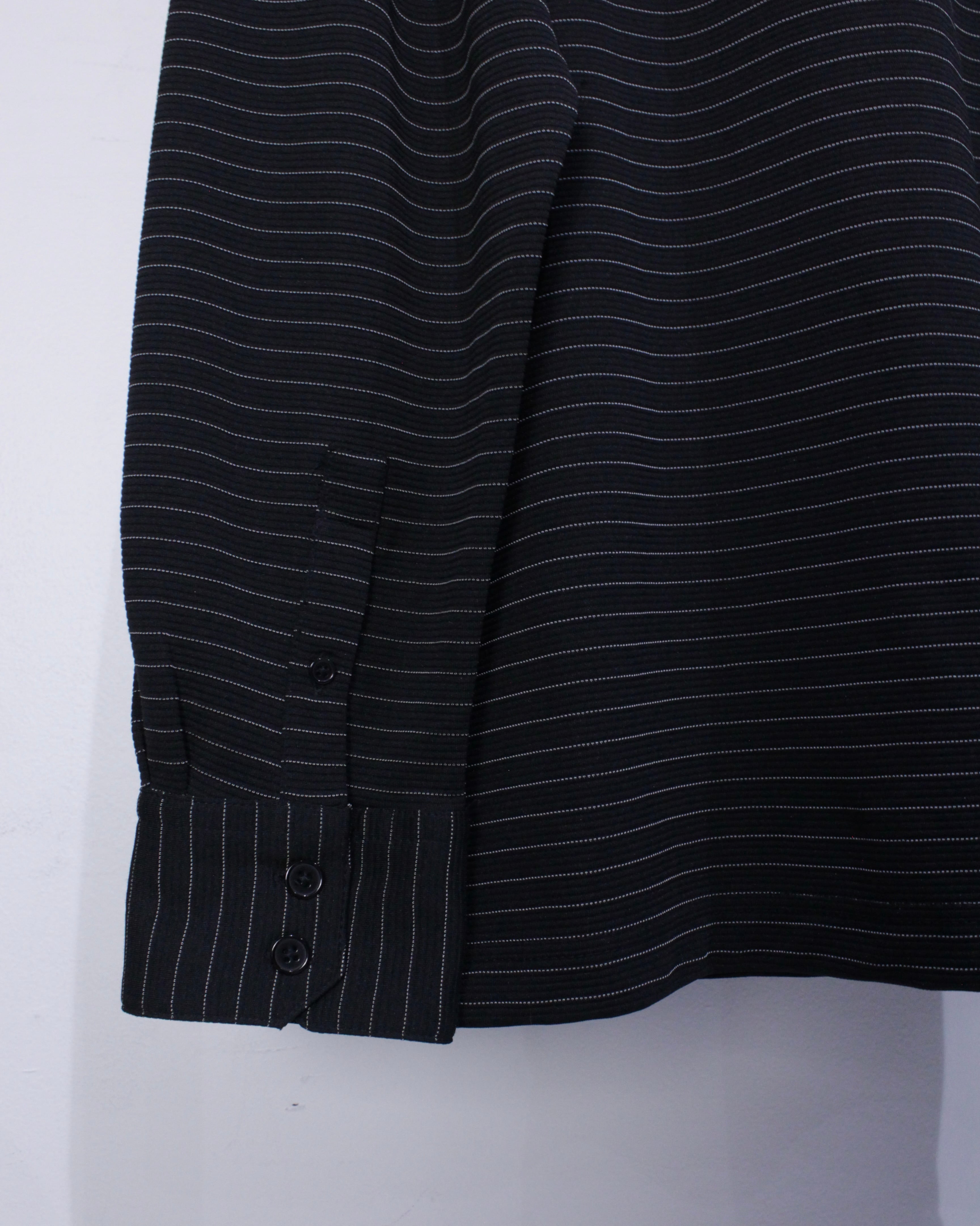 サラリとドライなポリレーヨンの素材を用いたブラックのボディに、ボーダーのデザインを施した長袖シャツ。