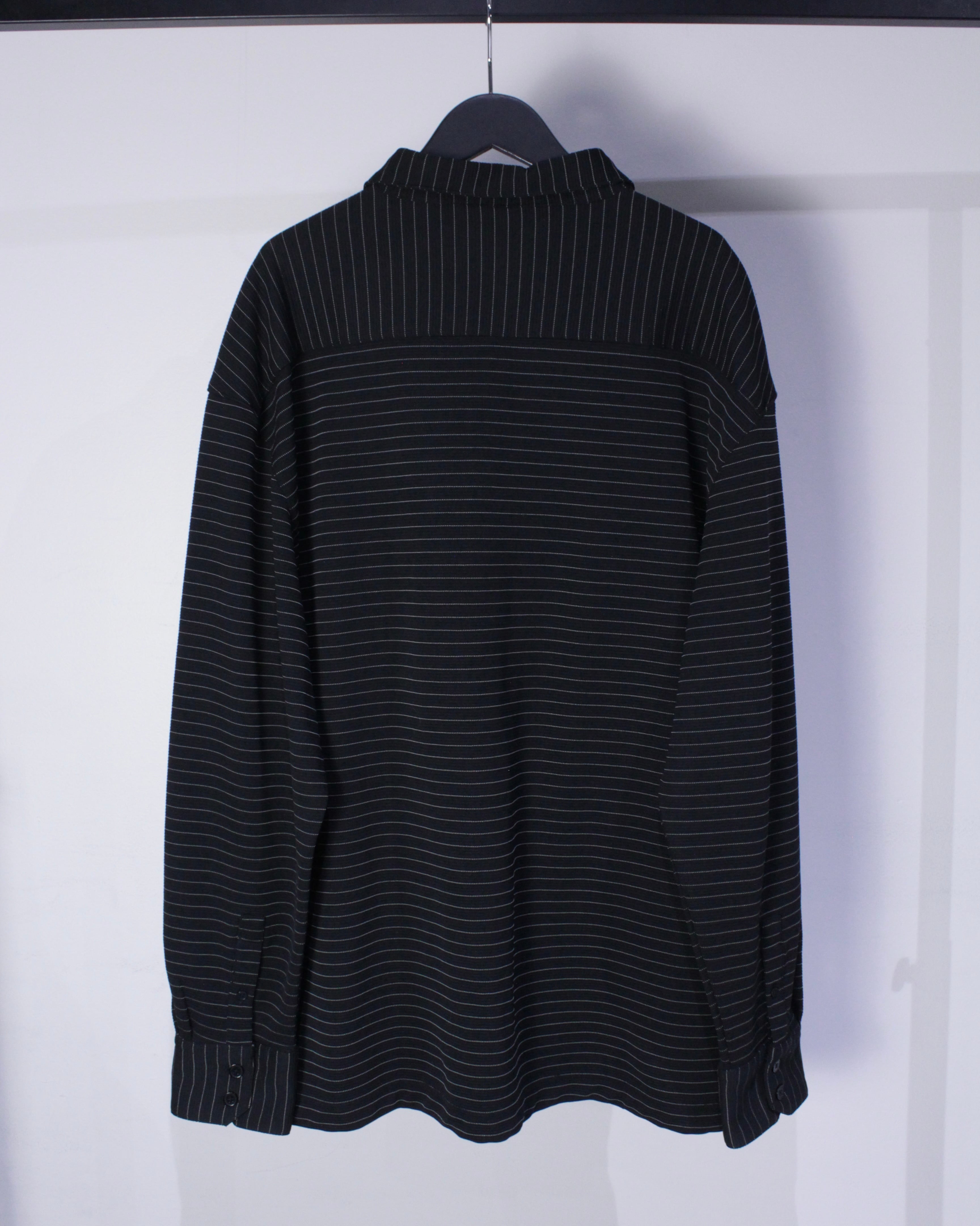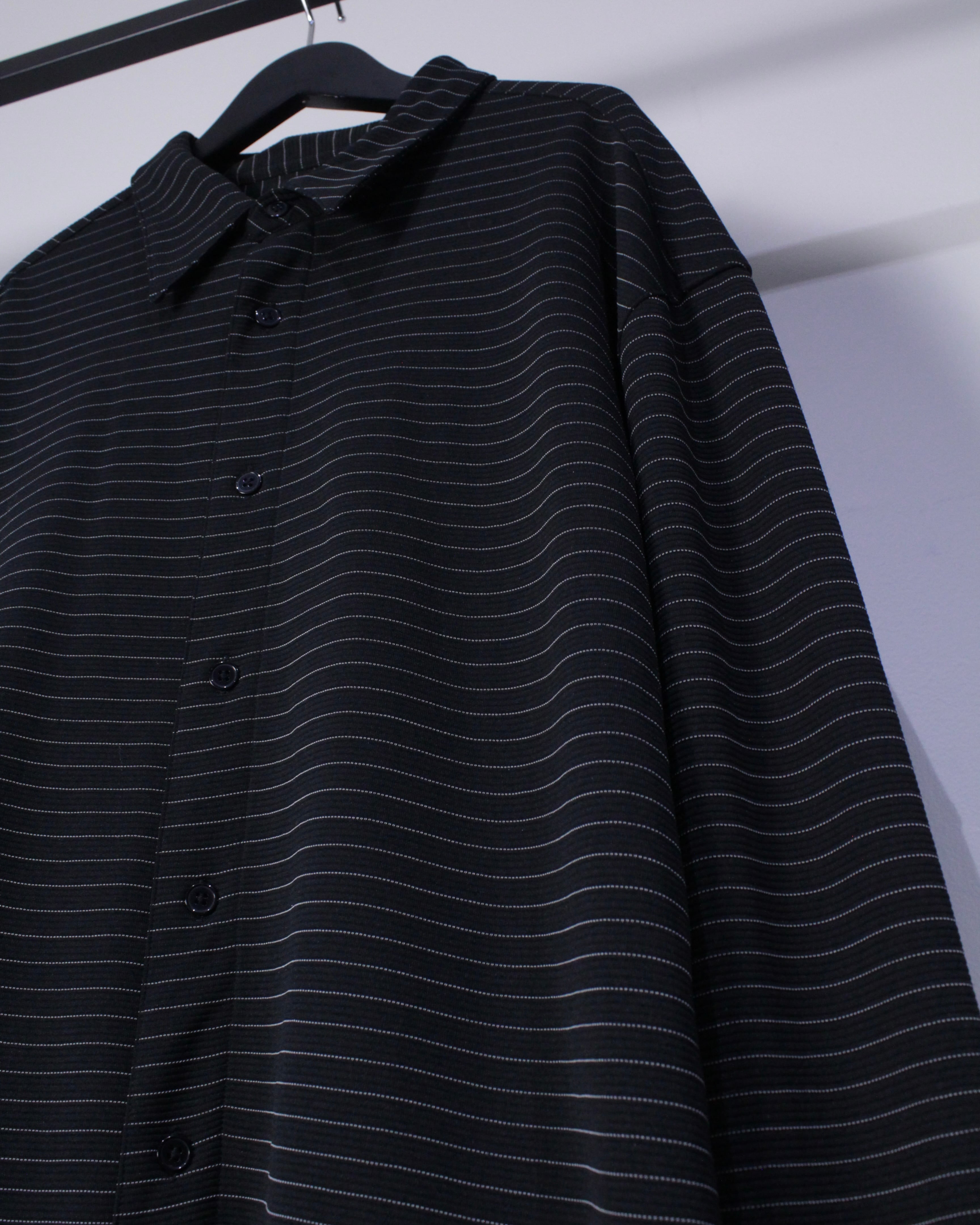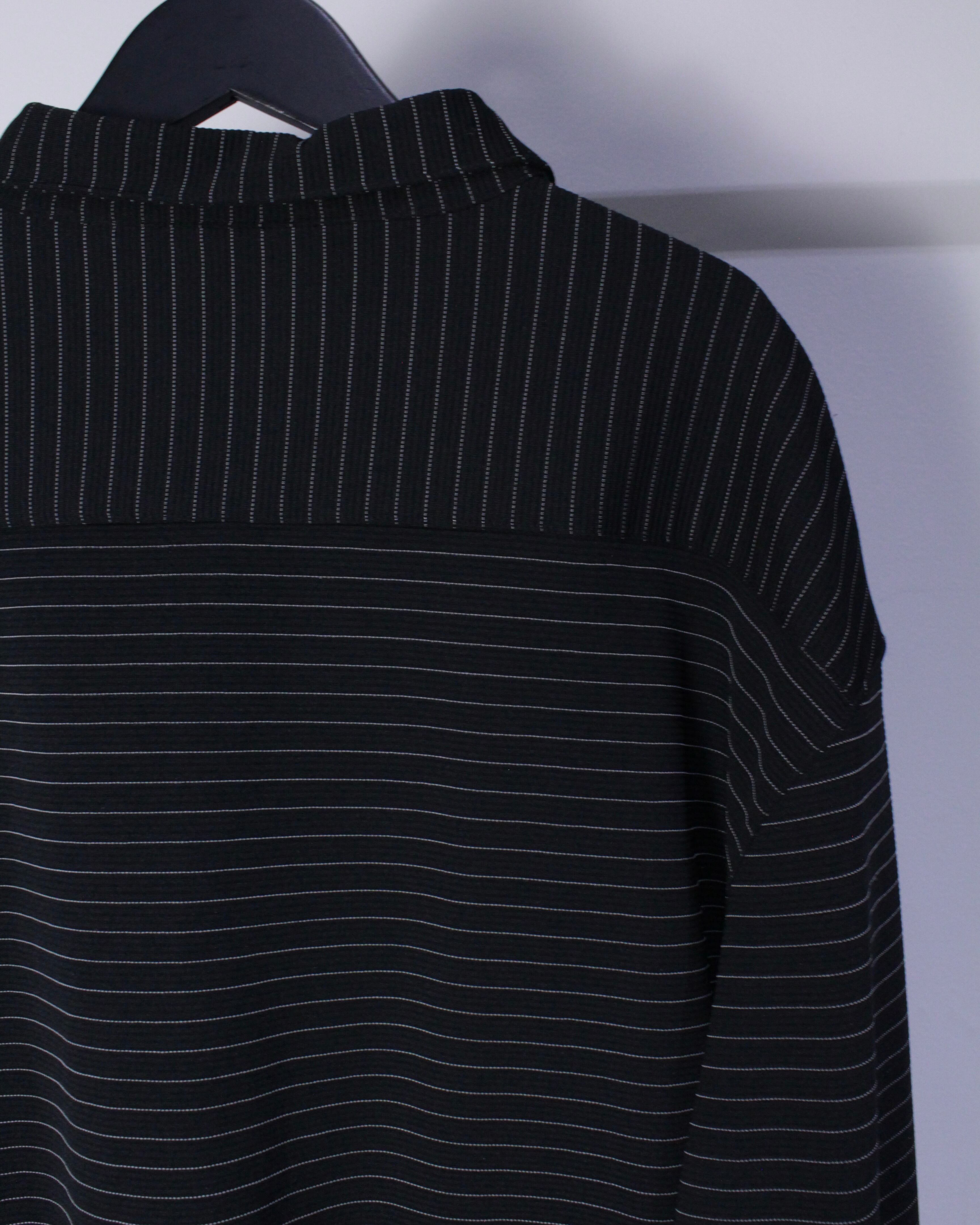 サラリとドライなポリレーヨンの素材を用いたブラックのボディに、ボーダーのデザインを施した長袖シャツ。