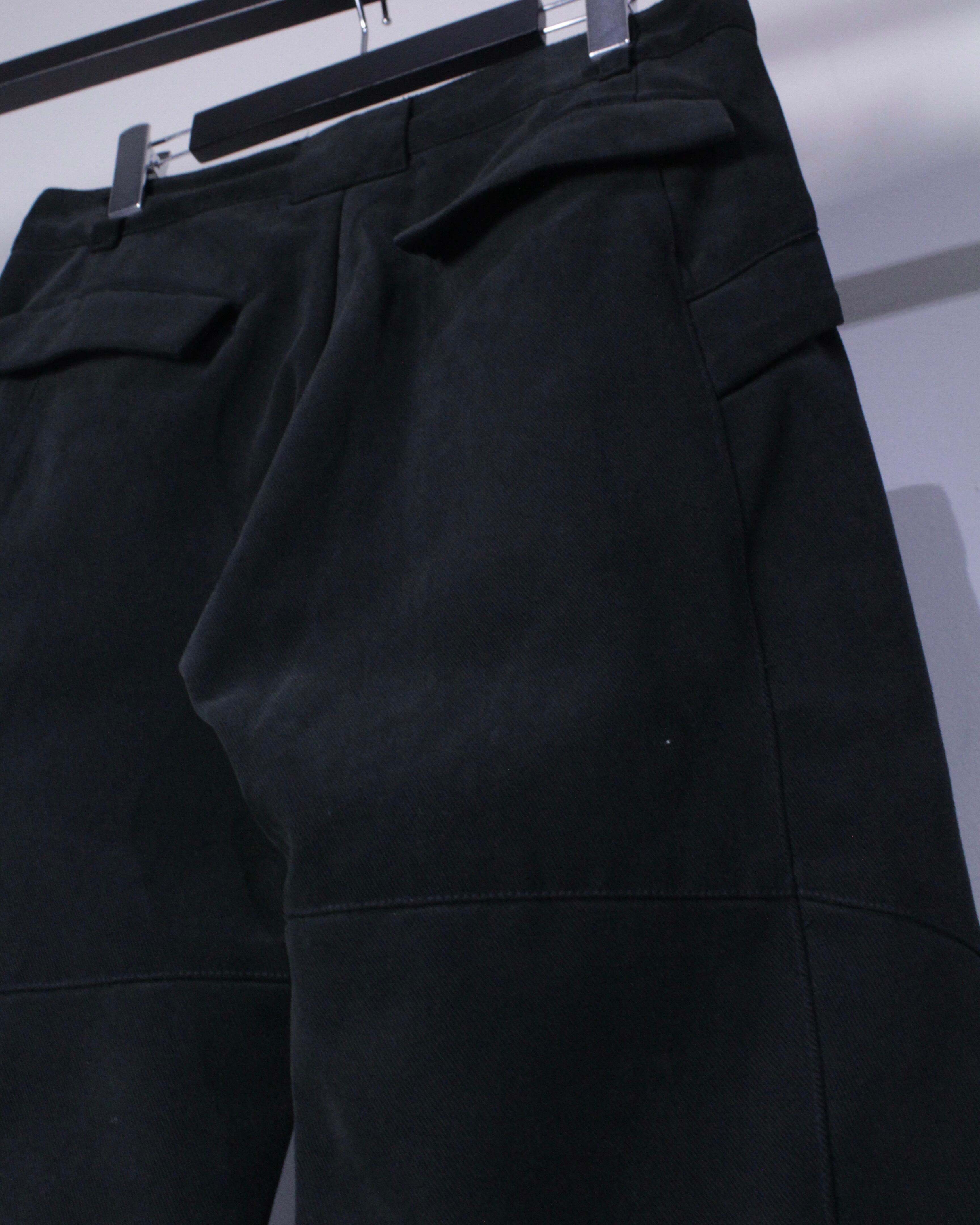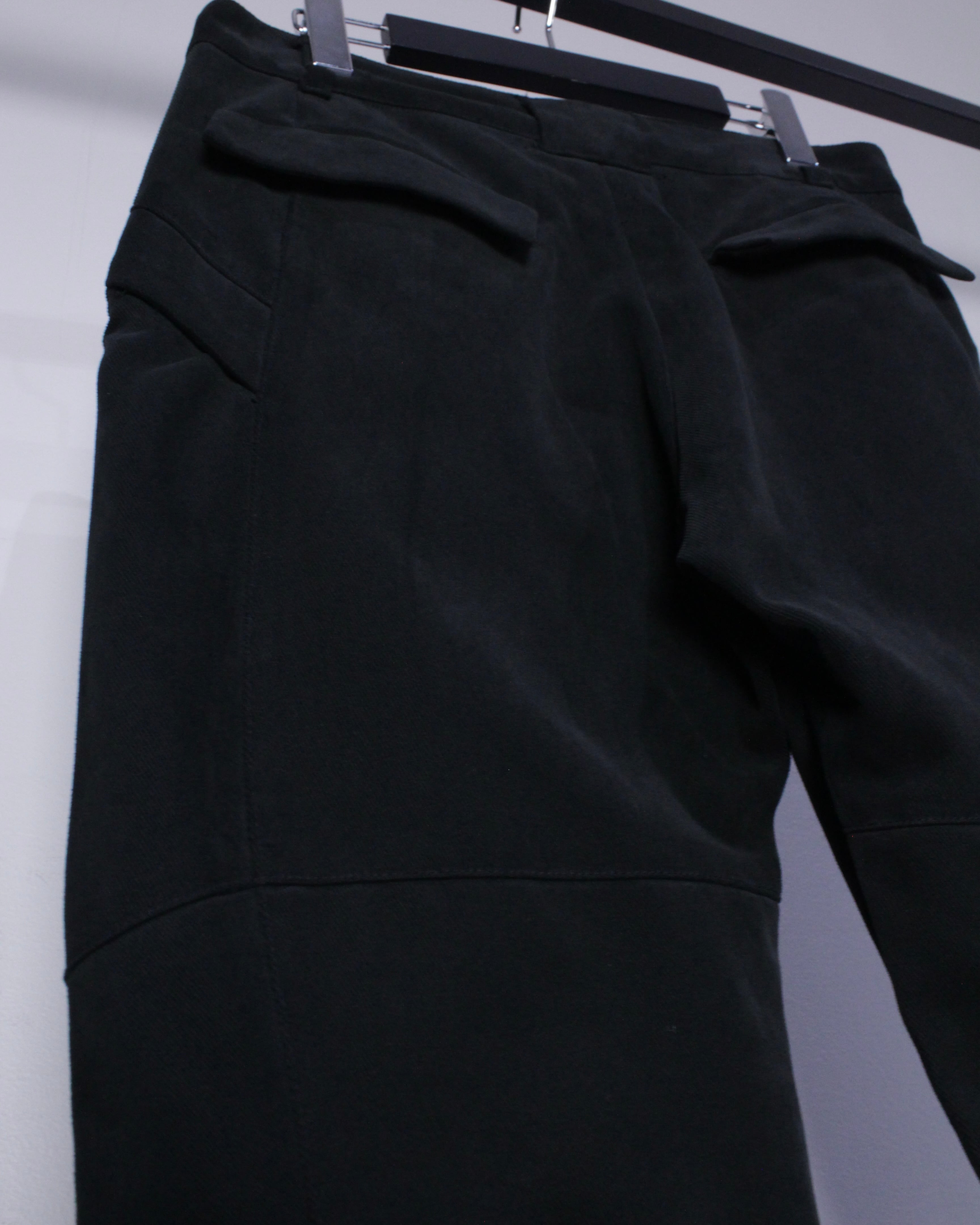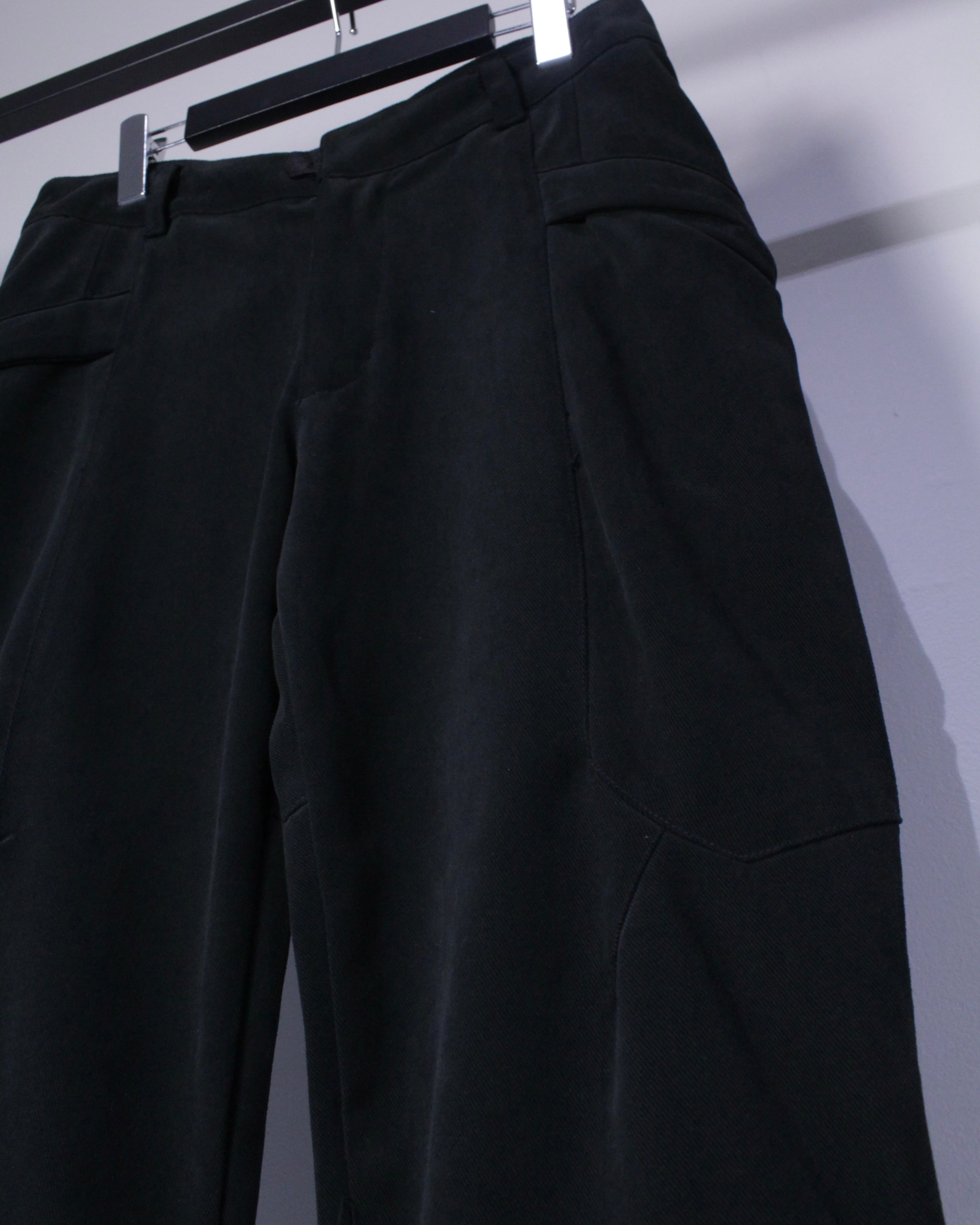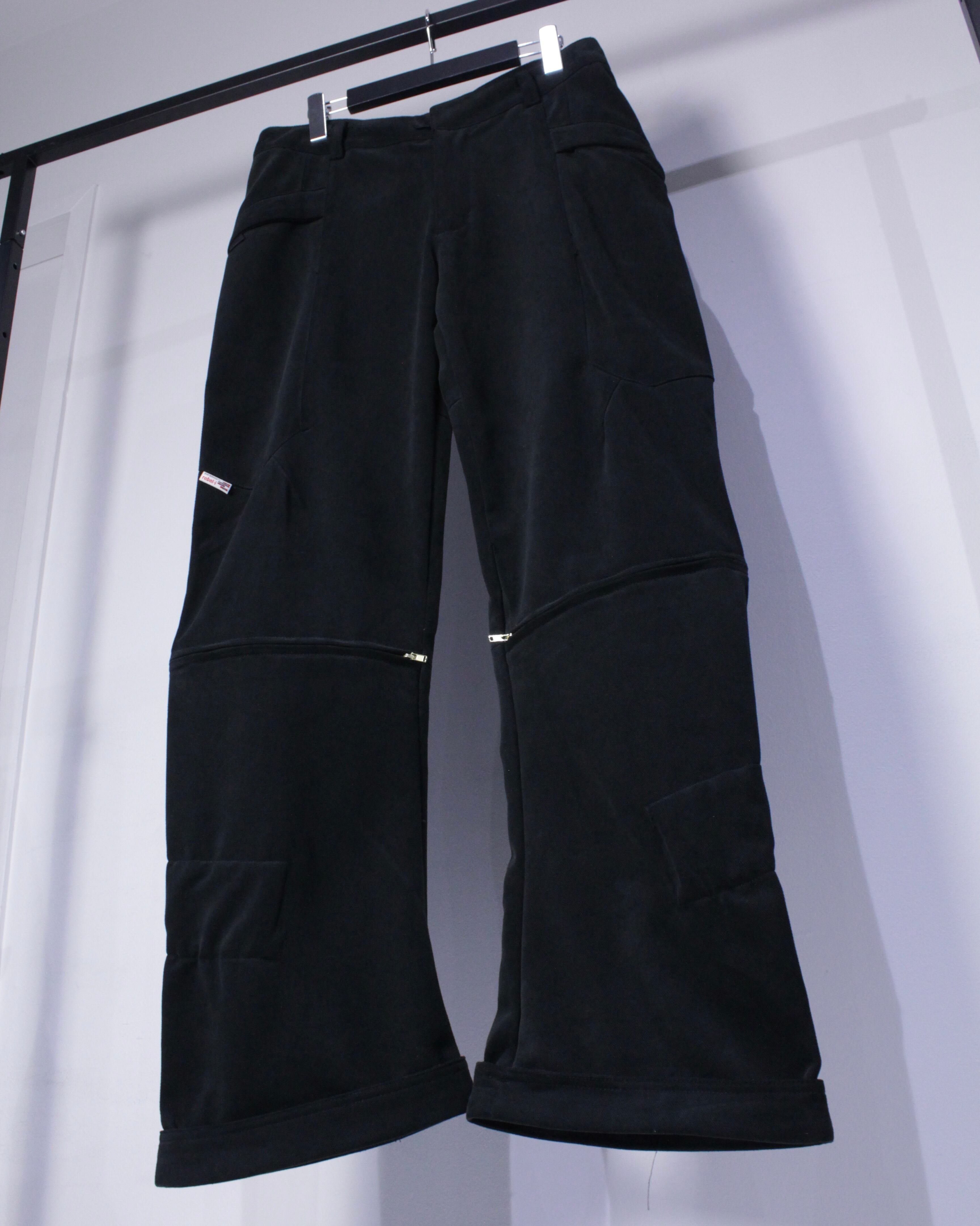 膝部分に施されたジップは開くと内側の生地が出てきてシルエットに立体感もたらしてくれ、オールブラックのボディにメリハリを与えています。