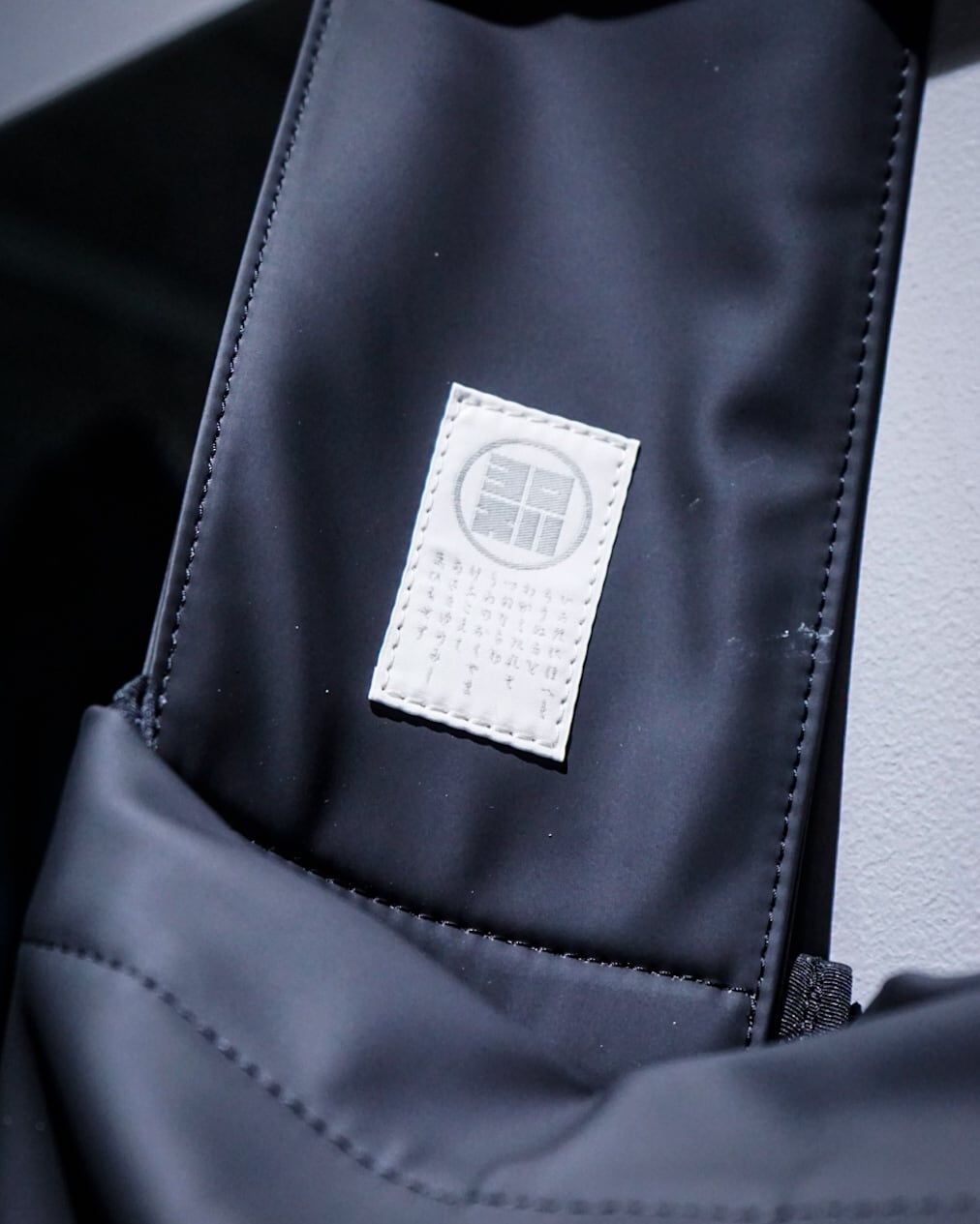 ショルダーテープを本体にまとめず、垂らす仕様です。ショルダー幅は12cm。ヴィジュアルインパクトありつつ、身体の負担を軽減する実用性も兼ね備えています。
