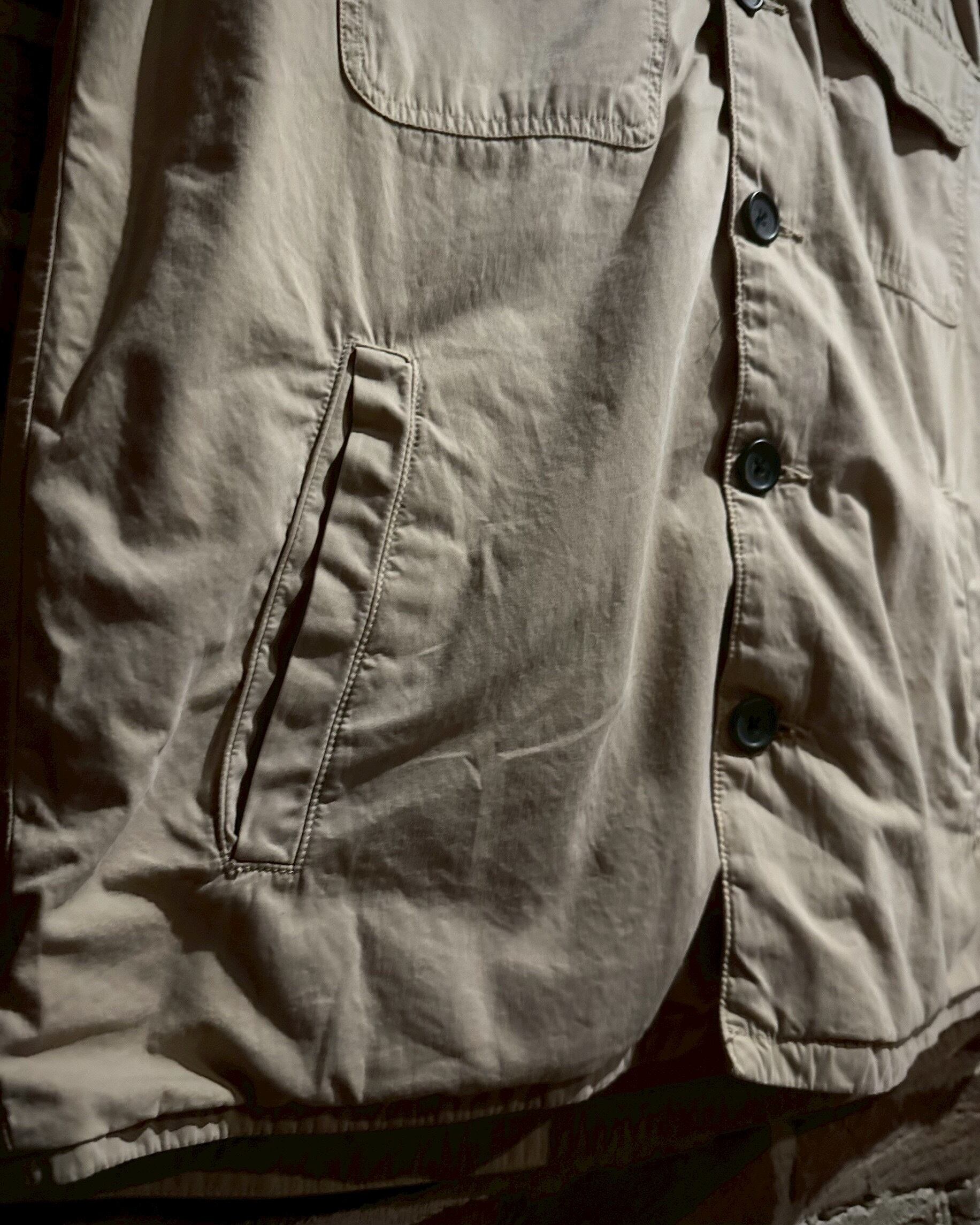 サラリとした質感のコットンを用いたボディに、両胸にはフラップポケット、ボディサイドにはスラッシュポケットを施した1着。