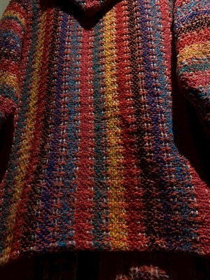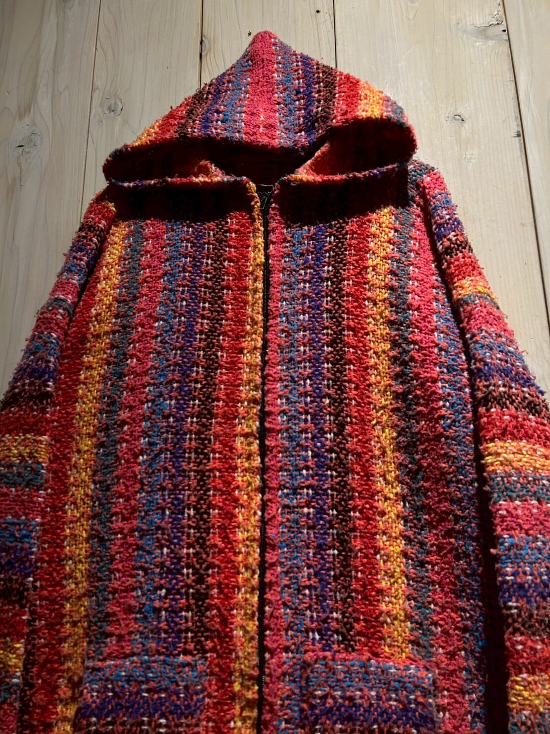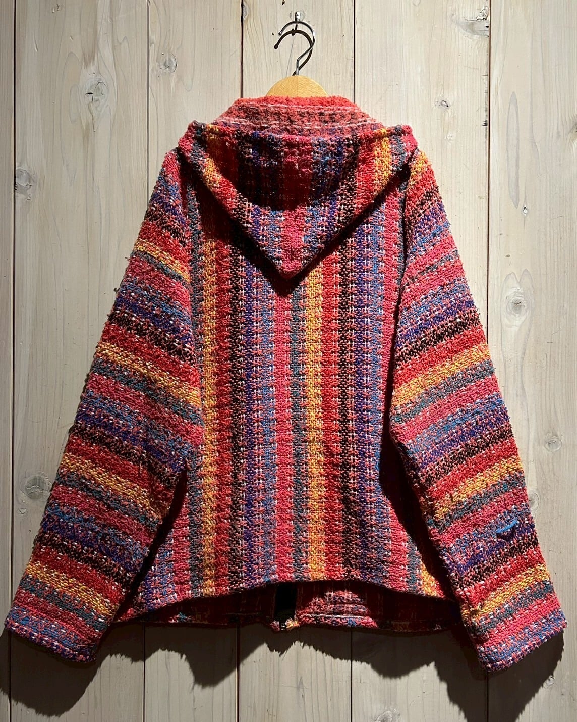 身頃やフード部分はストライプに、アーム、ポケット部分はボーダーで仕上げられ、目を惹く鮮やかなカラーリングの中にしっかりと立体感も表現されています。