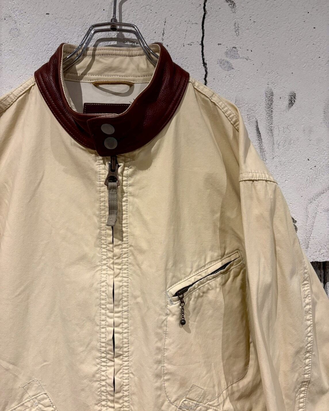 襟部分にはしっとりと柔らかなブラウンレザーを切り替え。エイジング加工と相まって渋い良い雰囲気を漂わせています。
