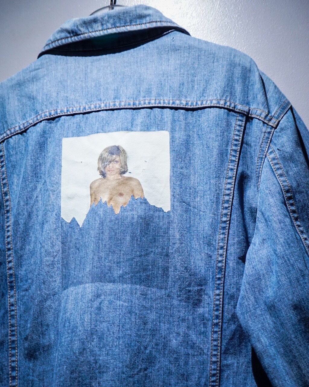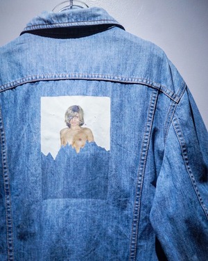 経年変化による色落ちの具合が絶妙なボディに、背面に転写によってセクシーな女性の姿をプリントした70'sヴィンテージのデニムジャケット。