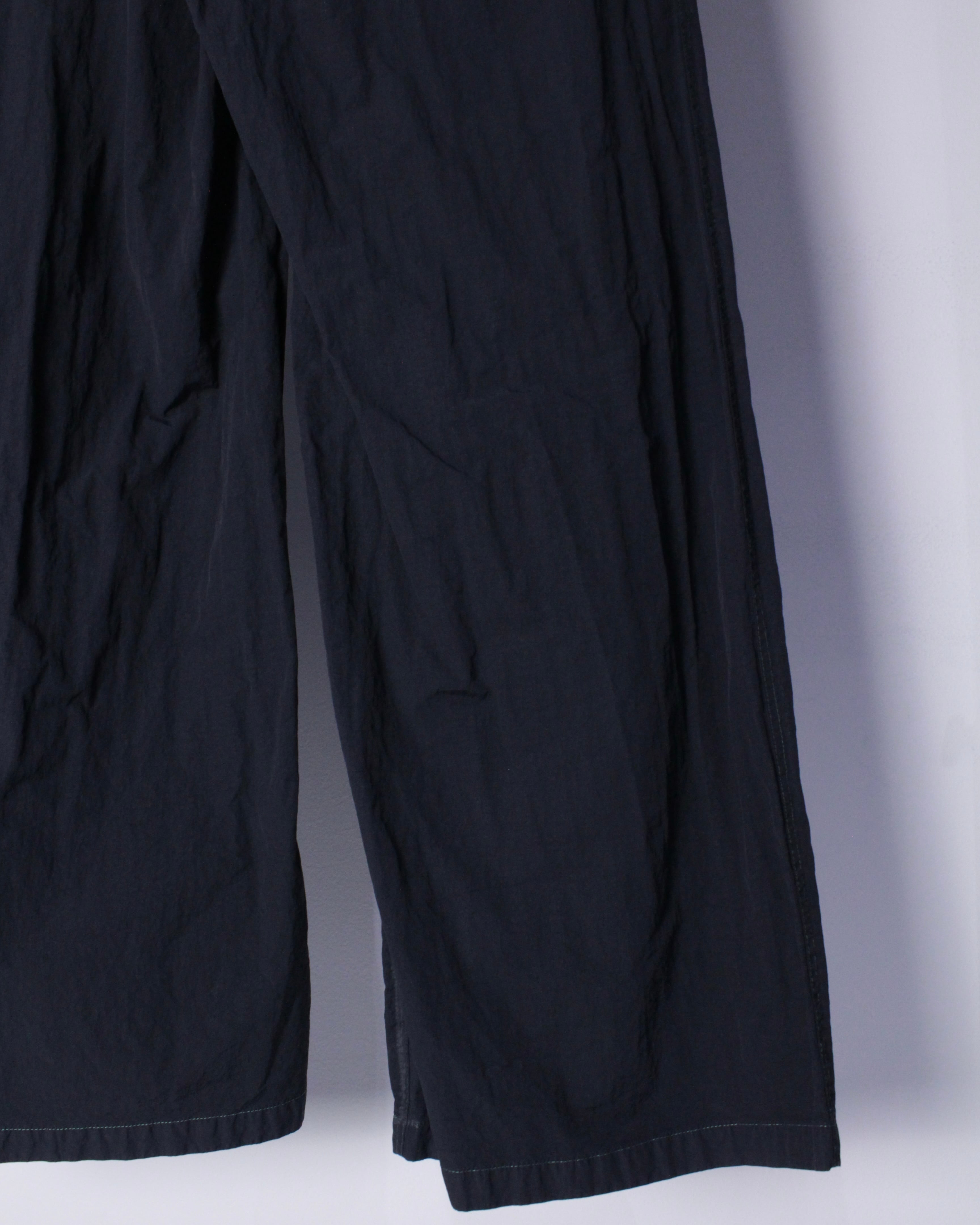 シャリ感のあるナイロンを用いたボディに、ダブルニー風のデザインを載せたパンツ。