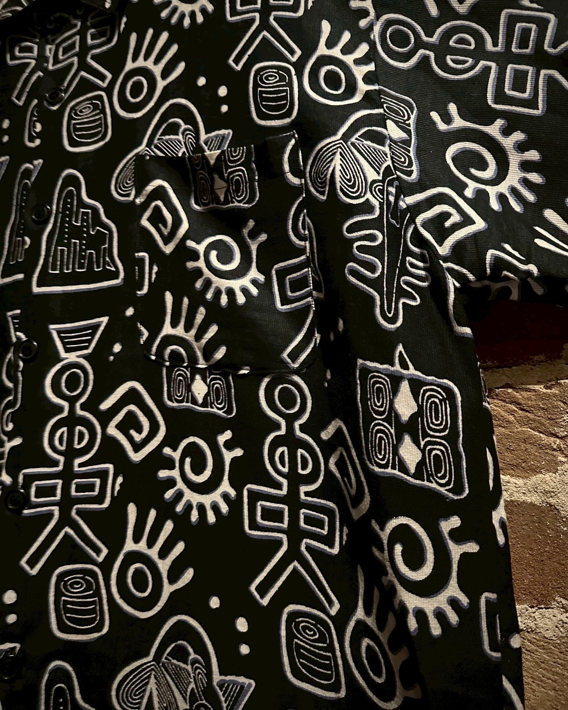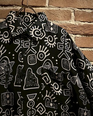 ブラックのボディをベースに、アフリカンな柄を載せた半袖シャツ。