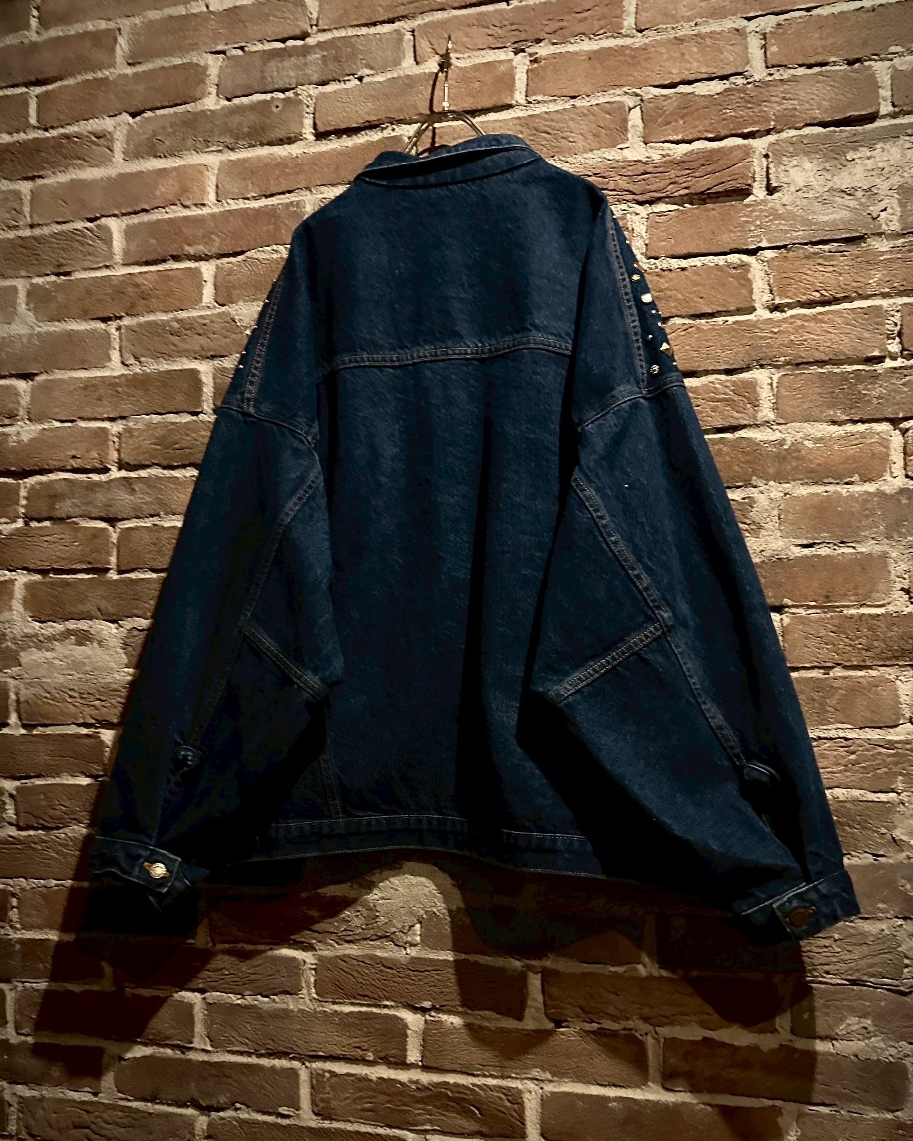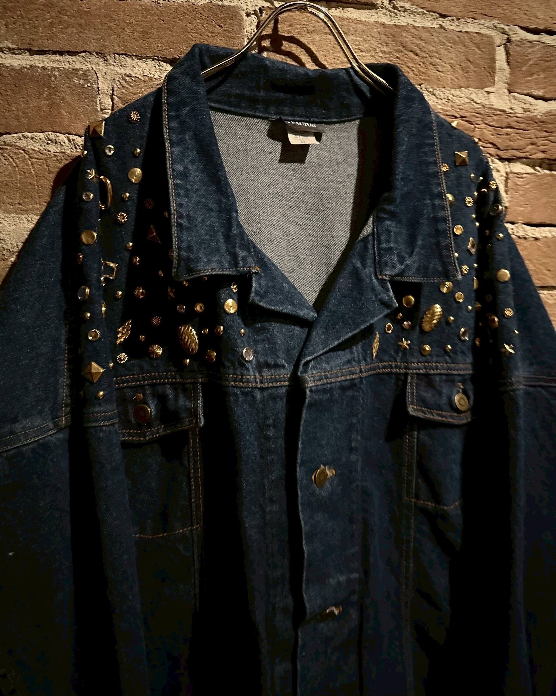 フロントヨークに散りばめられた、様々な造形をした金色のスタッズたち。カジュアルなイメージのデニムジャケットにラグジュアリーな装飾を掛け合わせる事で、古着ならではのMix感のあるデザインに仕上げられています。