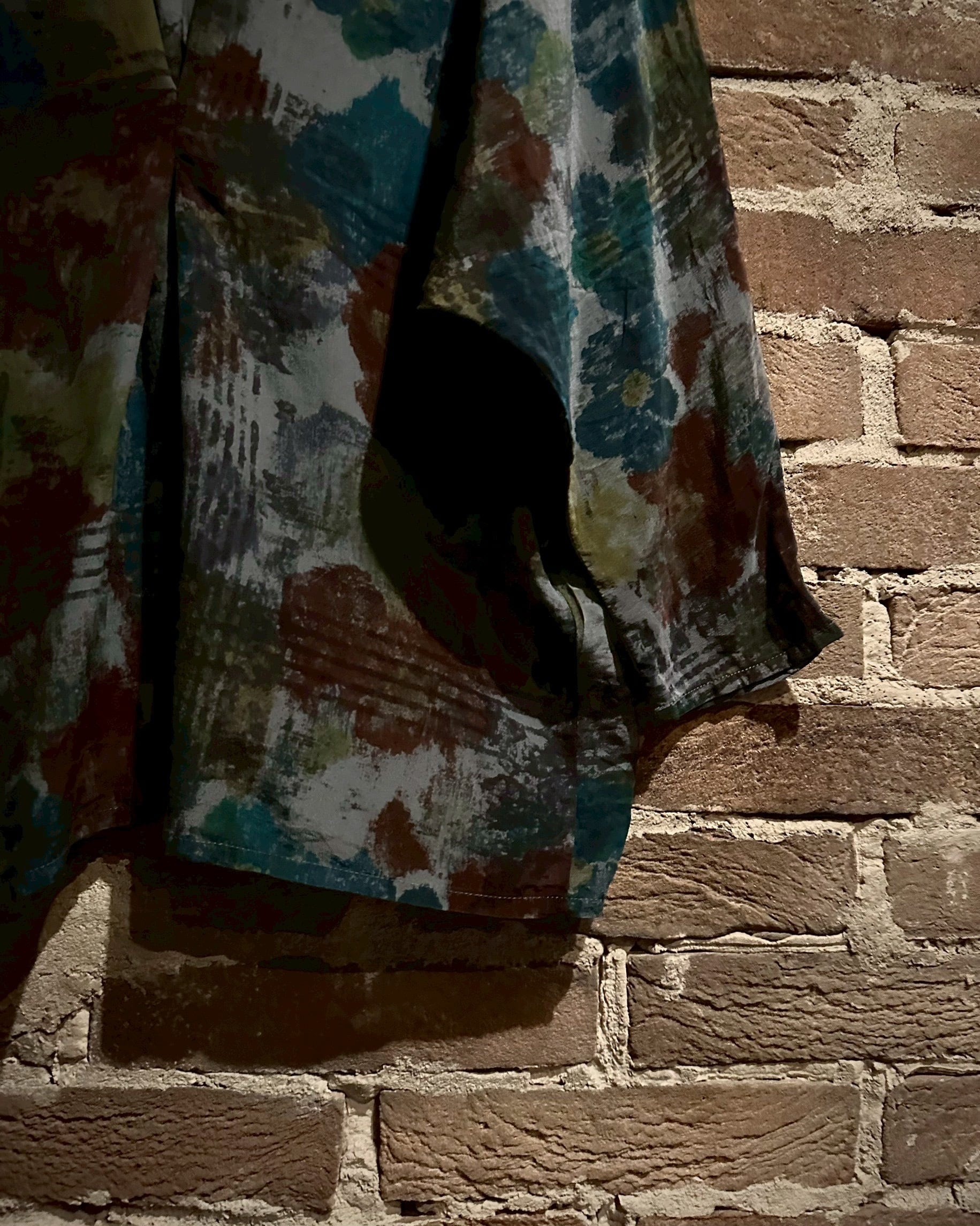 サラッと柔らかく着心地の良いシルク素材を採用したボディに、アーティスティックな柄を載せたシャツをご紹介。
