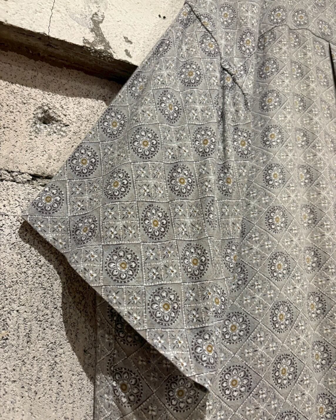 幾何学的な柄×レトロな花柄の掛け合わせによる絶妙なデザインバランスが◎一見シンプルなデザインながらも非常に粋なデザインが落とし込まれた、当ブランドらしい洒落の効いた1着です。