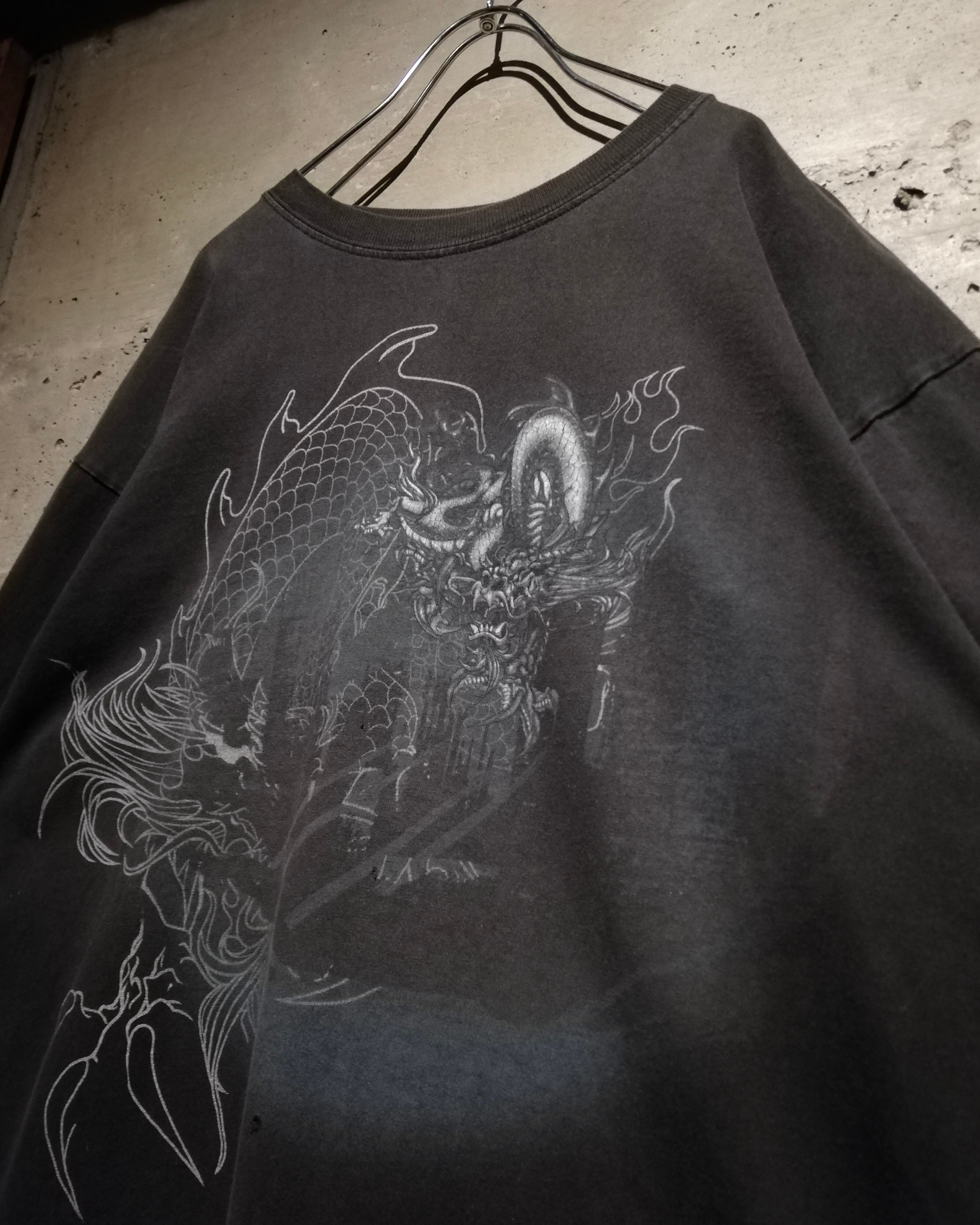 美しいフェードの効いた墨黒ボディに、ストリートの風景を背景に、龍のプリントをフロントに載せた1着。