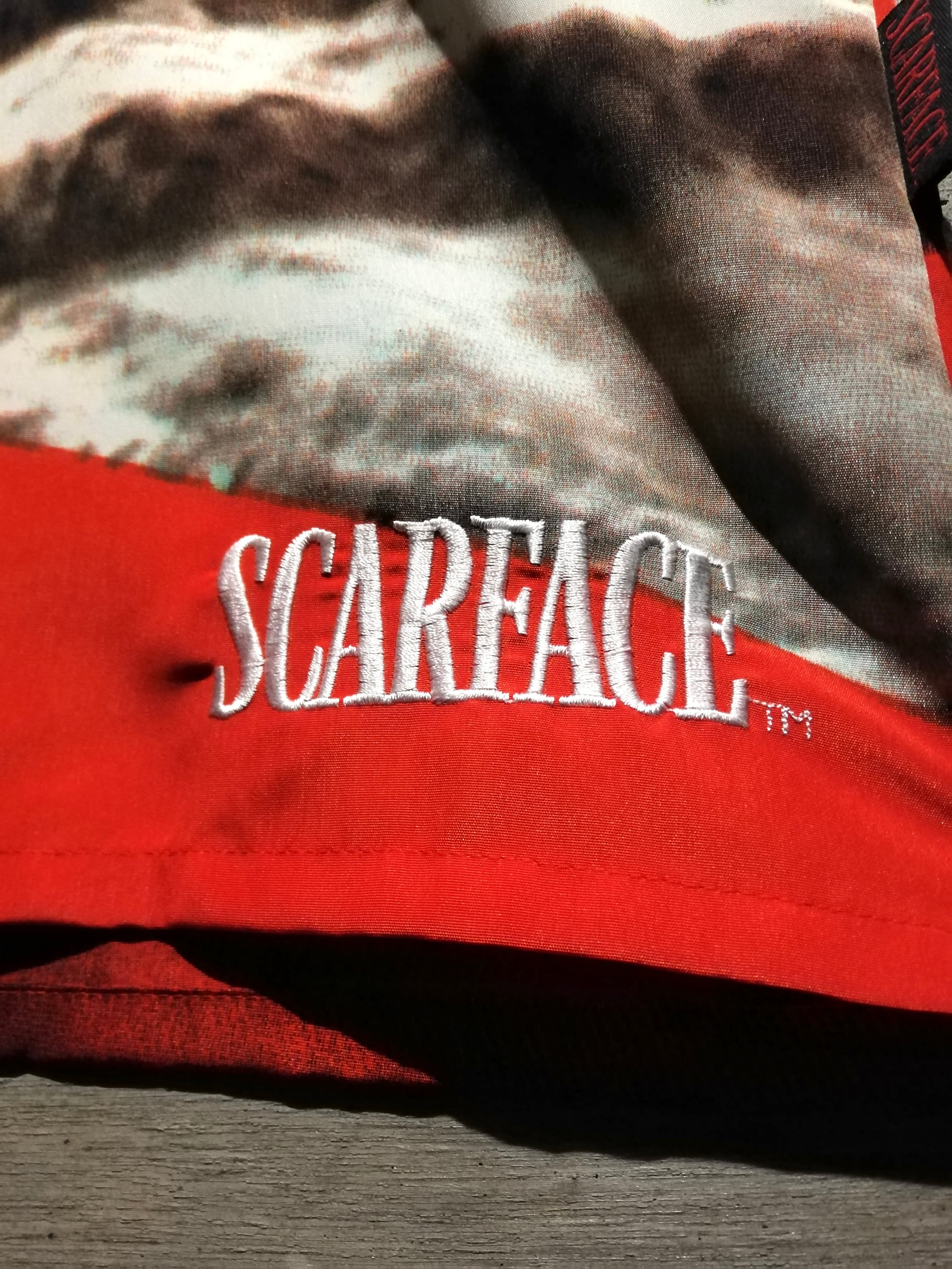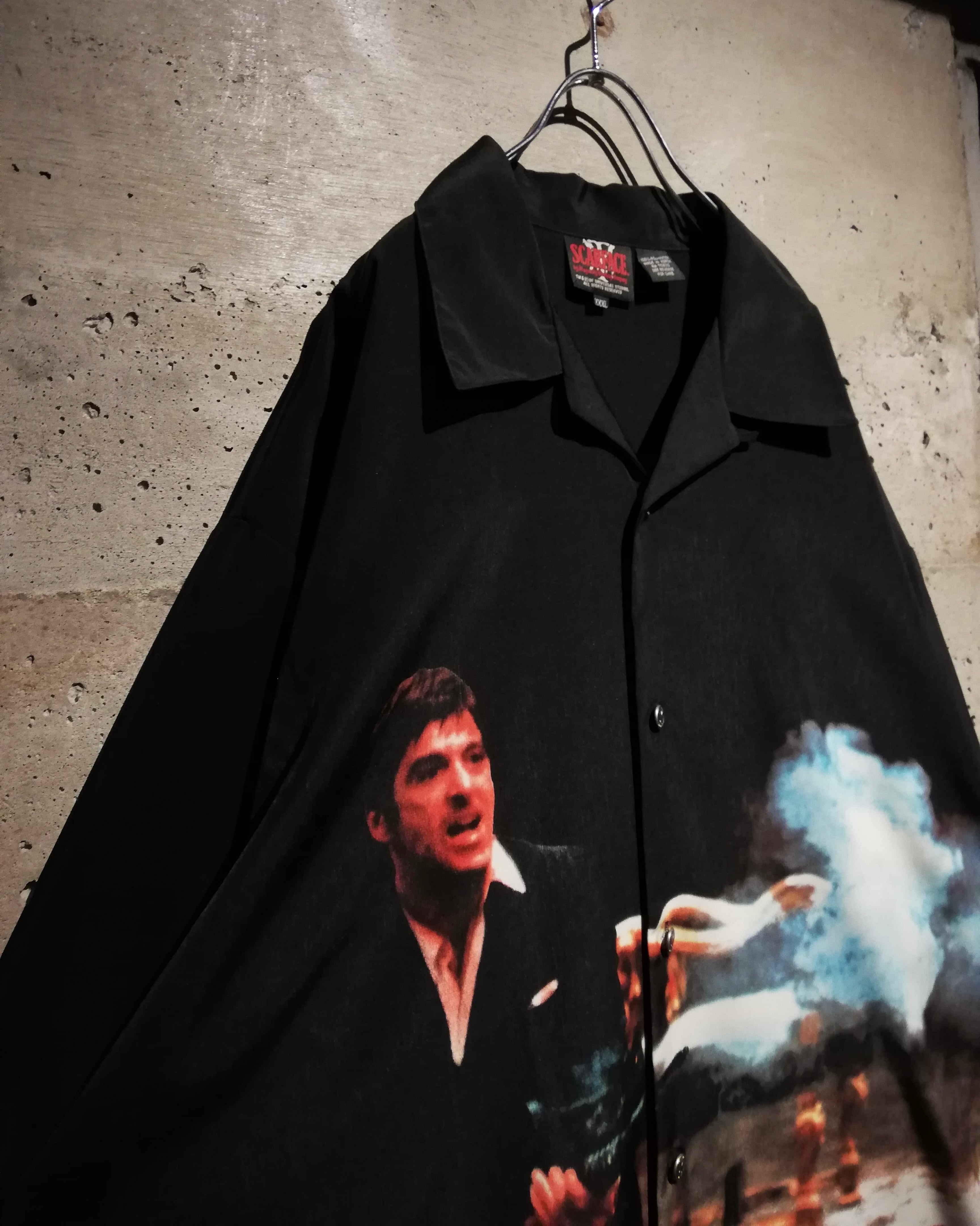 国境を越え世界中で今も尚、影響を与え続けているギャング映画の金字塔"Scarface"の半袖オープンカラーシャツ。