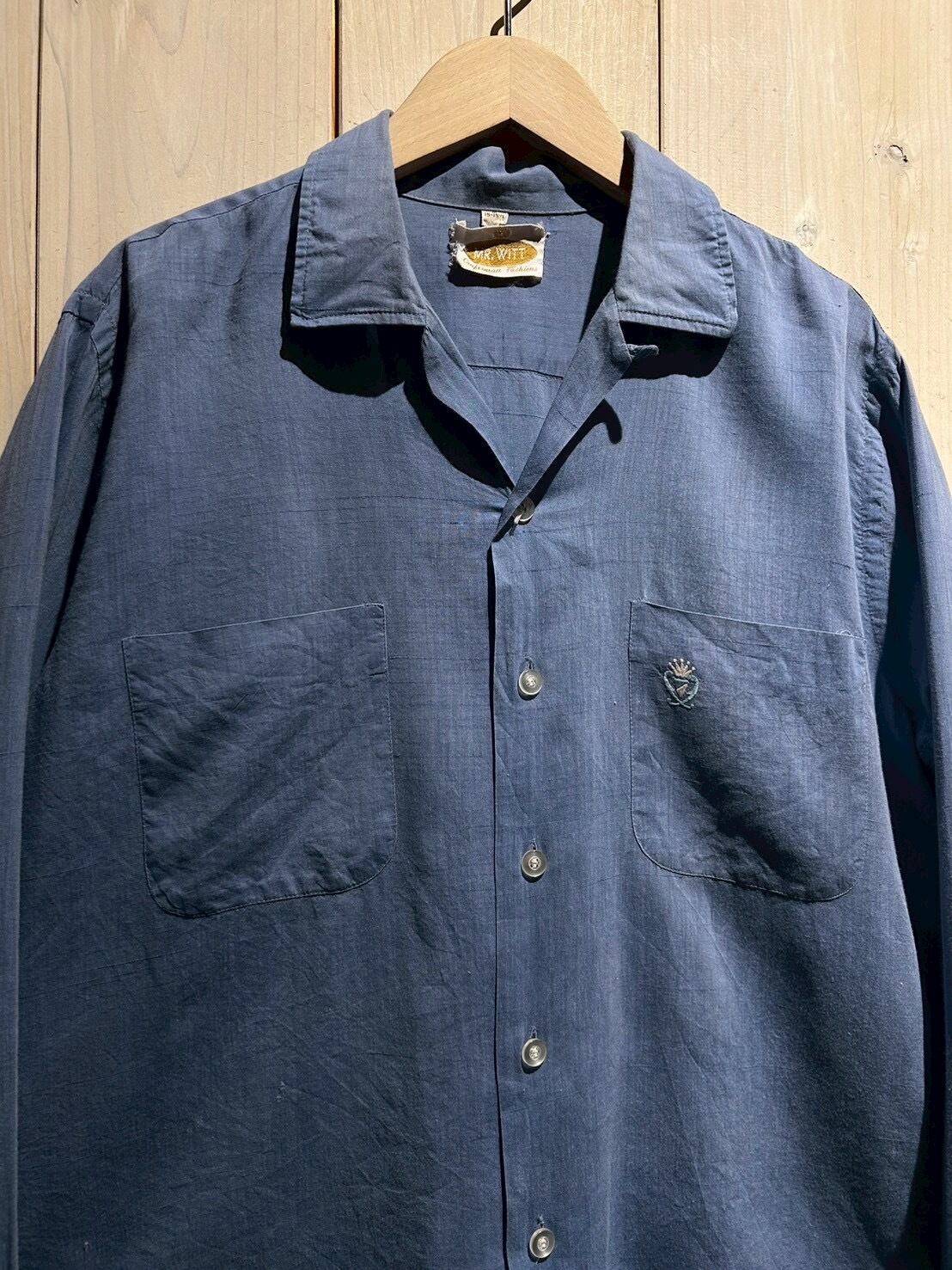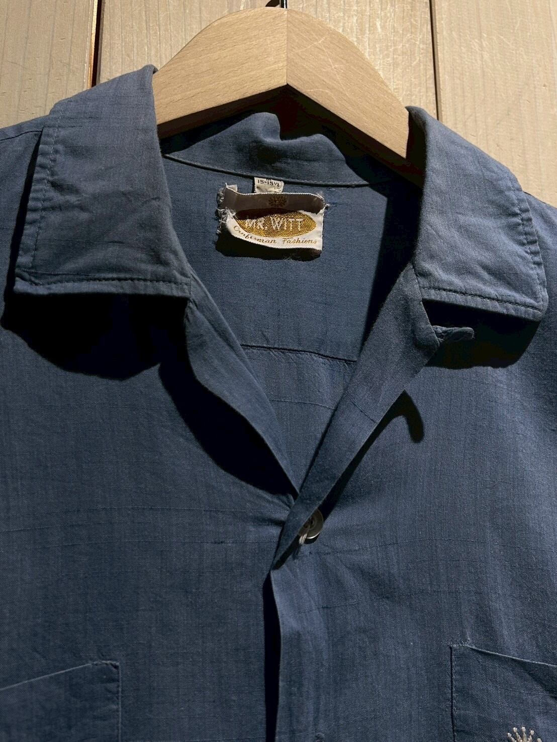 レーヨン、オープンカラーのみならず年代的な古さも併せ持った、ヴィンテージ好きの心を射抜く3拍子が揃ったこちらの個体、稀少なピースです。左胸ポケットのワンポイント刺繍も◎