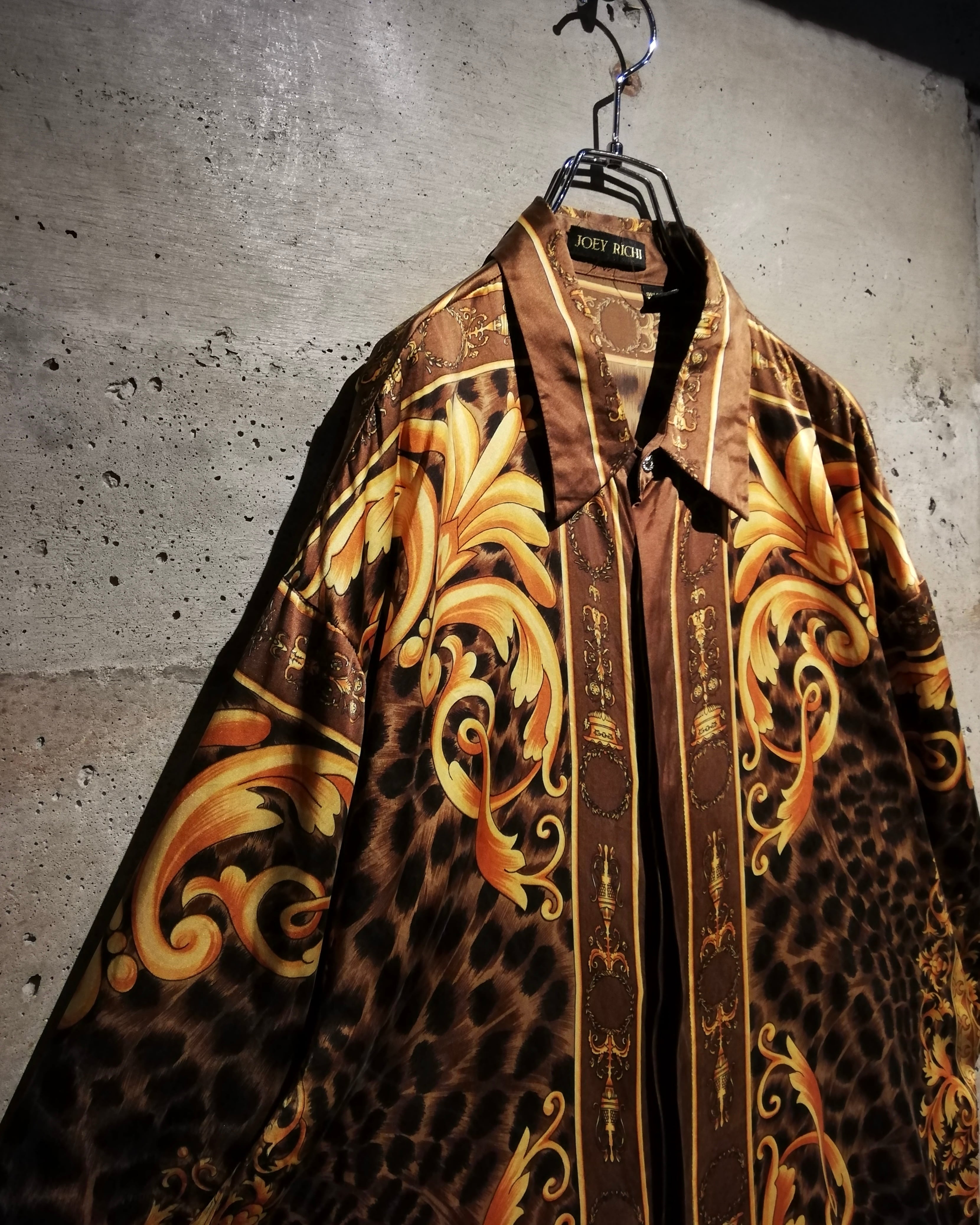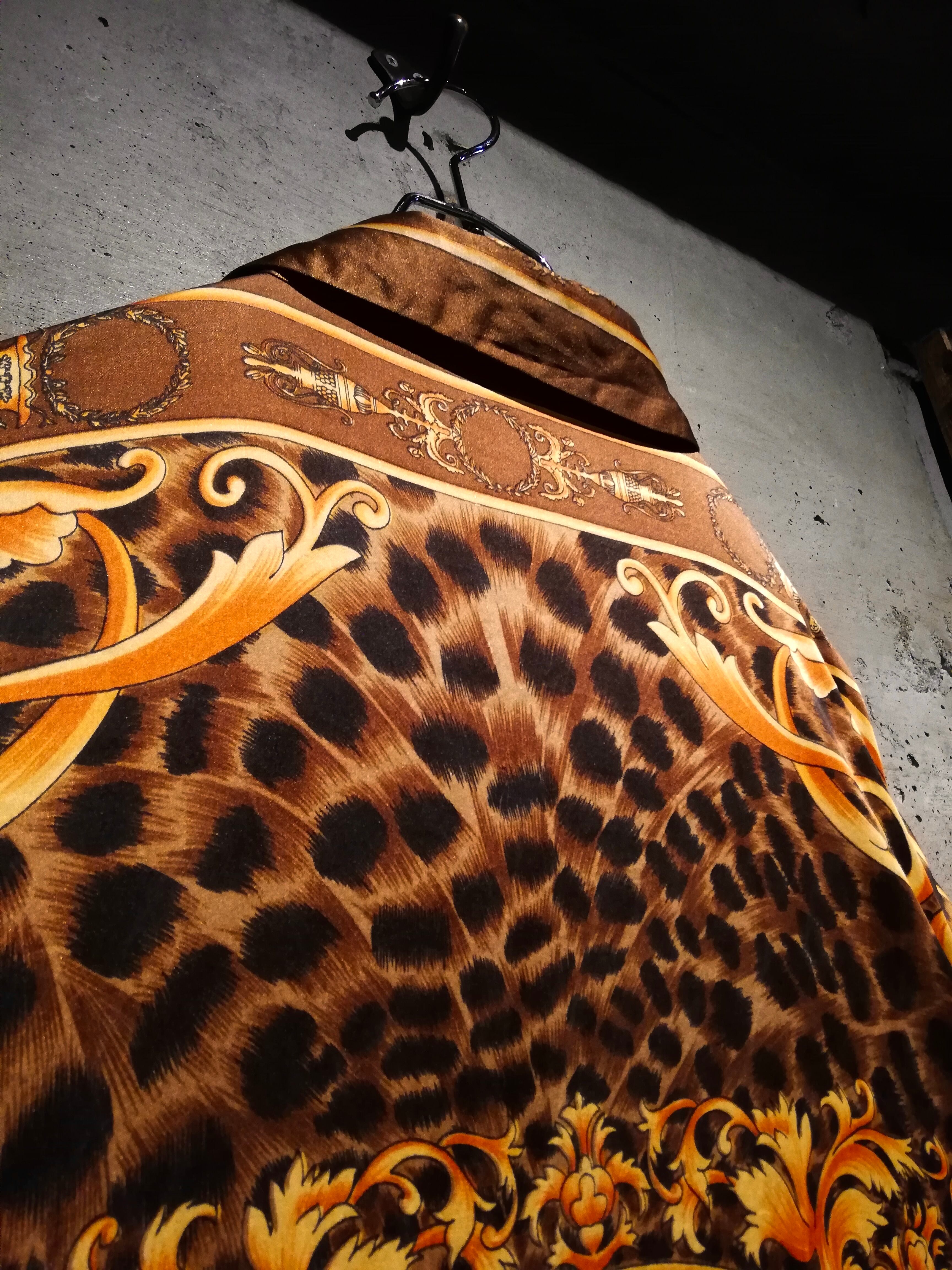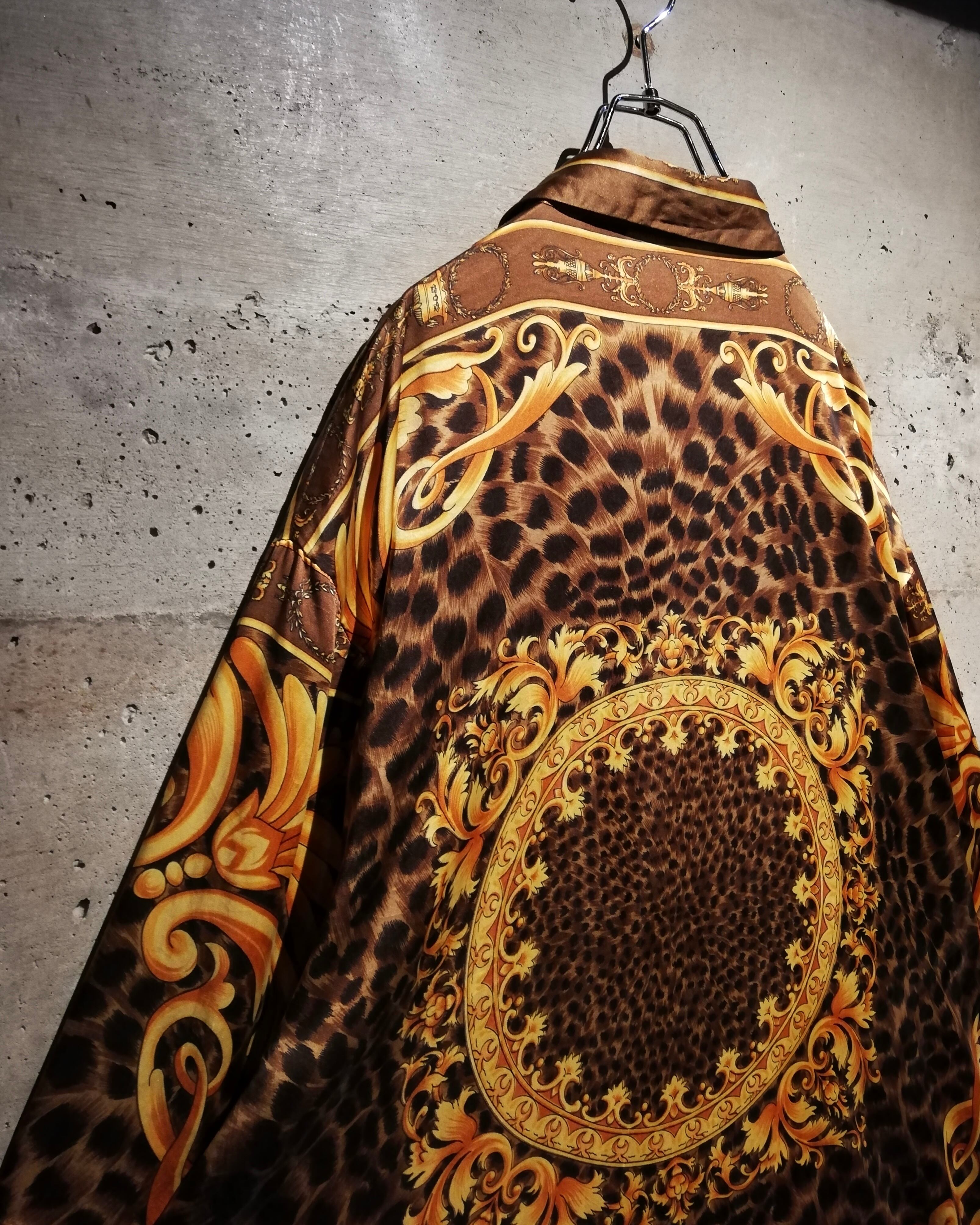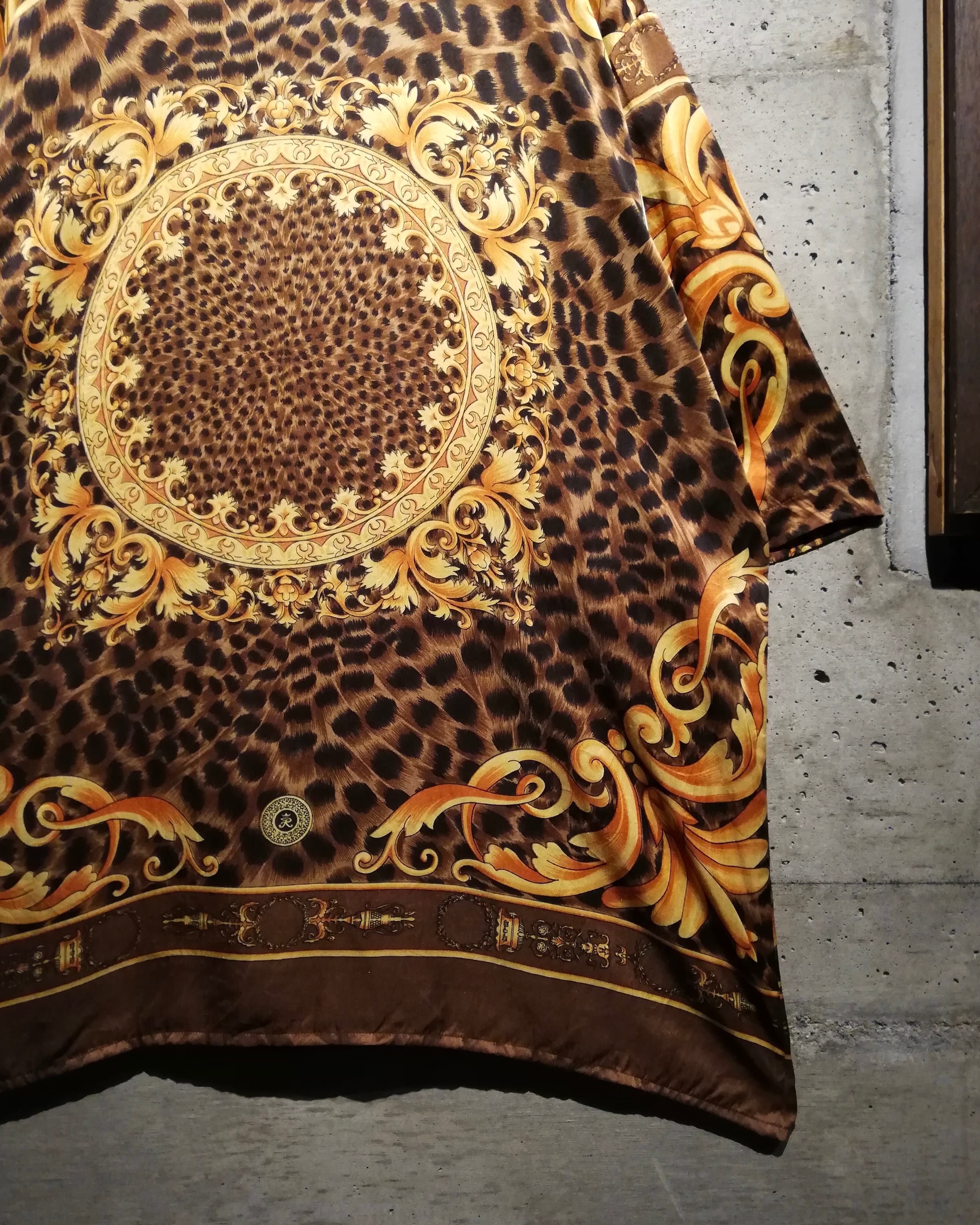 フワッとエアリーな極上シルクを用いたボディに、バロック柄、レオパードを載せたスペシャルな半袖スカーフシャツ。