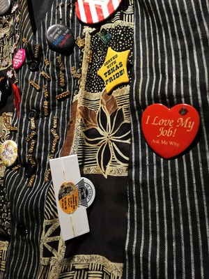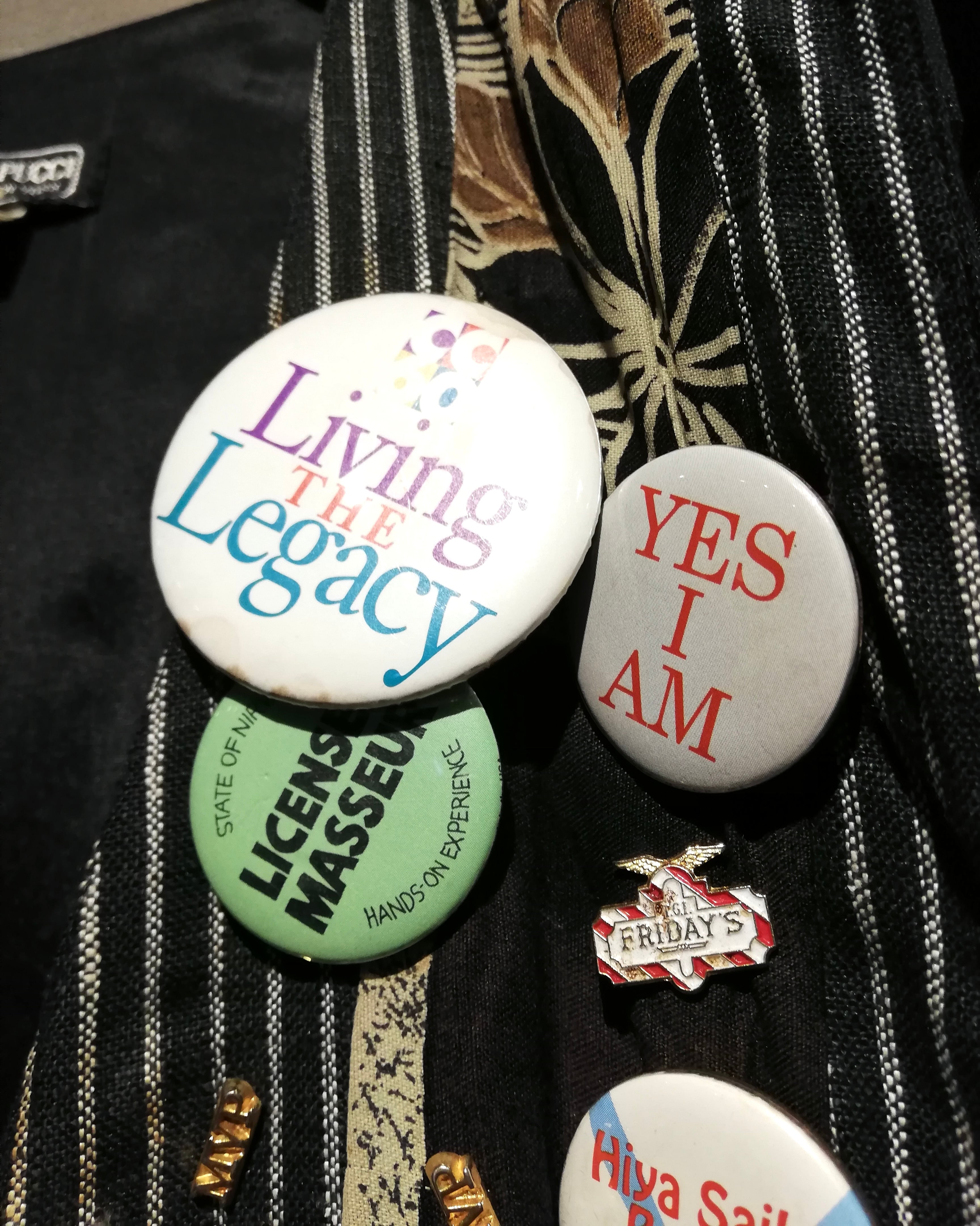 多種多様なピンズとバッジのバランス感が非常に良く、ボディ本体の切り替えと相まって唯一無二感がムンムンに漂う仕上がり。FRIDAYSのピンズとバッジ異様にが多いので、よほど好きだったんじゃないでしょうか。