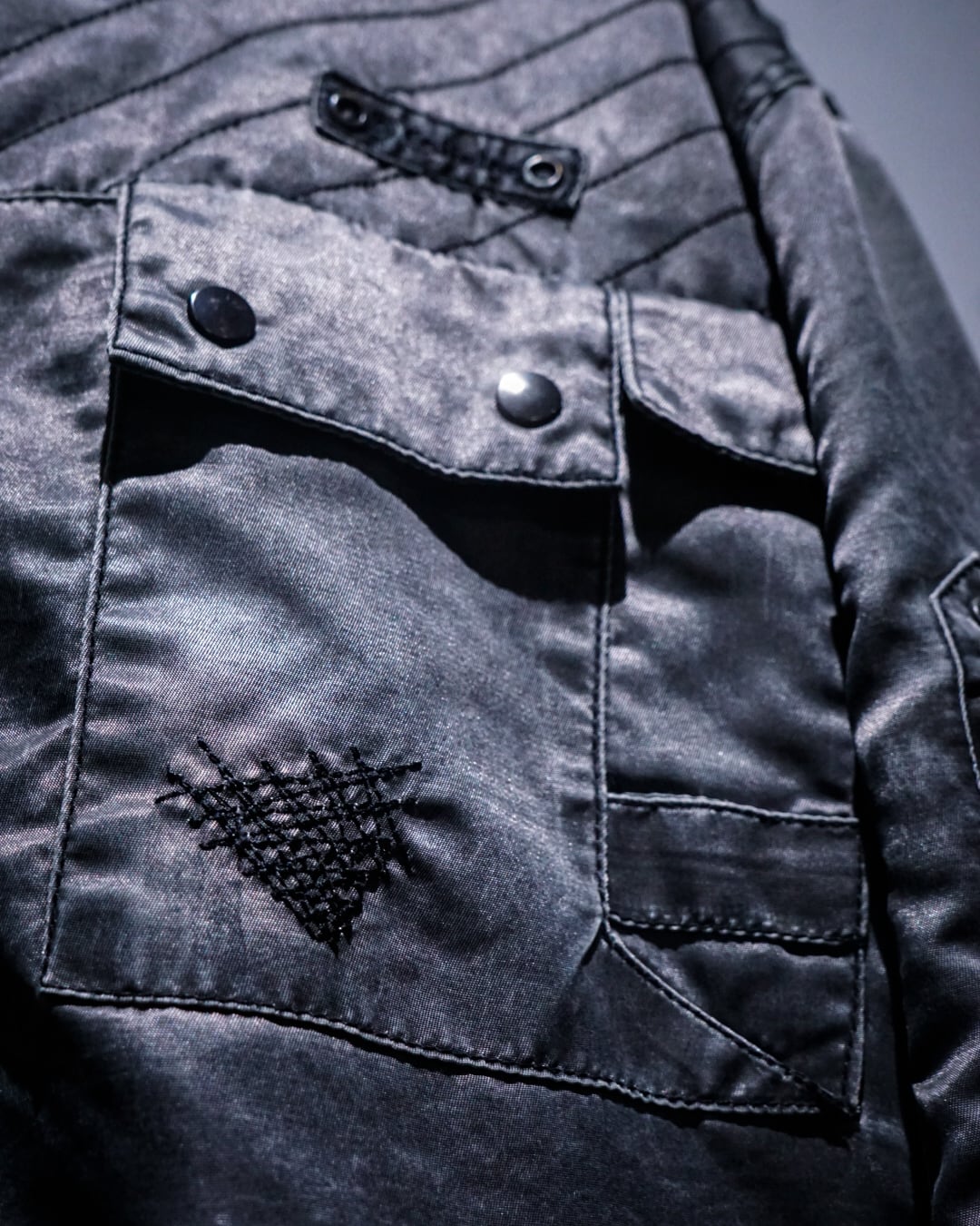 しっかり綿の入ったキルティングジャケットの為、極寒である冬場のレイヴイベントの相棒として大活躍していたに違いありません。