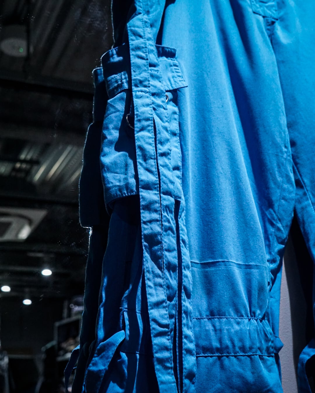 レイヴ、テクノのカルチャーをヒシヒシと感じられ、斜めのレングスの裾にはドローコードを装備。絞ることでシルエットに変化を付けることができます。