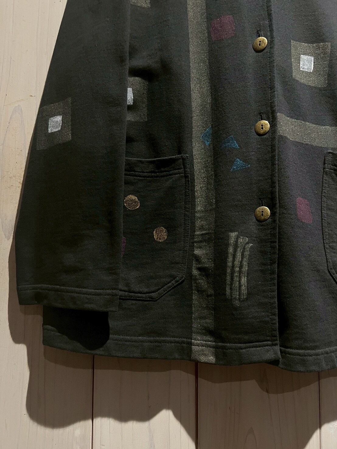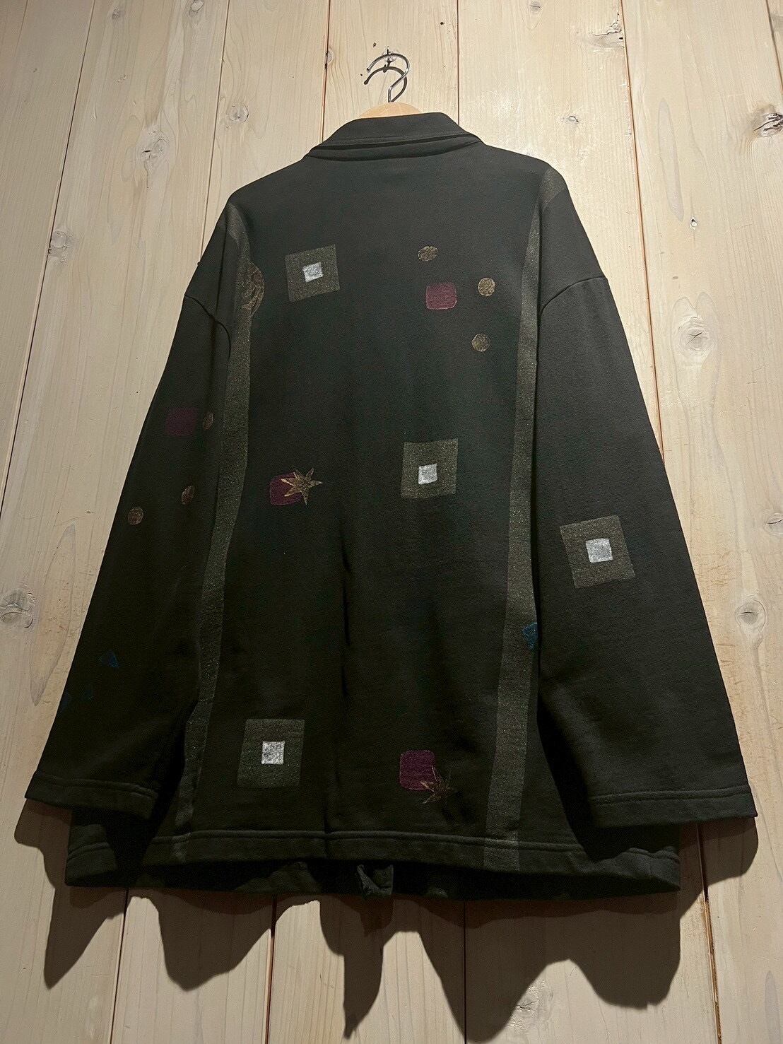 フワッと柔らかく、若干の肉感があるスウェット地のボディに、ハンドペイントでアートな柄模様を描いたジャケット。