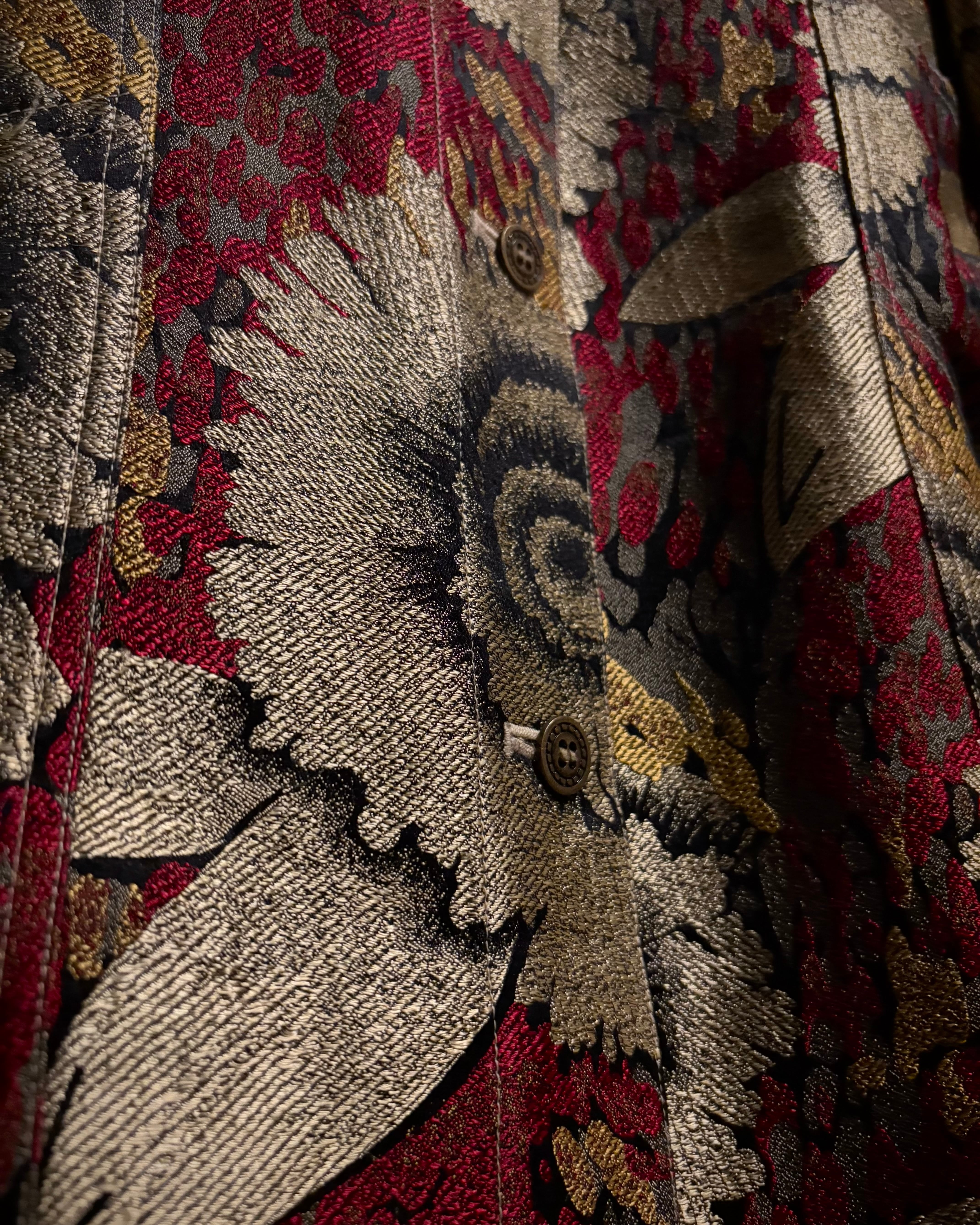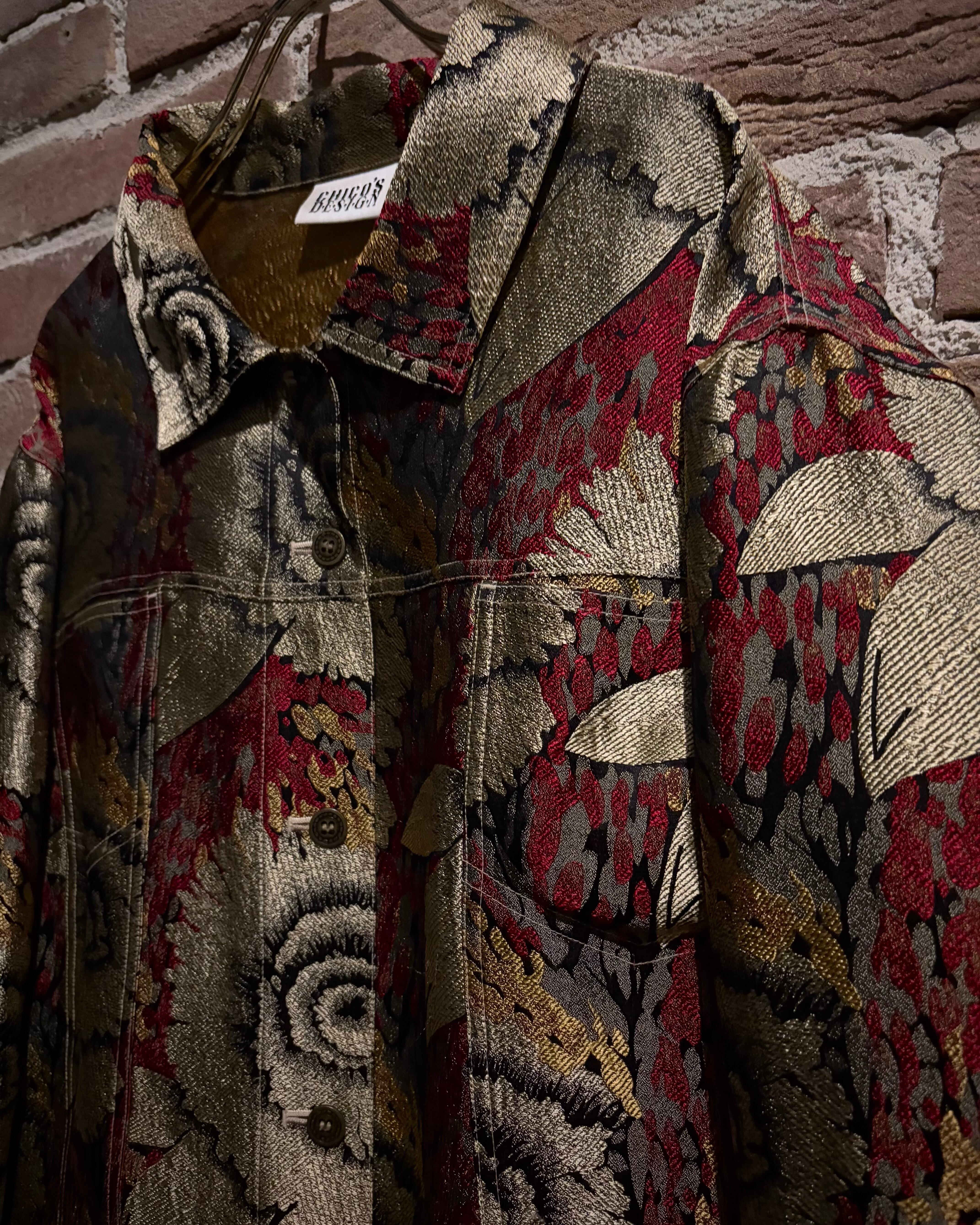 アーティスティックかつラグジュアリーな雰囲気を漂わせる美しい花をジャガード織りで表現したトラッカー型のジャケット。