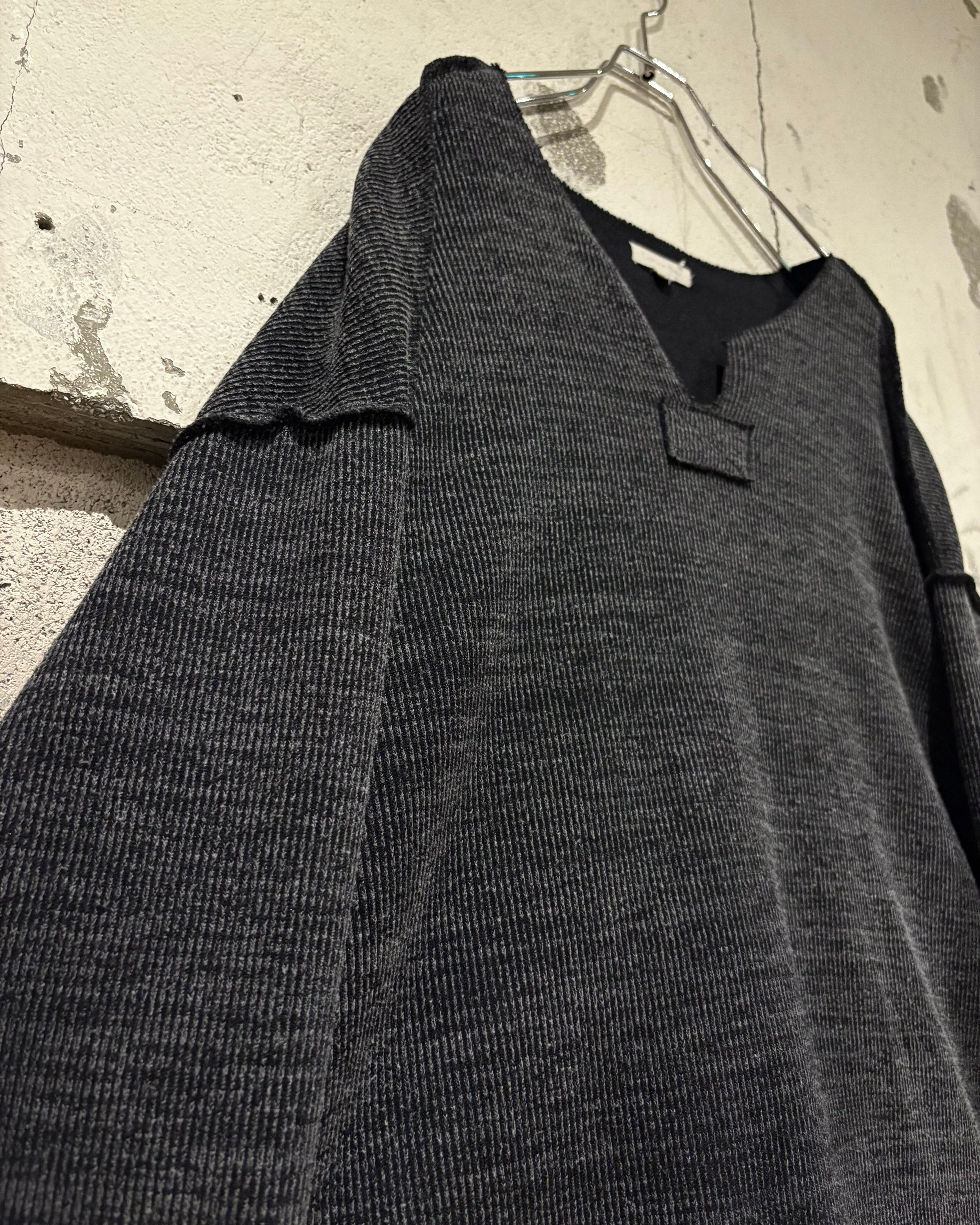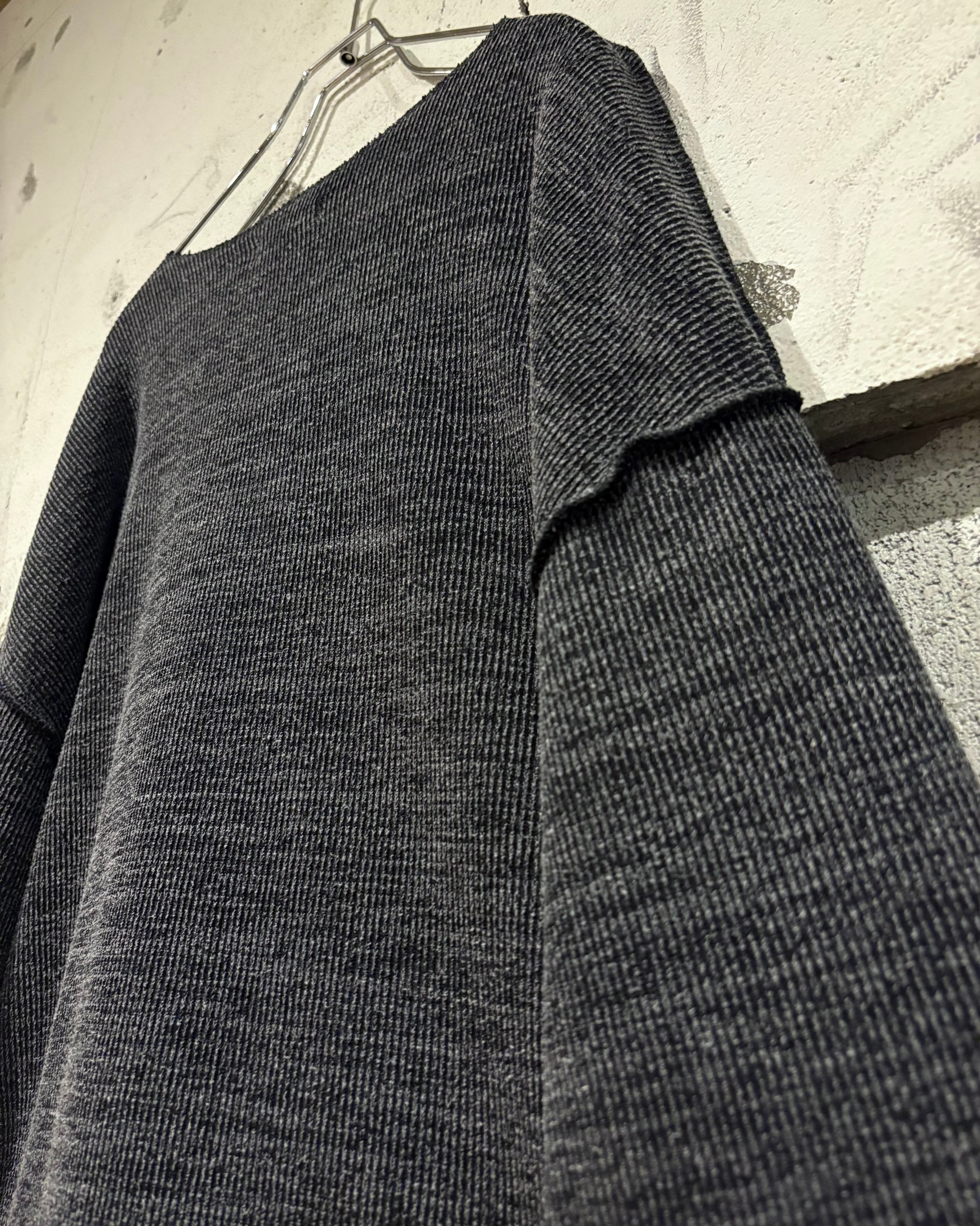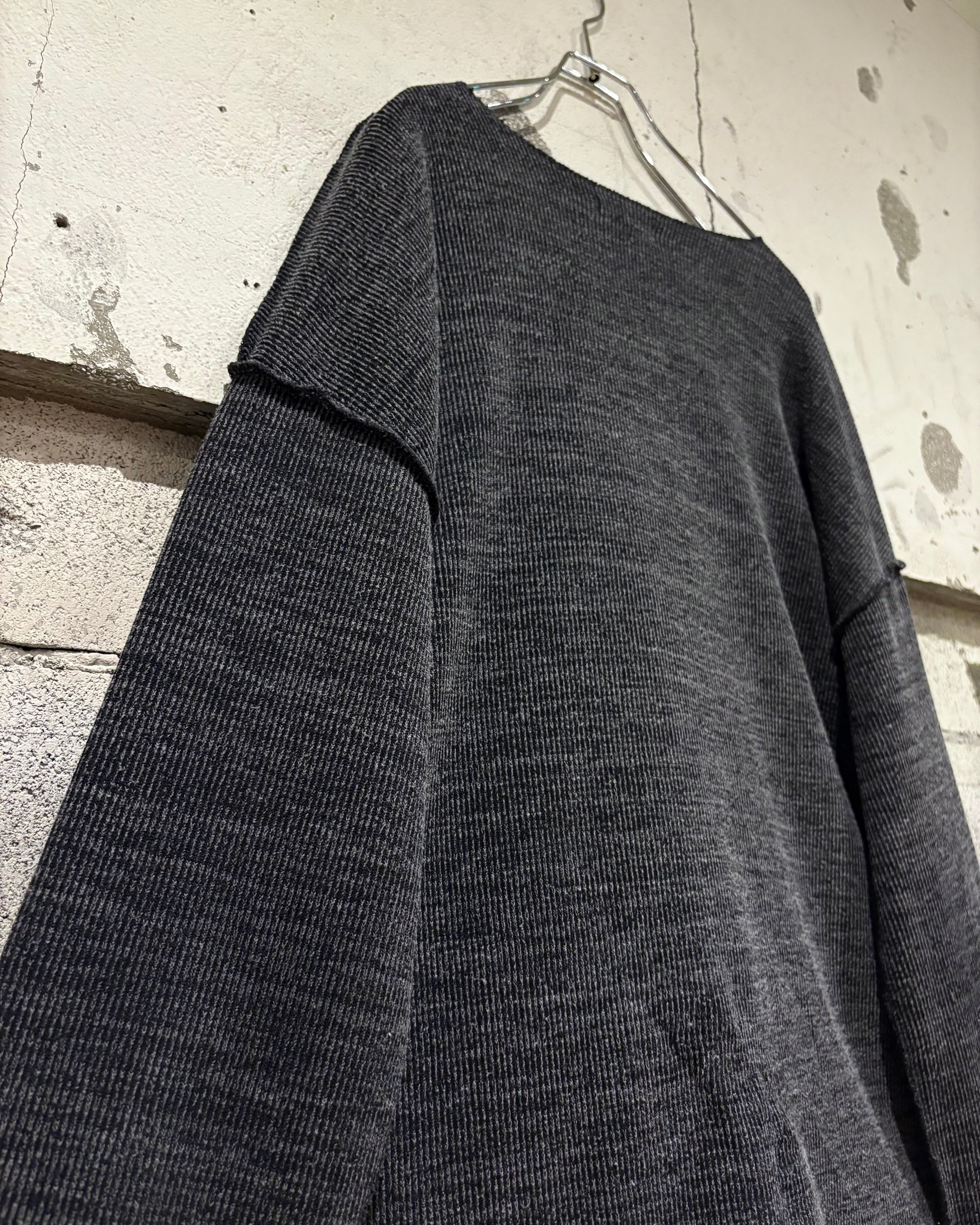グレーをベースに、白を織り込んだメランジ生地のニット。