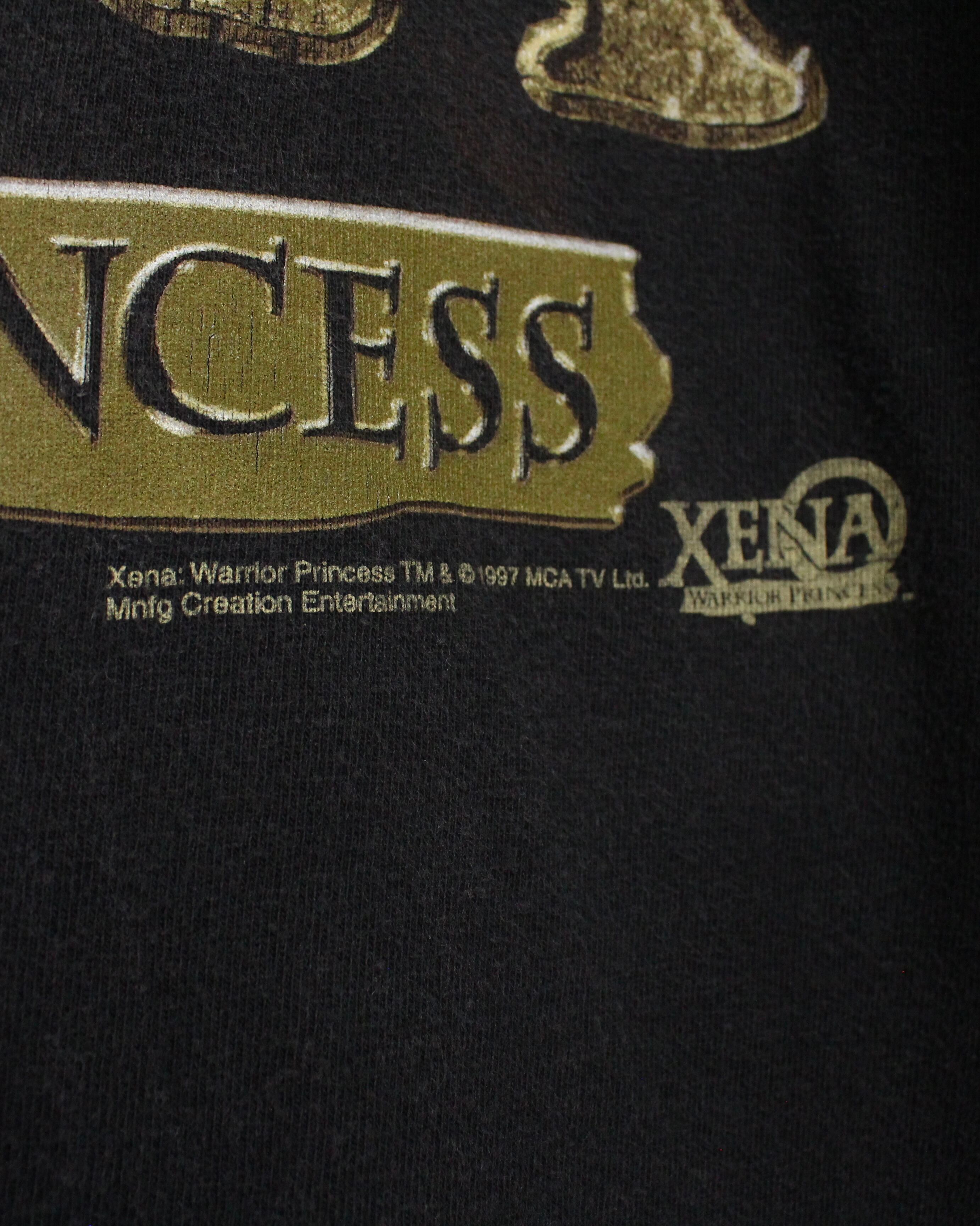 1995年から2001年に放送された古代ギリシャを舞台とした歴史ファンタジードラマ"XENA"のTシャツ。